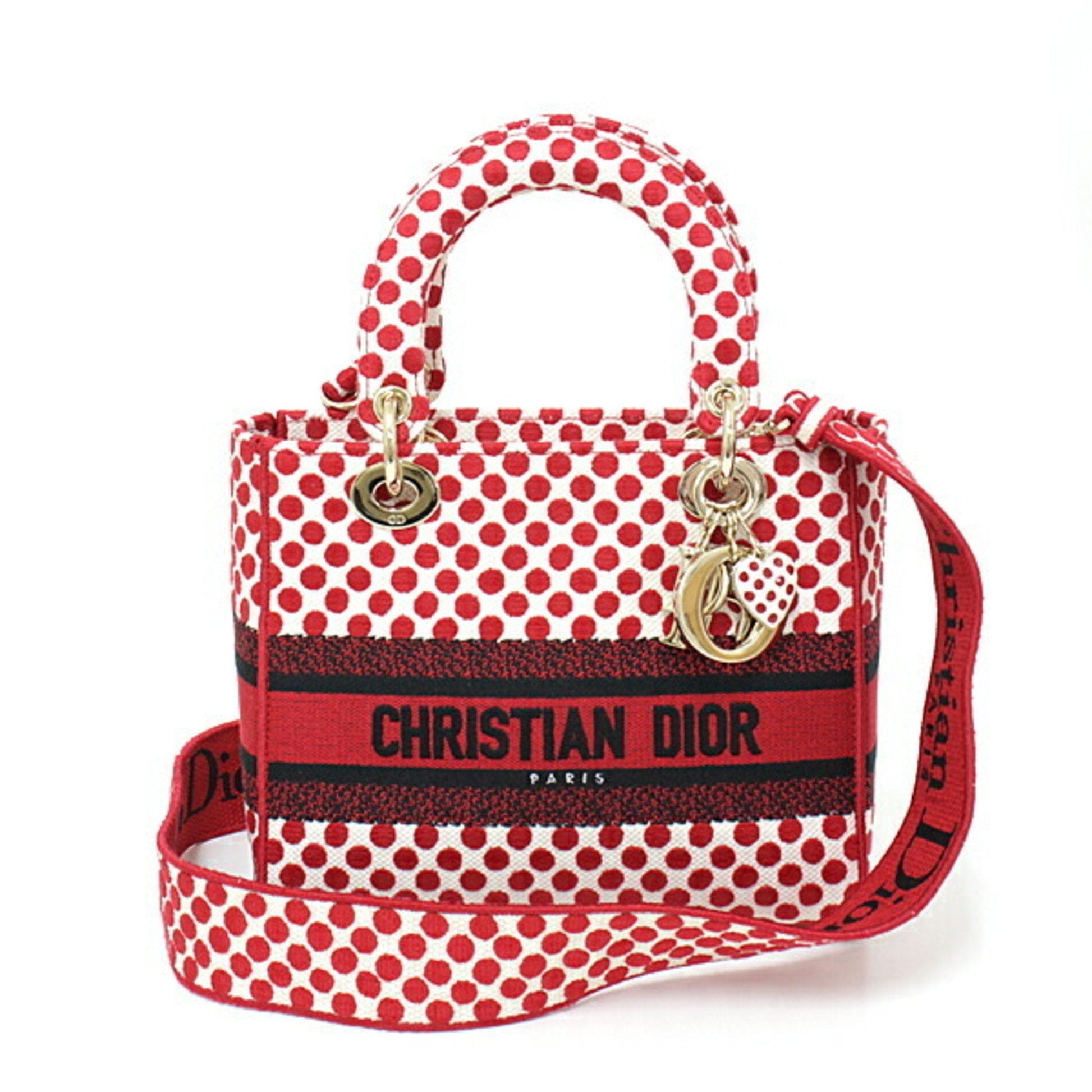 Christian Dior DIOR Dior Amour Lady D-Lite Dee Light Mini Medium Bag Red x Polka Dot Canvas M0565OBBE_933U HandBag Shoulder