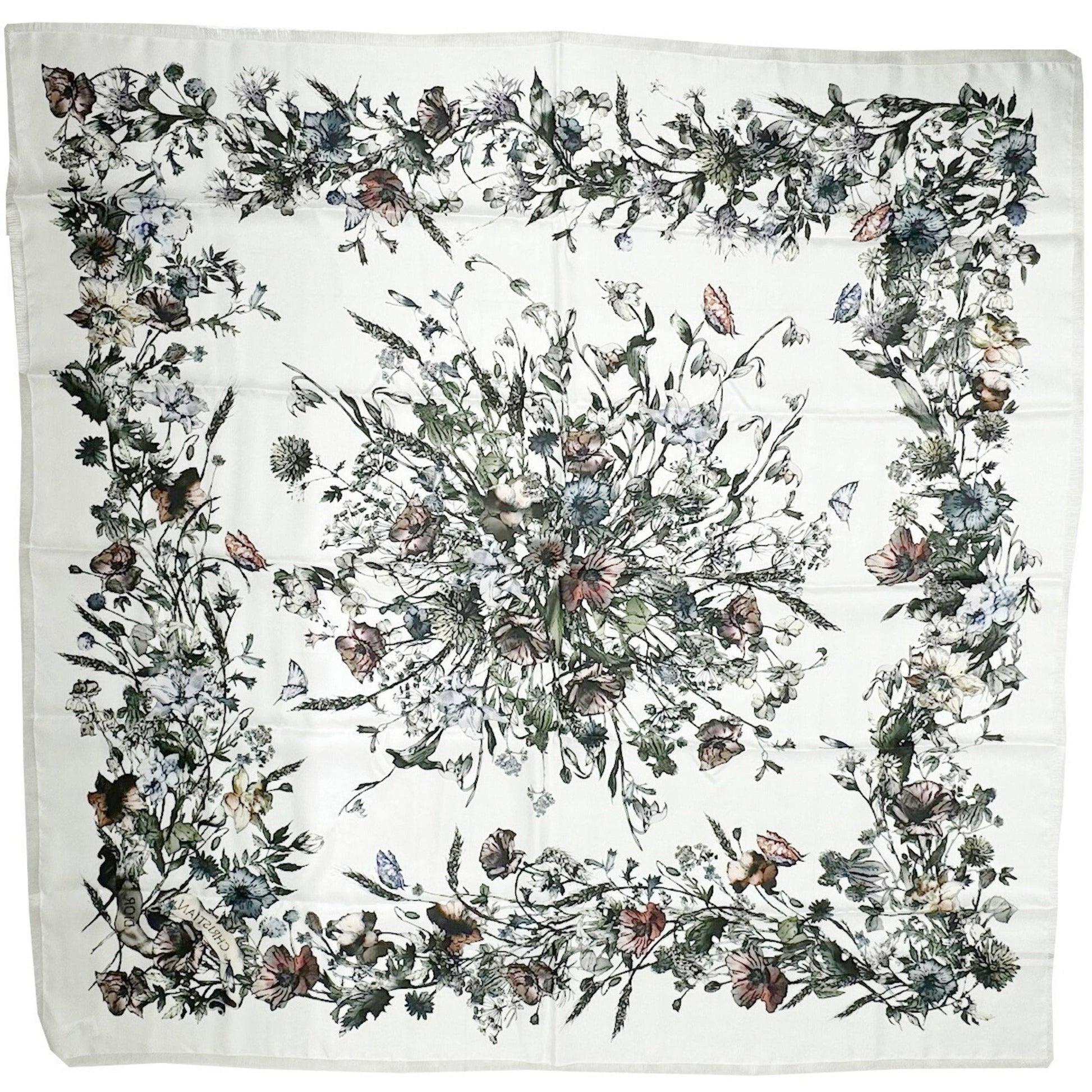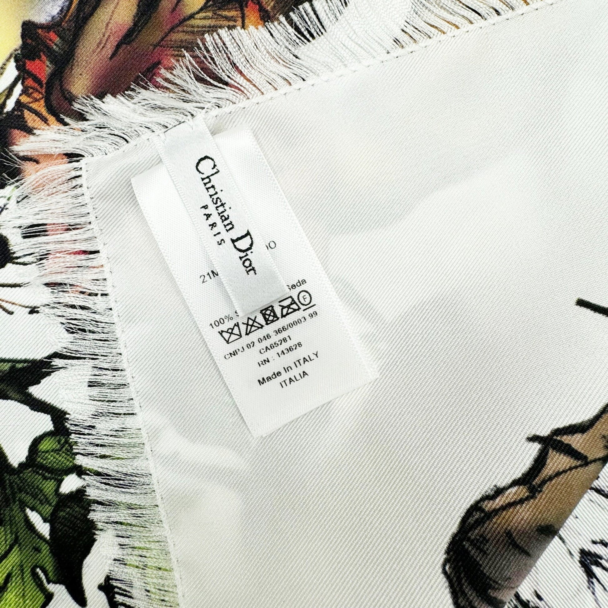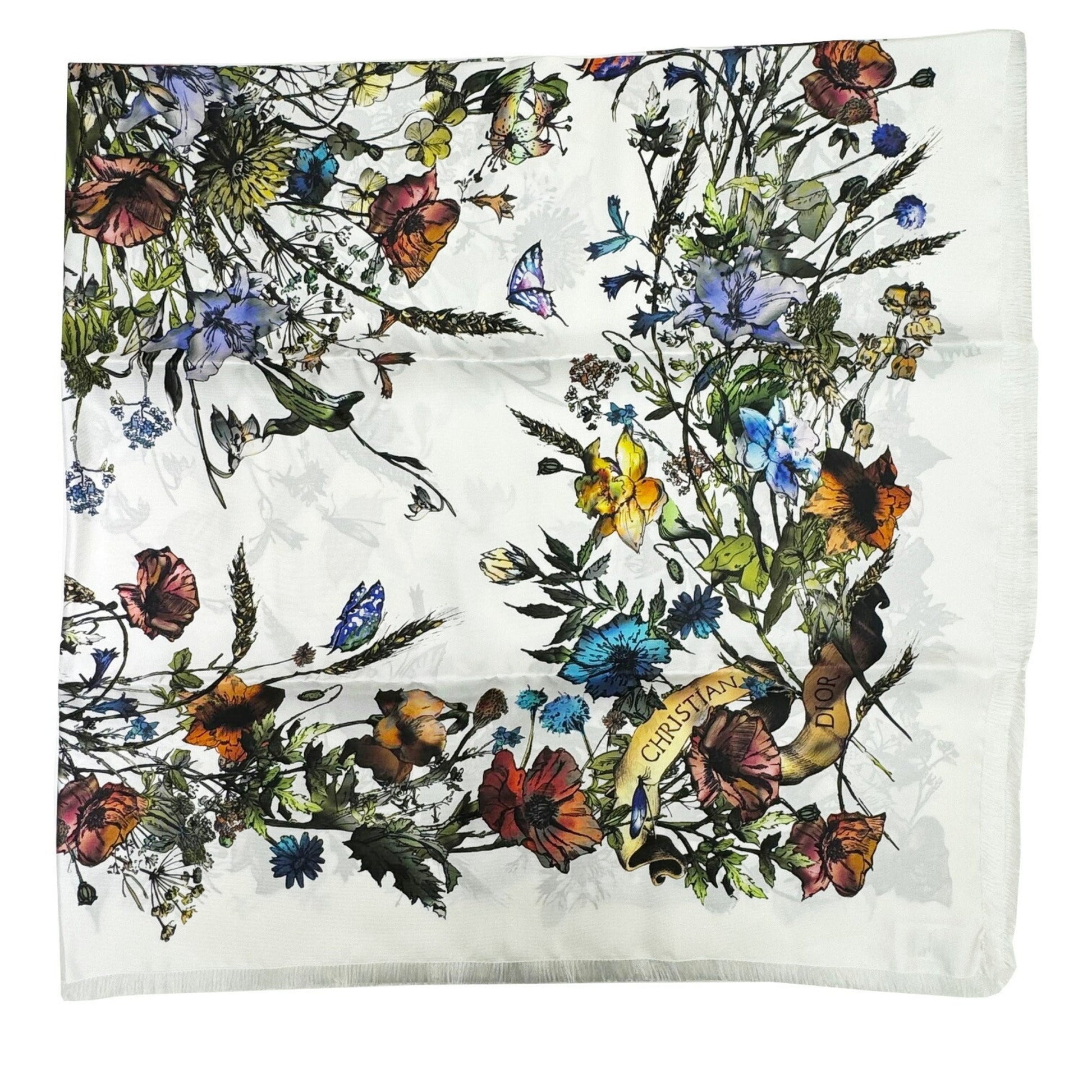 Christian Dior Flower Large Scarf 140cm White Silk 100% Women's