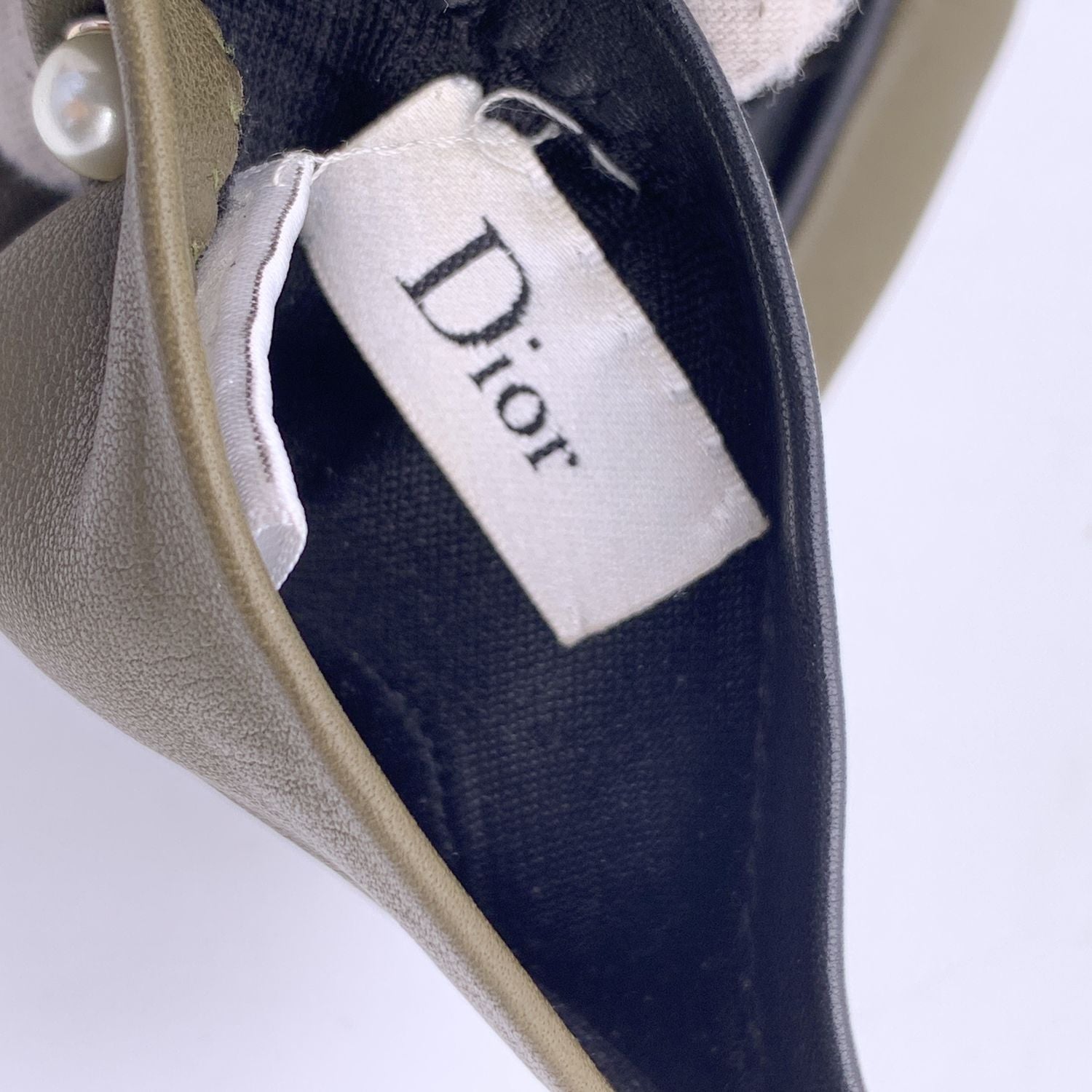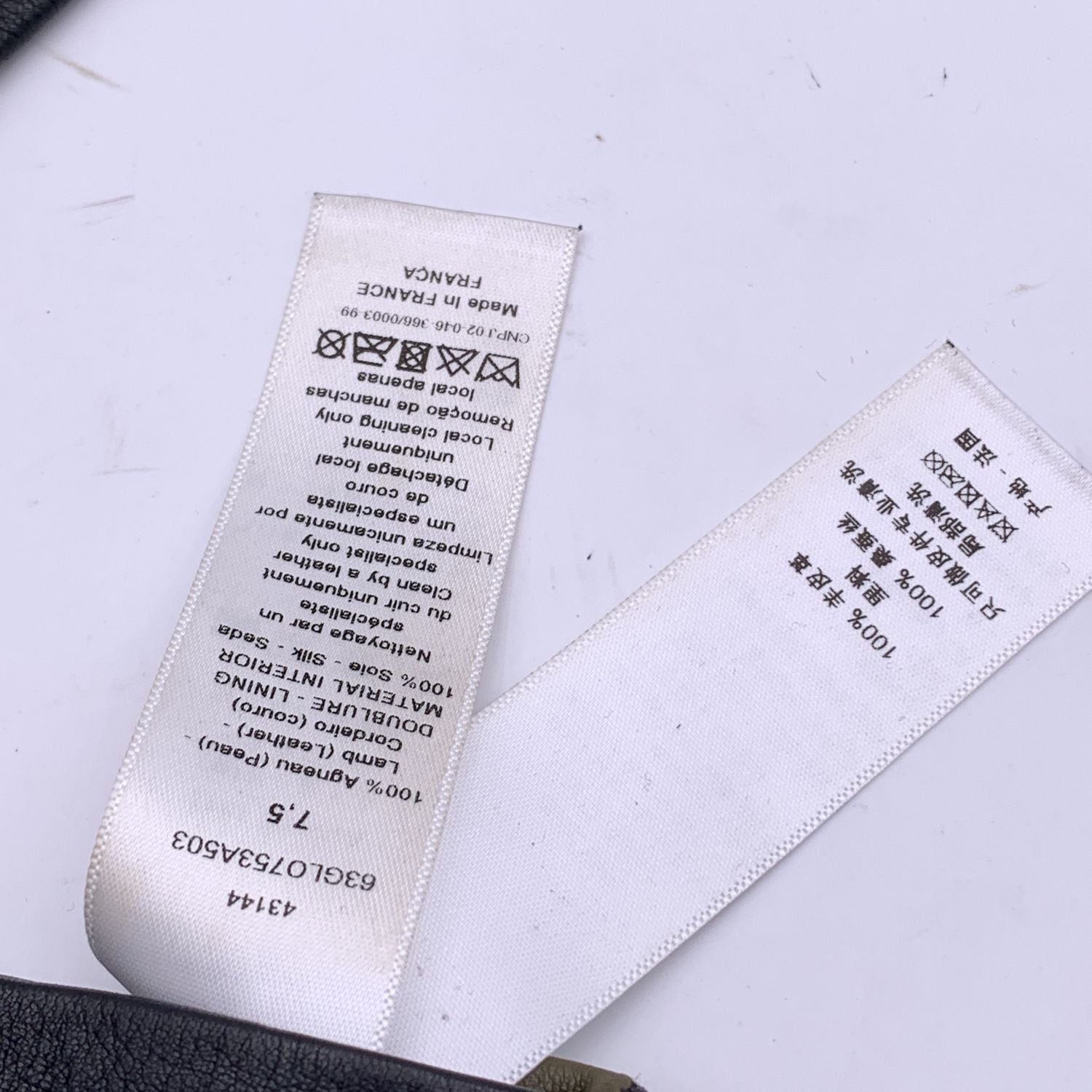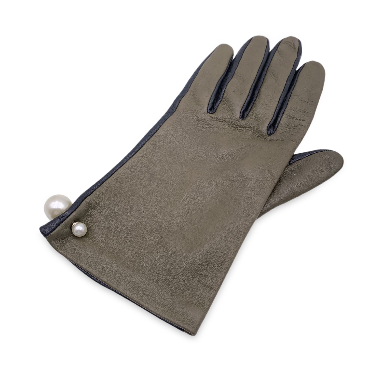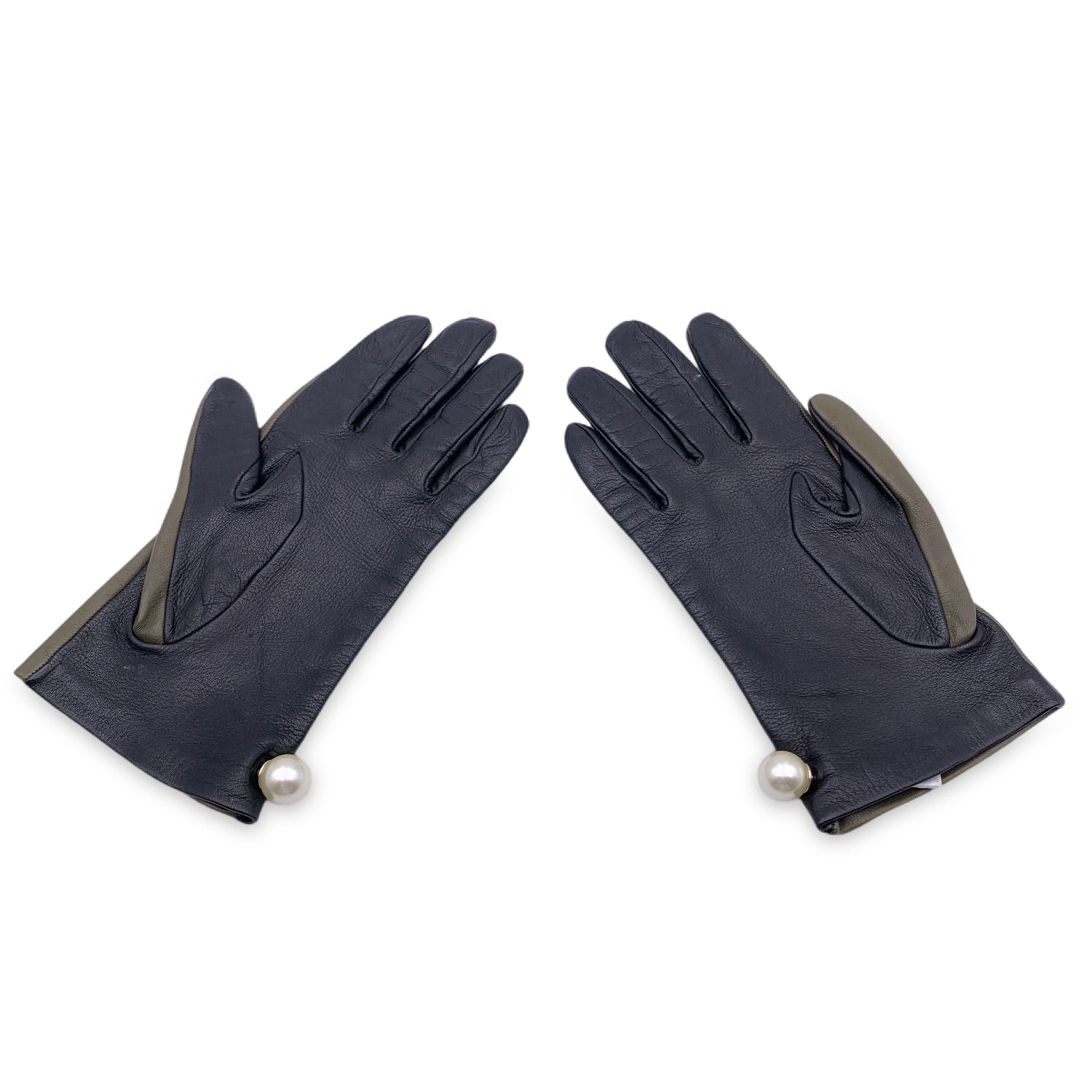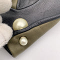 CHRISTIAN DIOR Green Black Leather Tribales Pearl Gloves Size 7.5