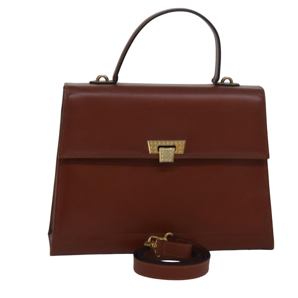 CHRISTIAN DIOR Hand Bag Leather 2way Brown Auth 83574
