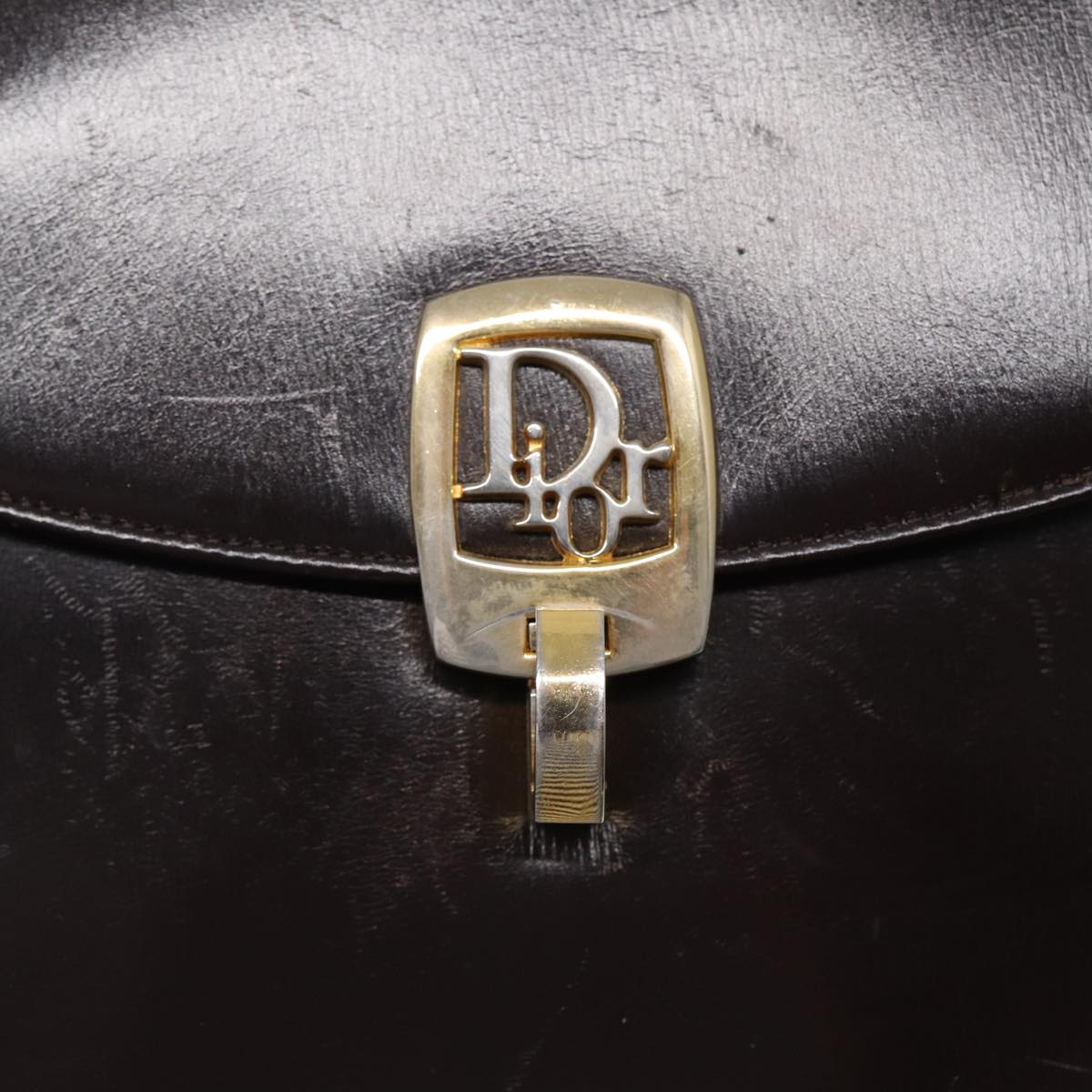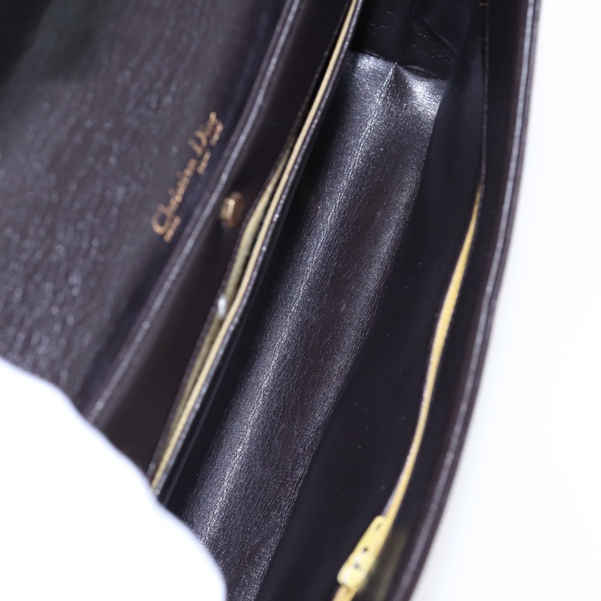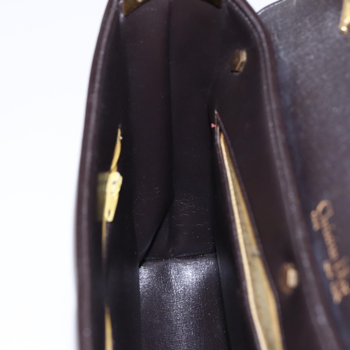 CHRISTIAN DIOR Hand Bag Leather 2way Brown Gold Auth yk14414