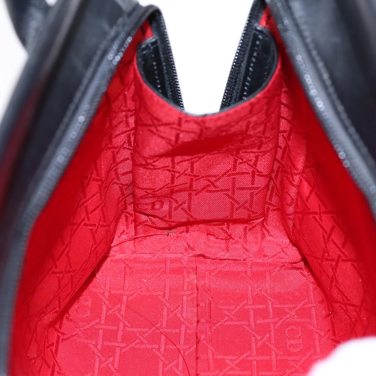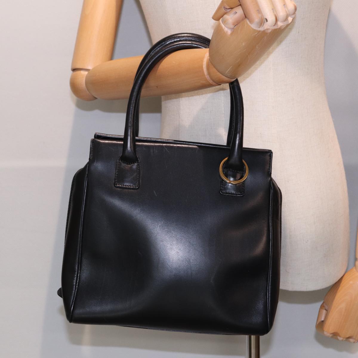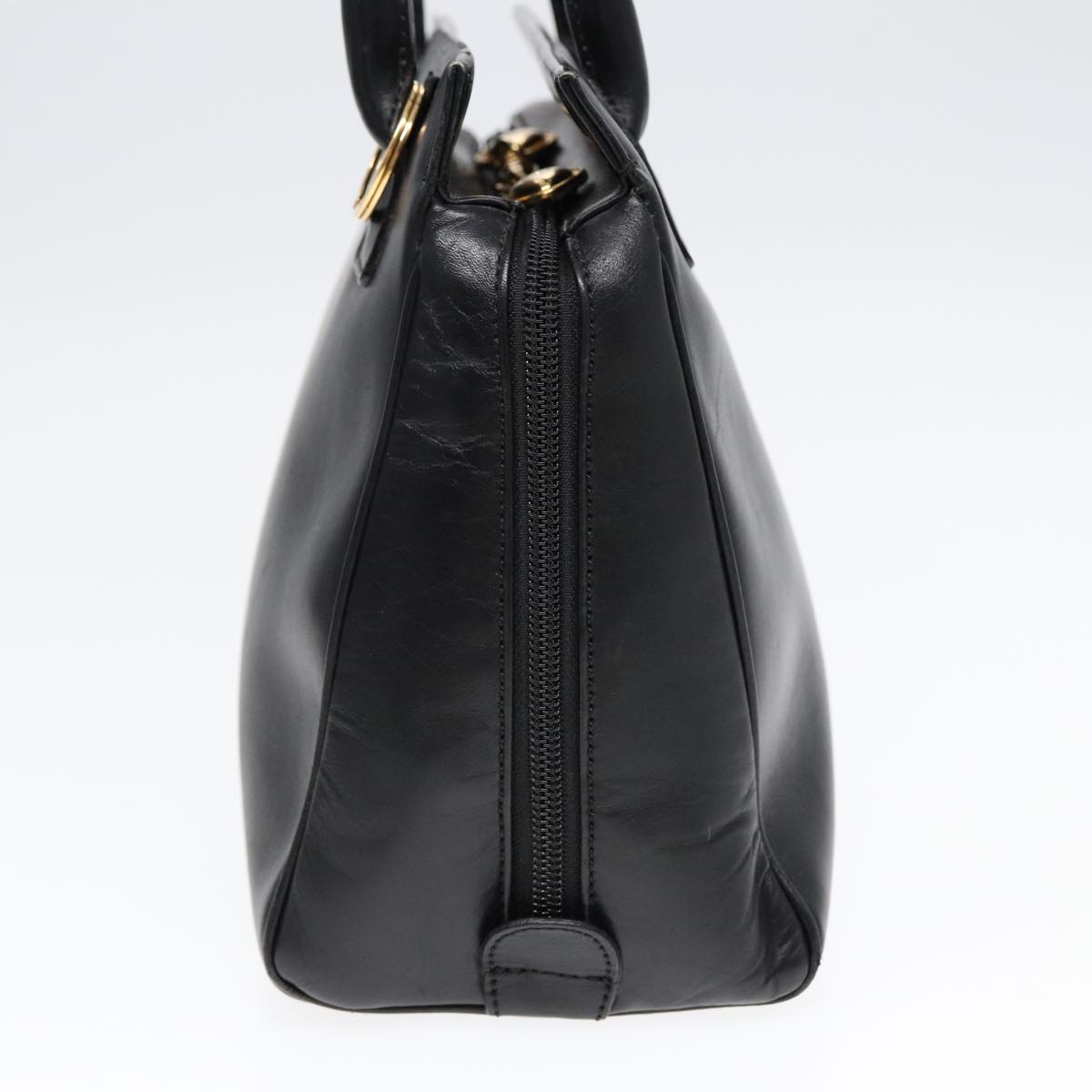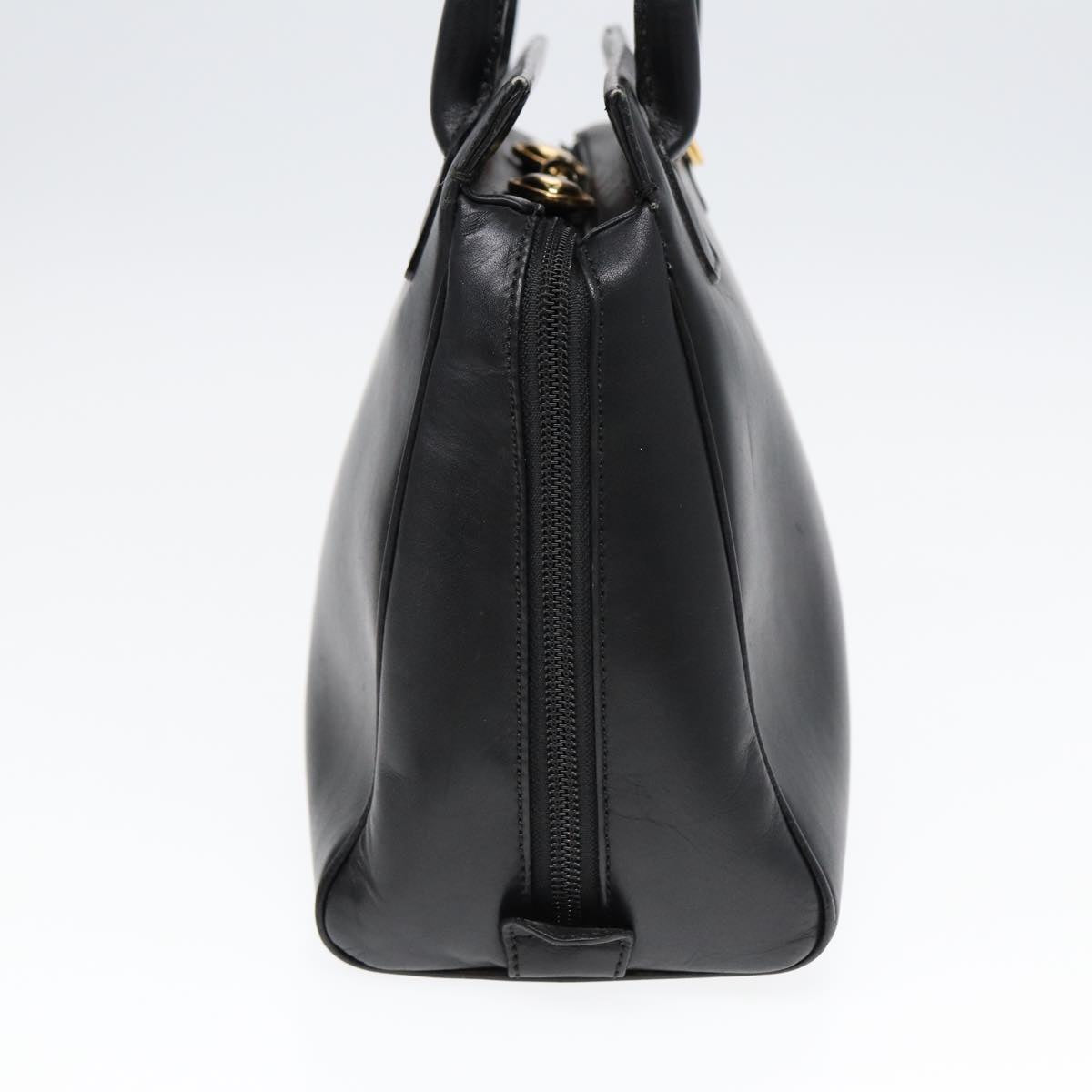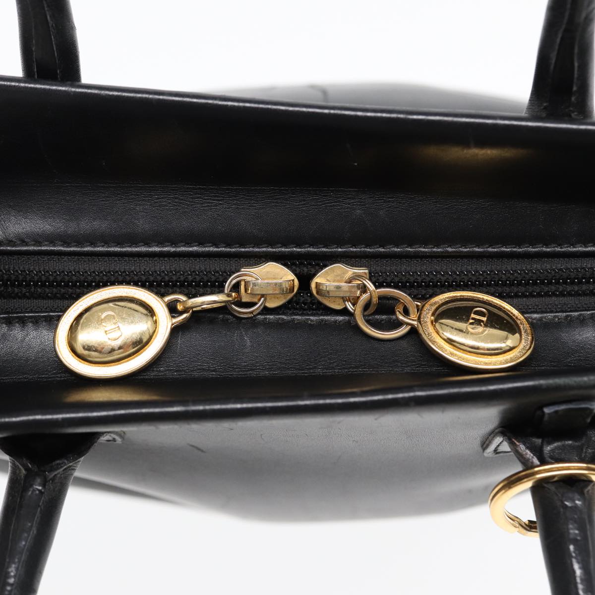CHRISTIAN DIOR Hand Bag Leather Black Gold Auth yk14415