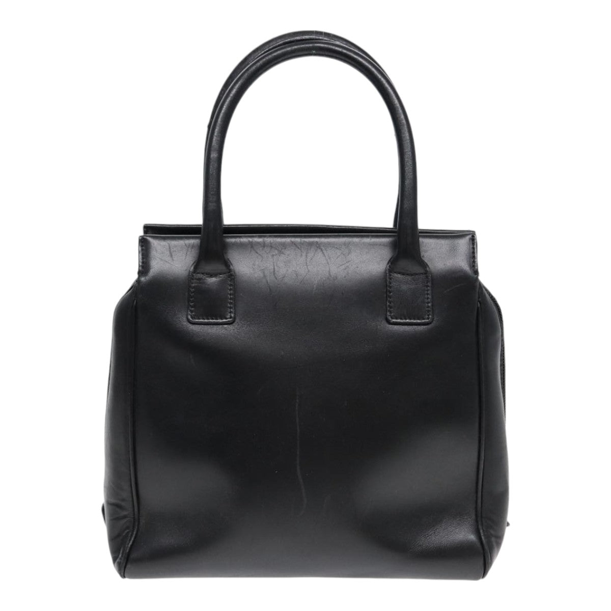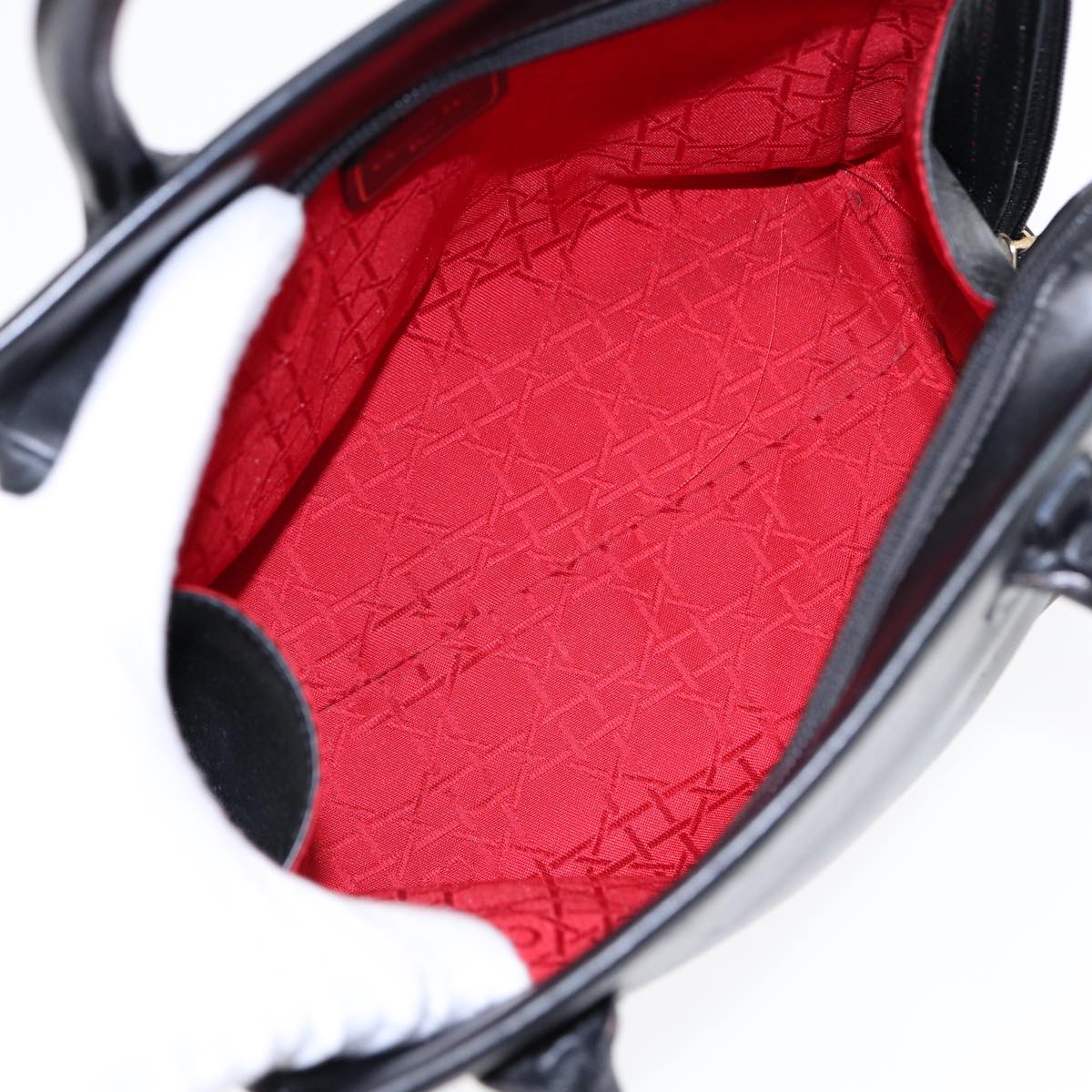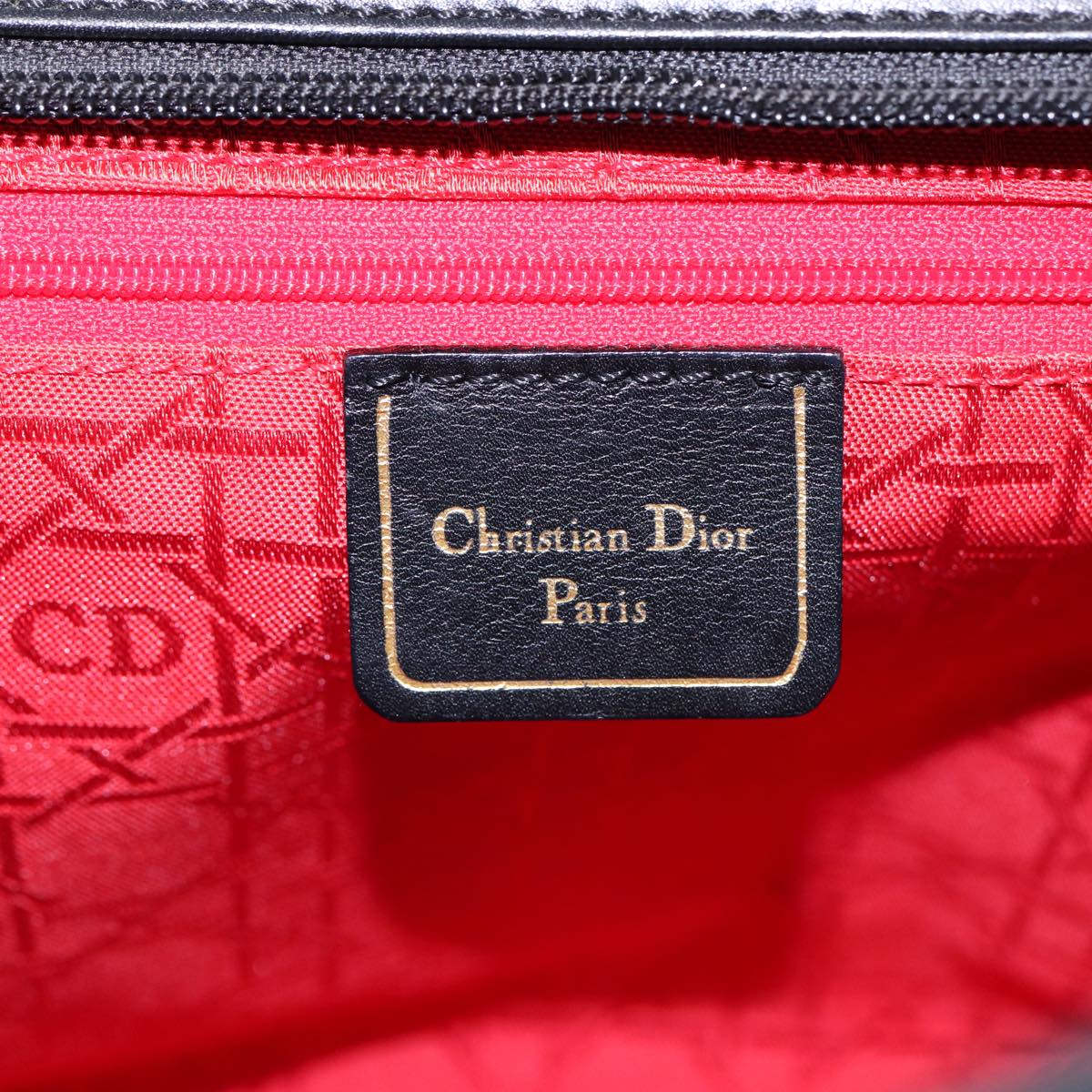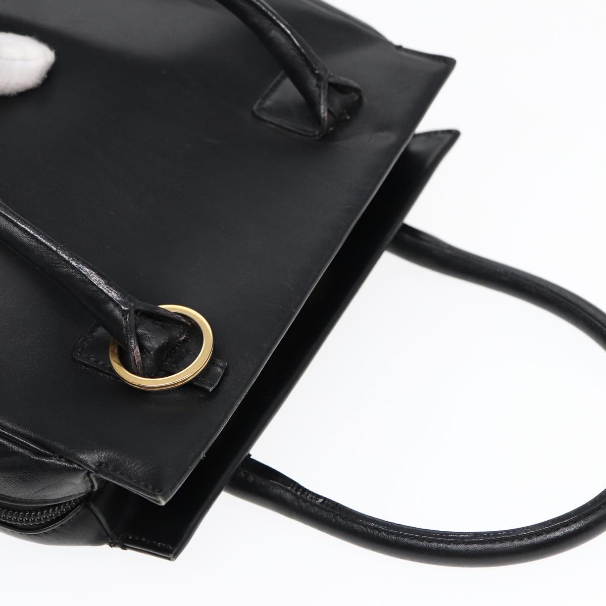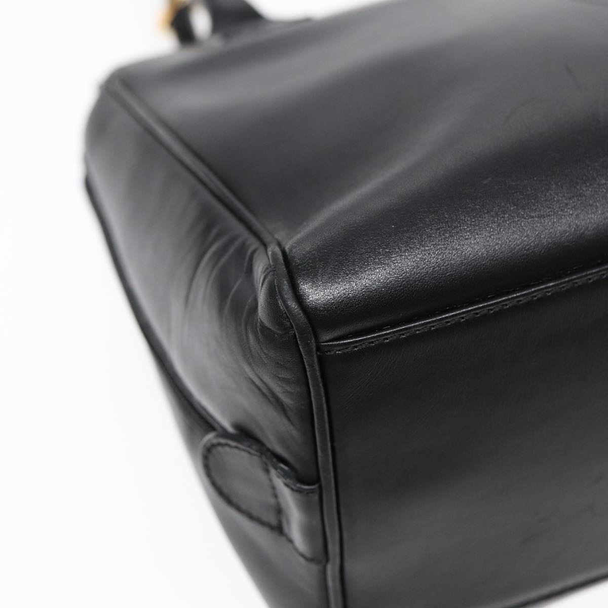CHRISTIAN DIOR Hand Bag Leather Black Gold Auth yk14415