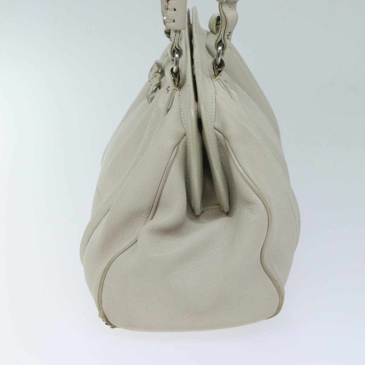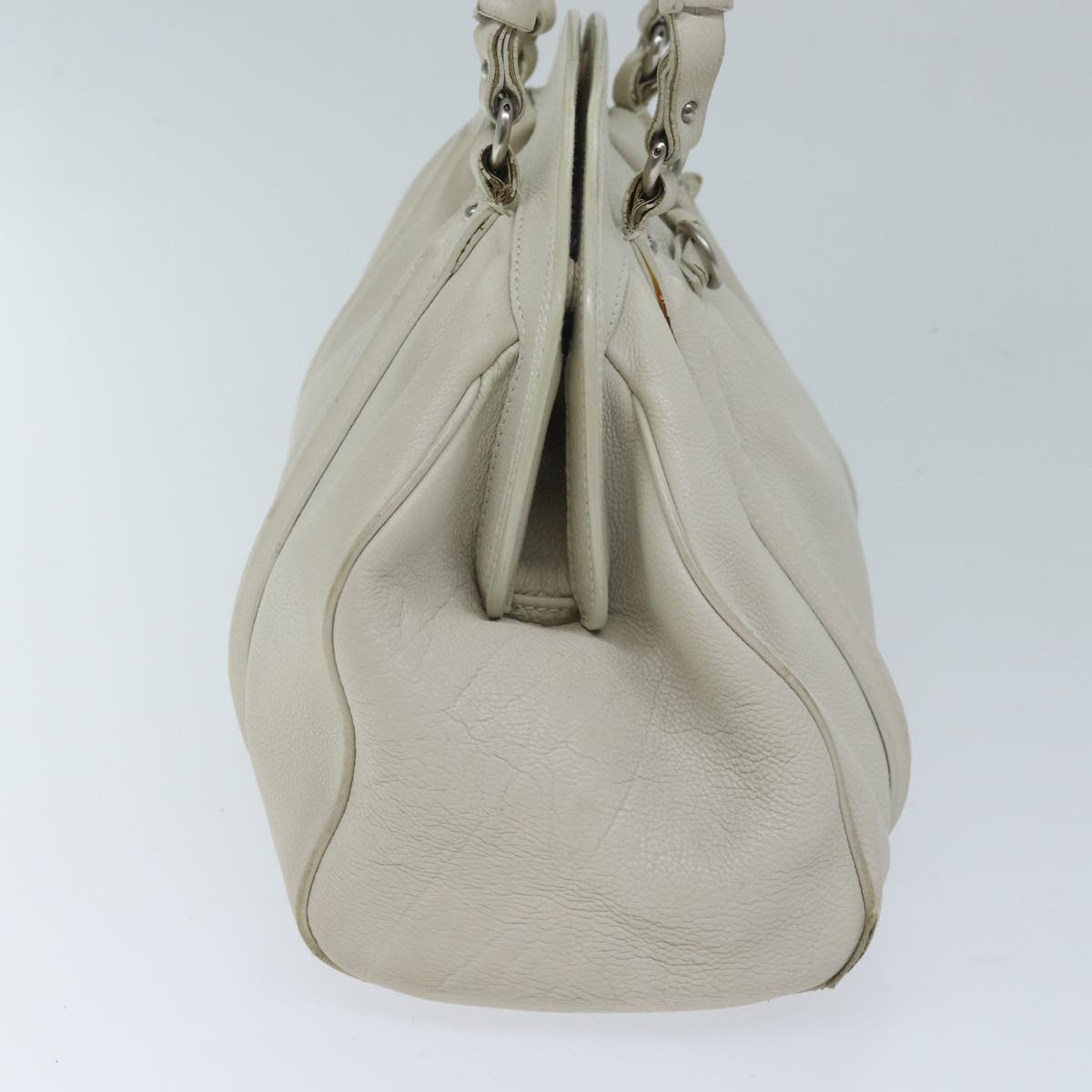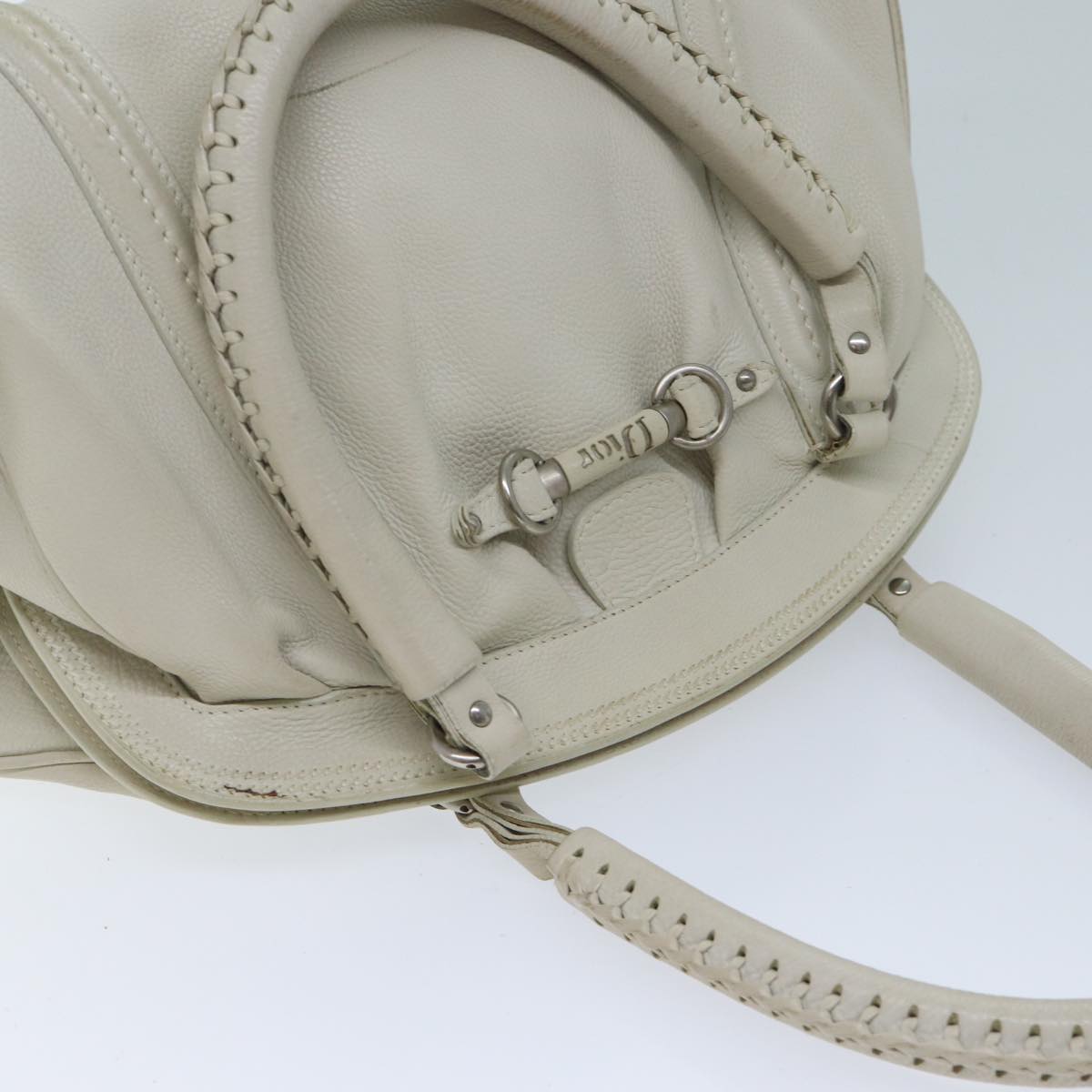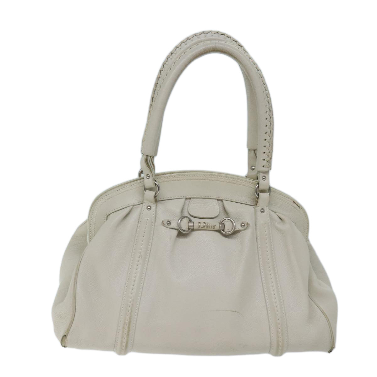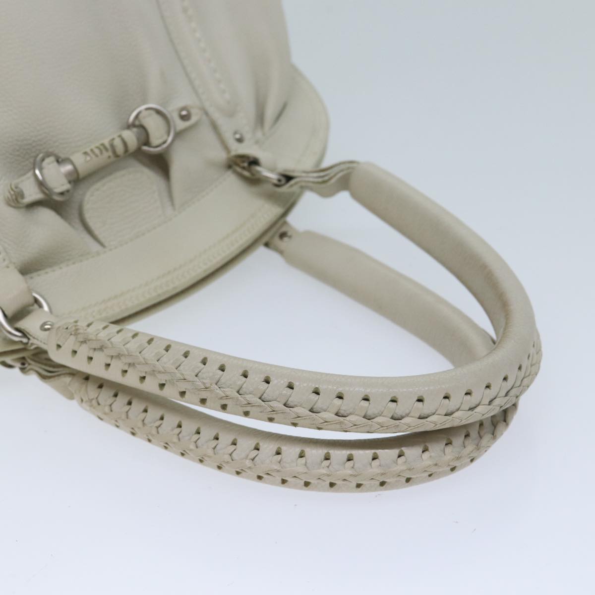 CHRISTIAN DIOR Hand Bag Leather White Auth yk11480