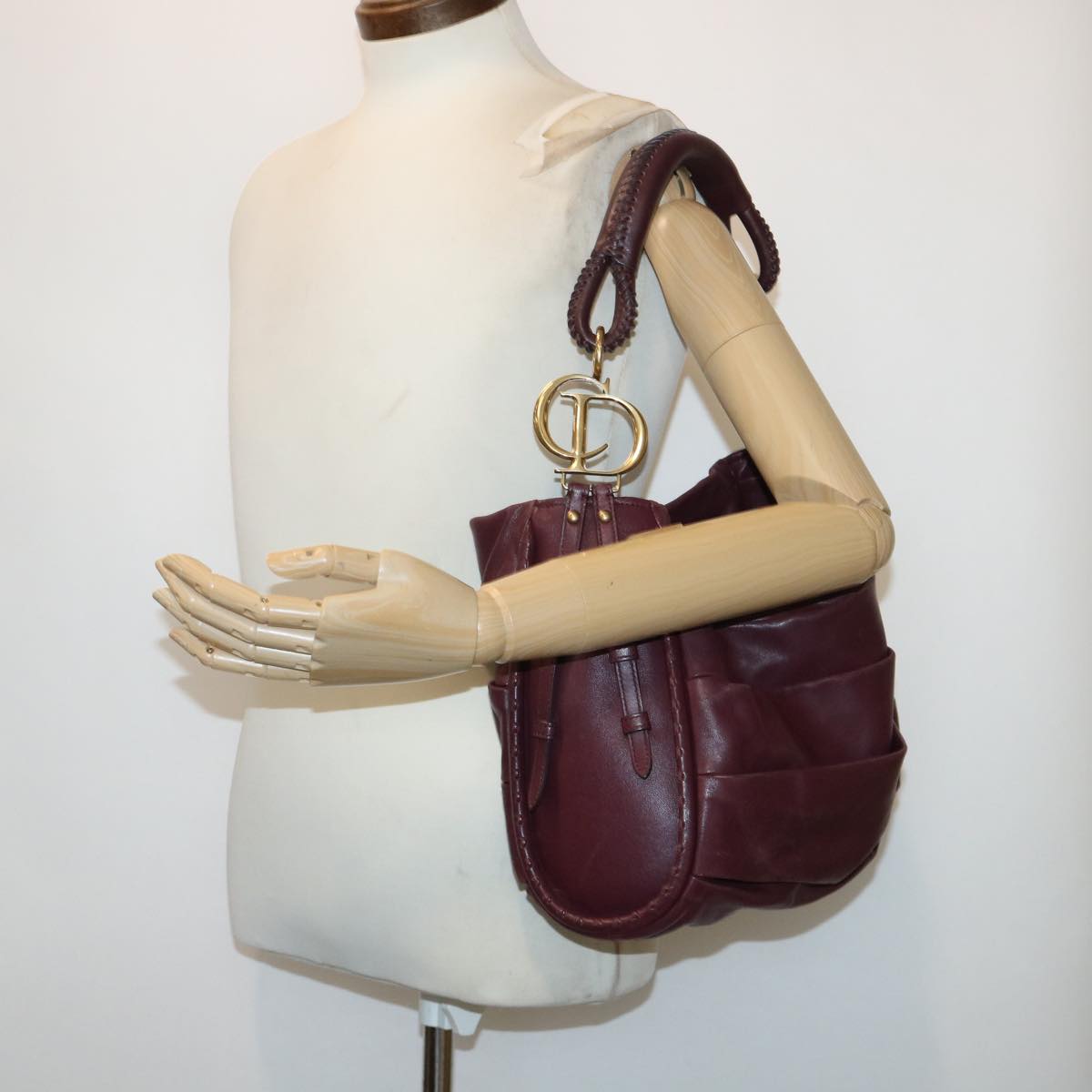 CHRISTIAN DIOR Hobo Shoulder Bag Leather Red 09-MA-0190 Auth am4586
