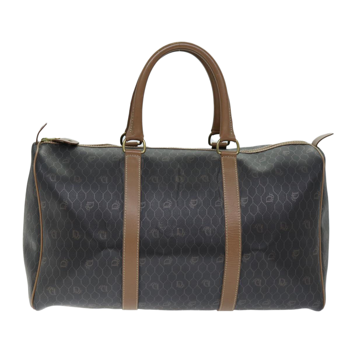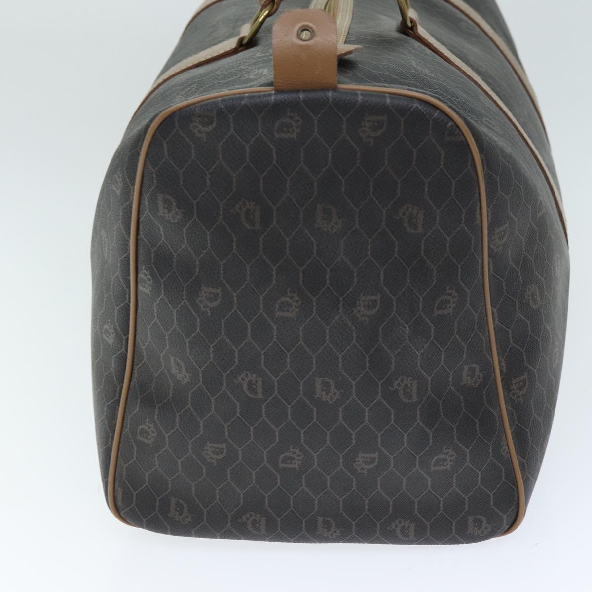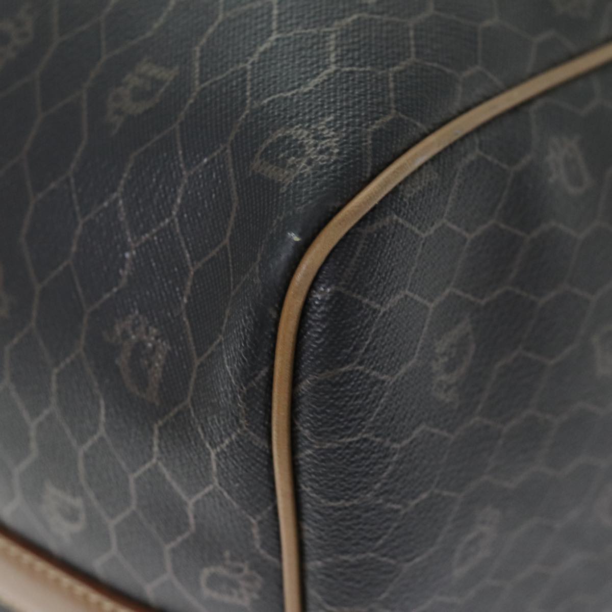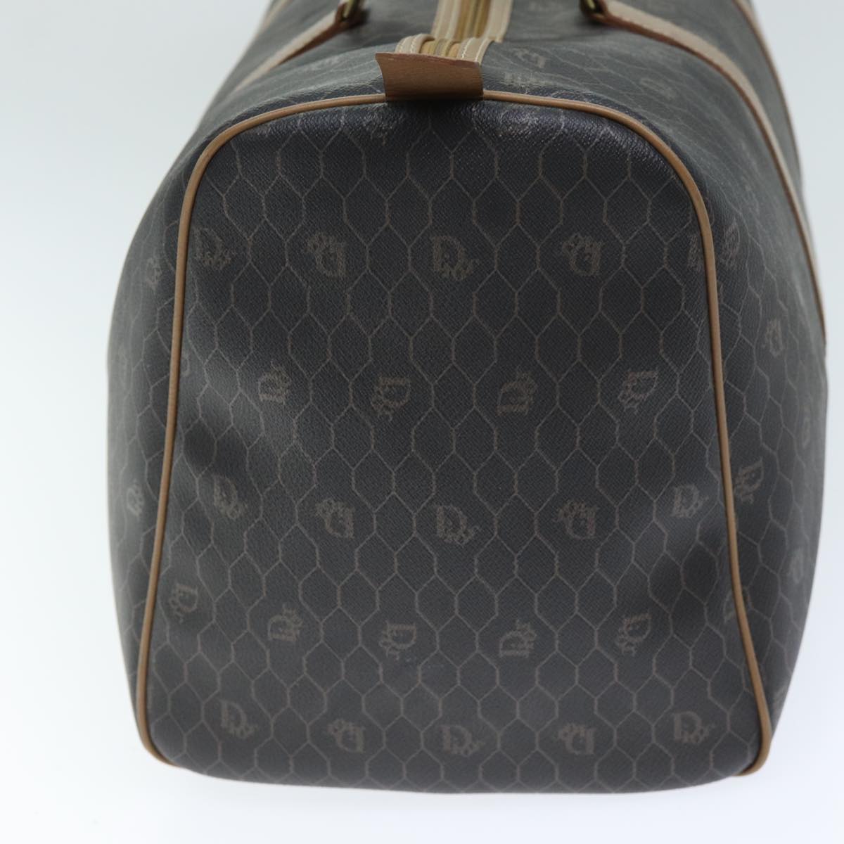 CHRISTIAN DIOR Honeycomb Canvas Boston Bag PVC Leather Black Auth 74187
