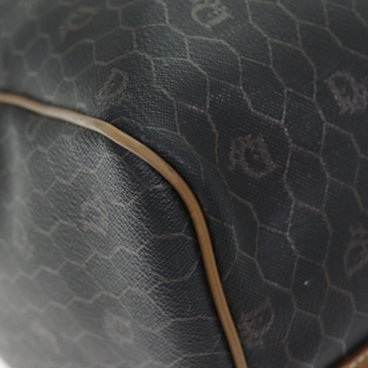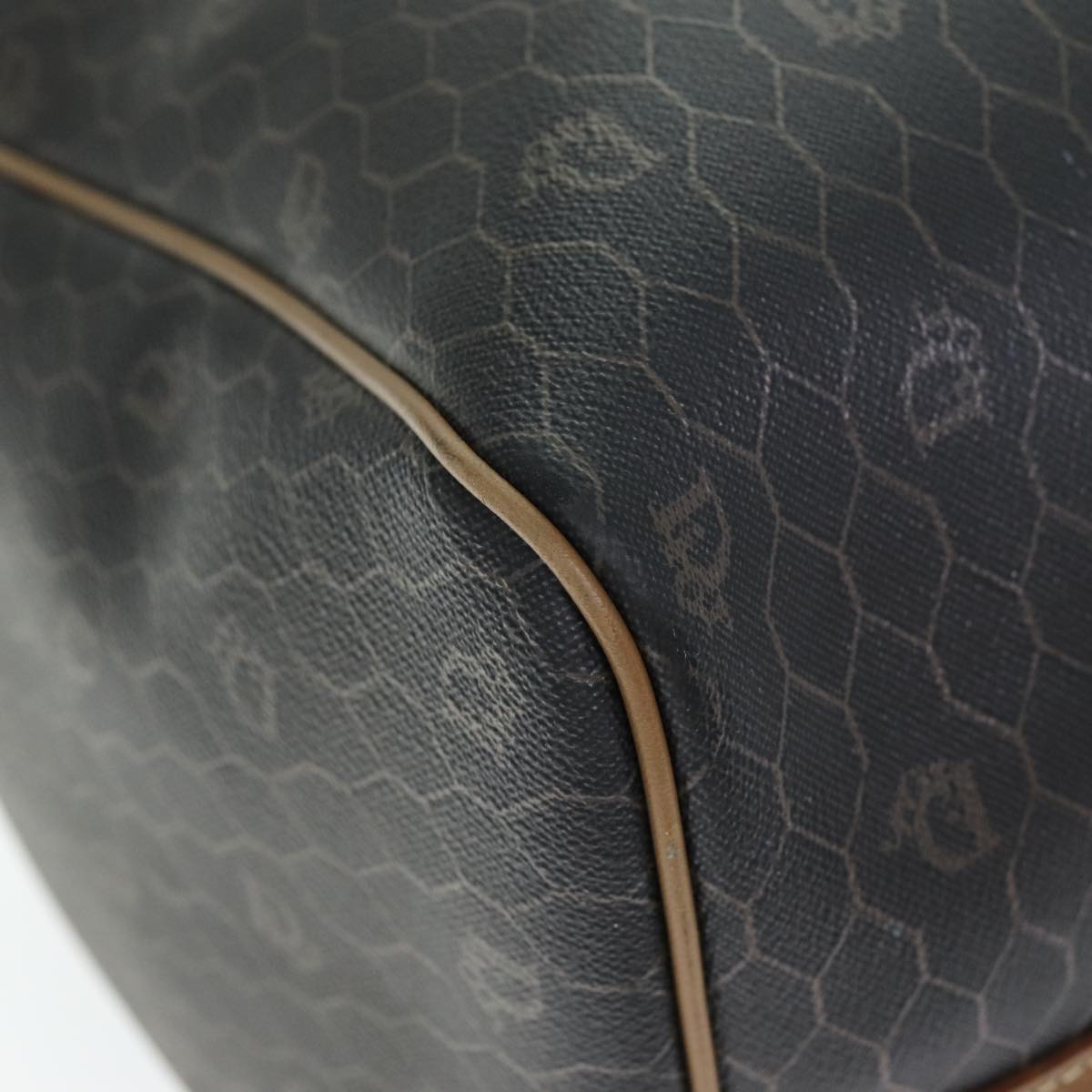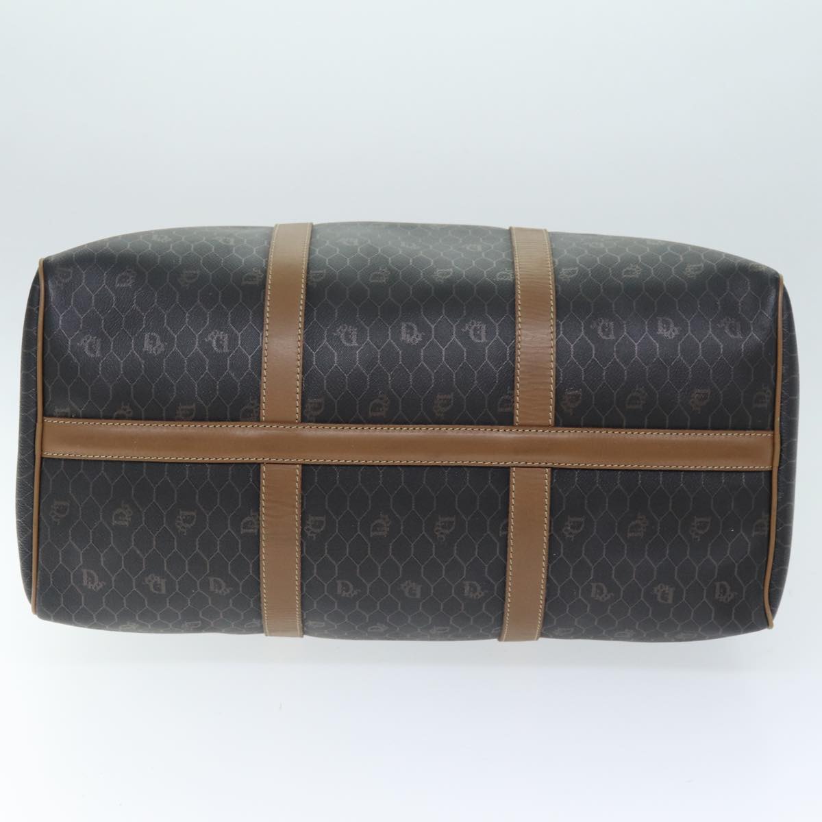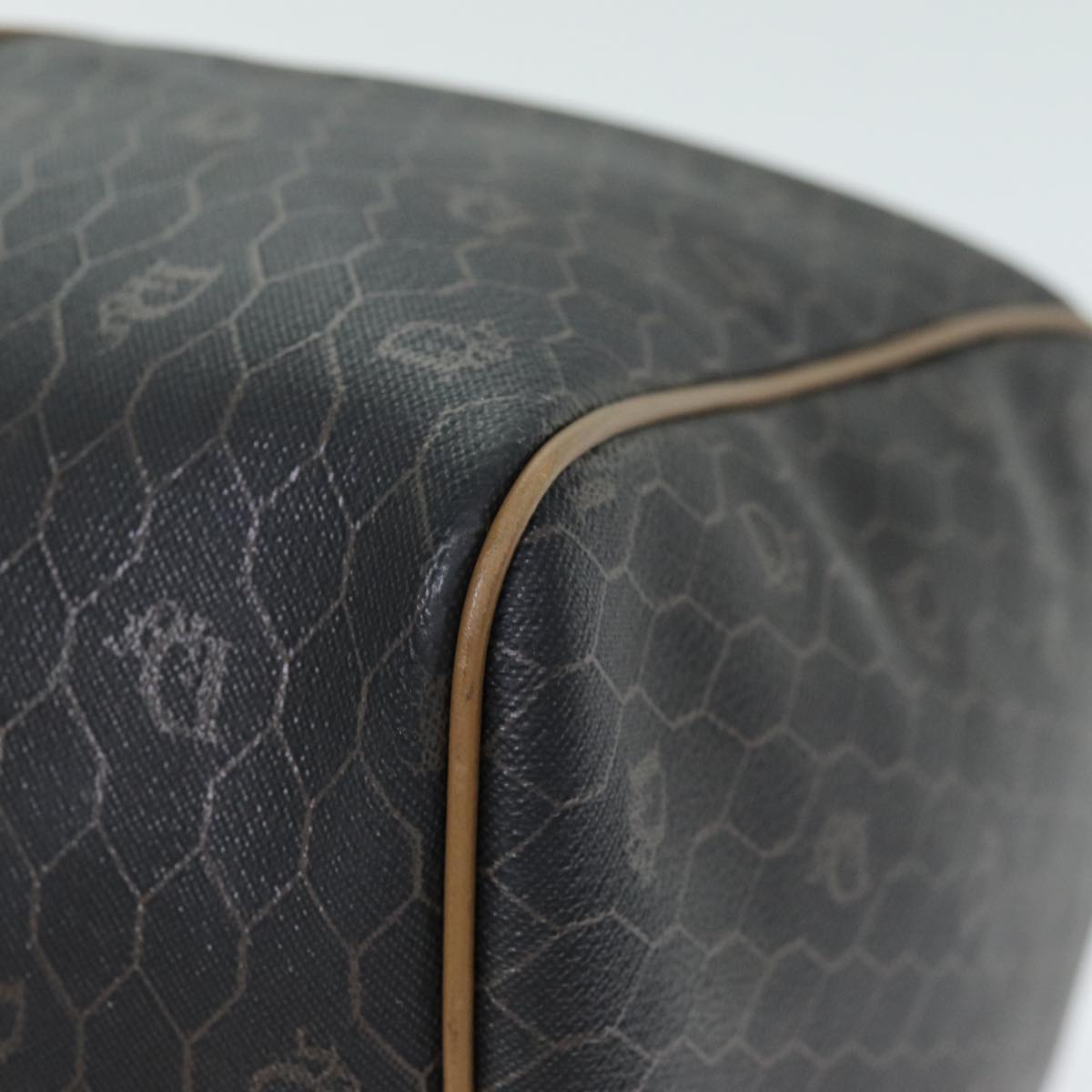 CHRISTIAN DIOR Honeycomb Canvas Boston Bag PVC Leather Black Auth 74187