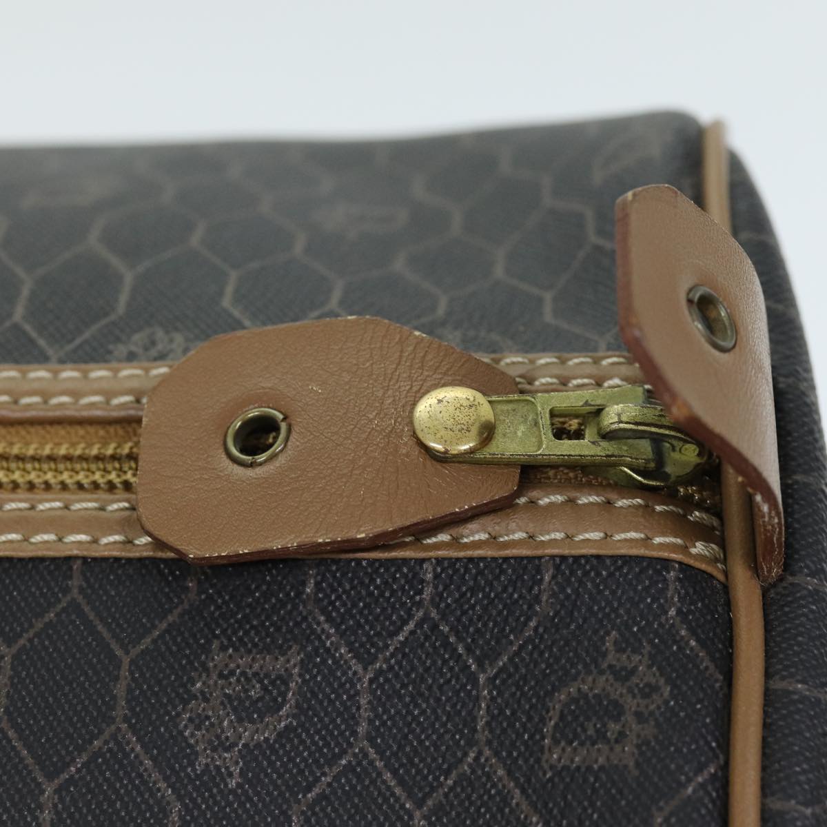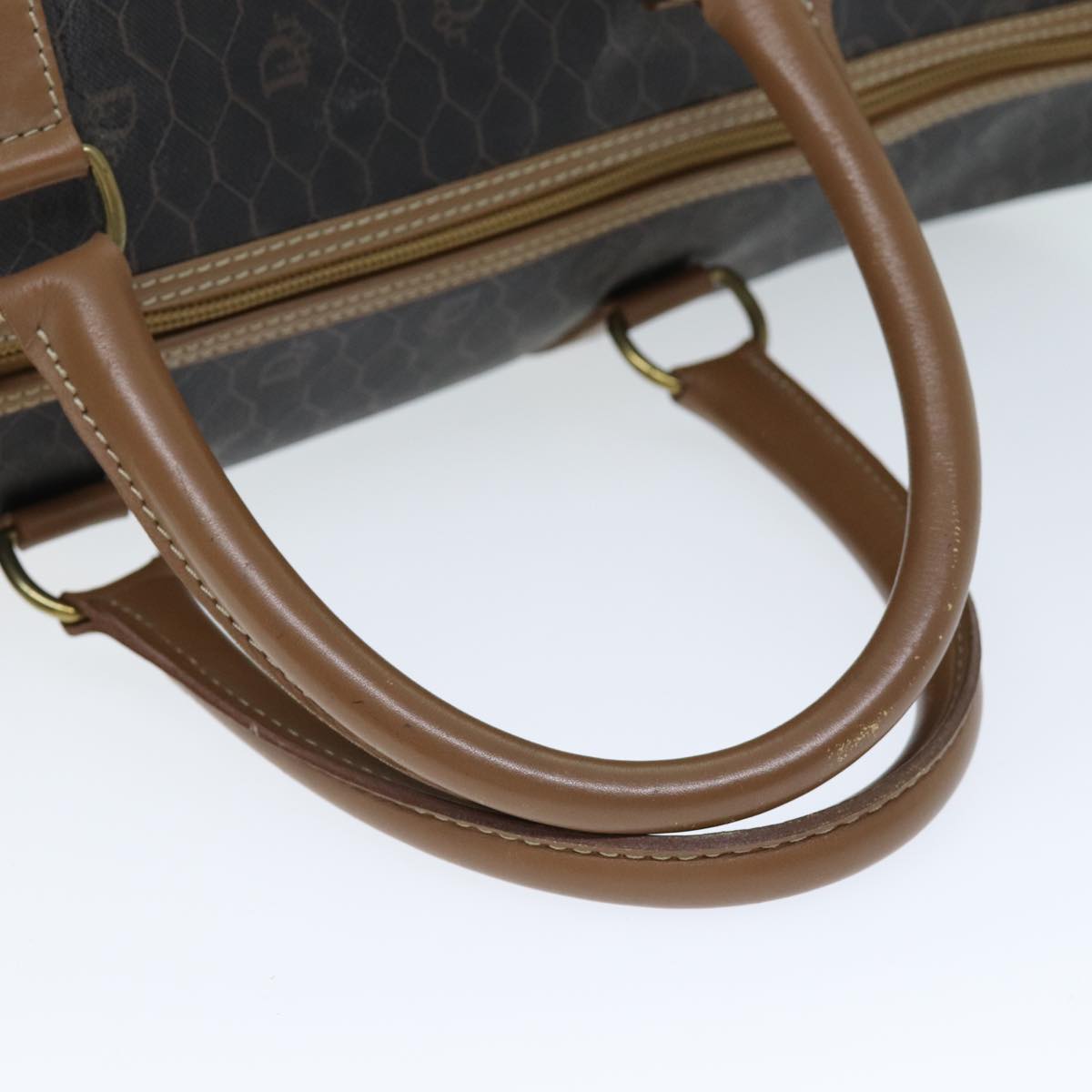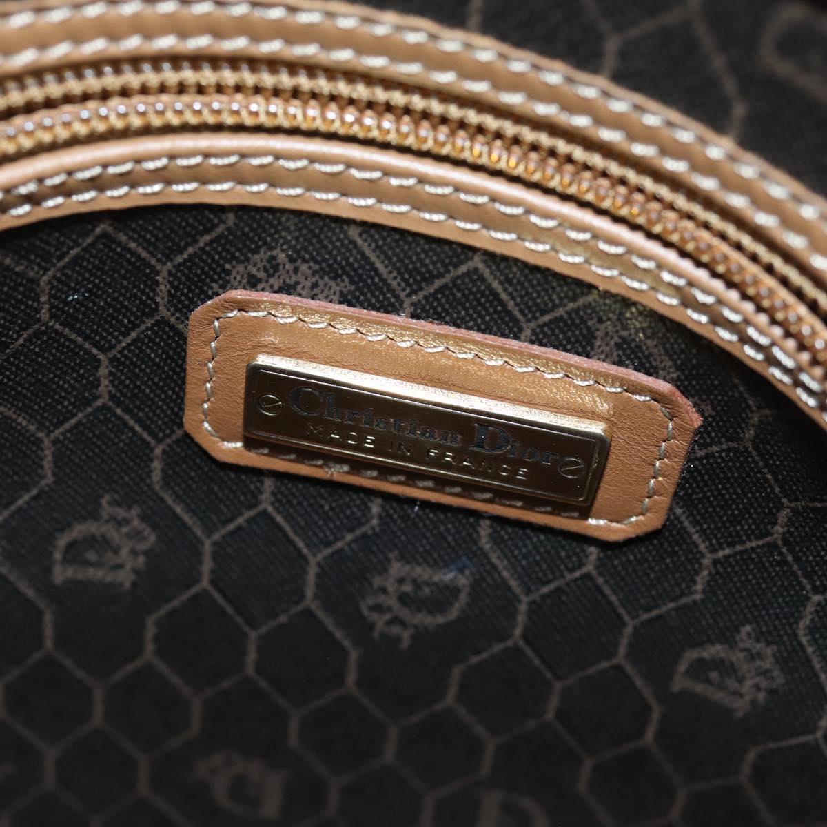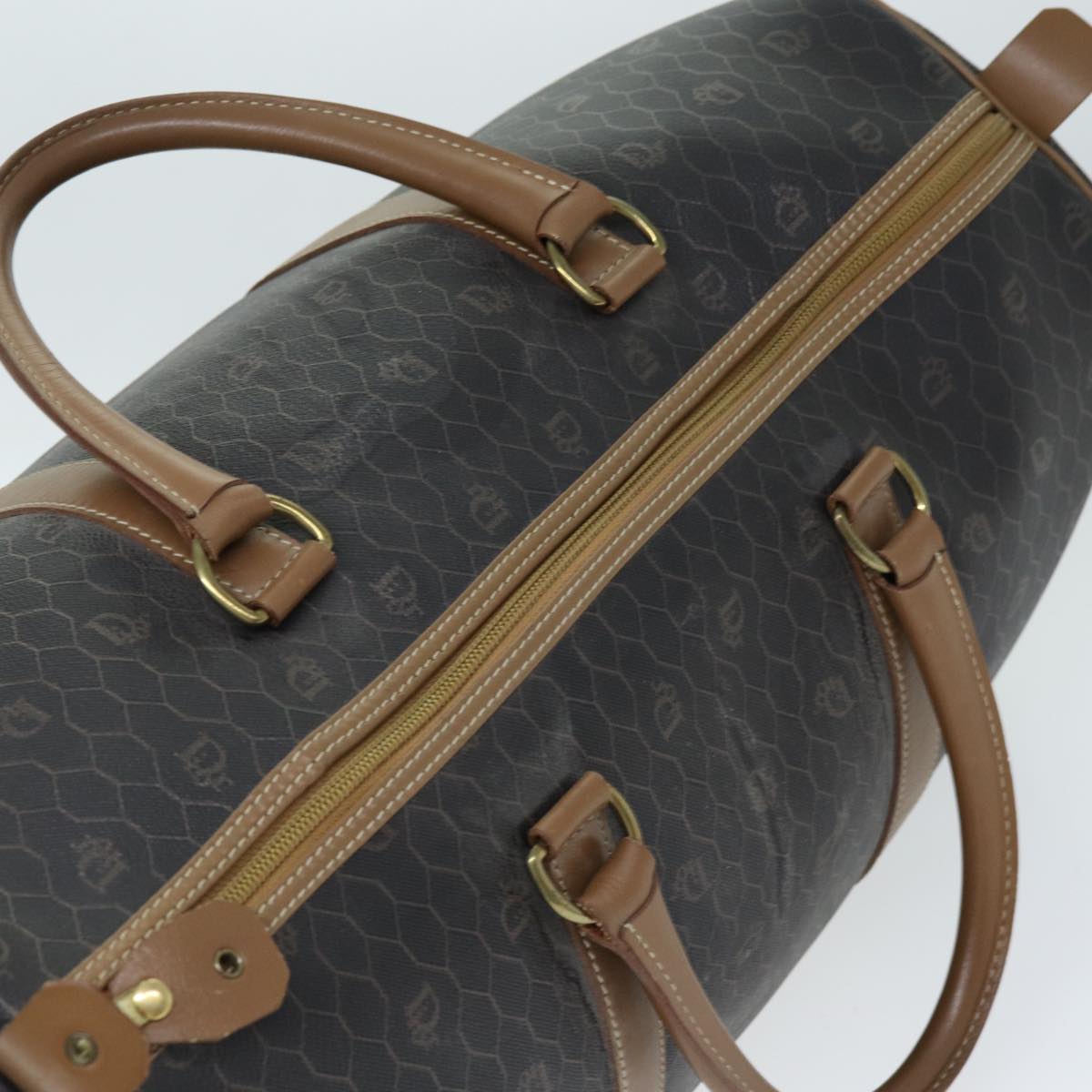 CHRISTIAN DIOR Honeycomb Canvas Boston Bag PVC Leather Black Auth 74187