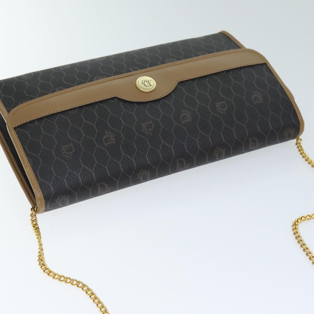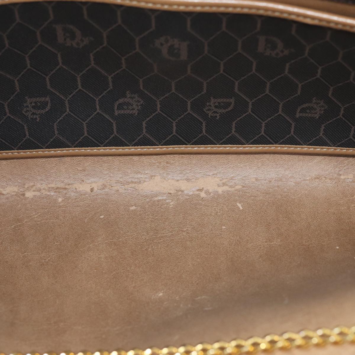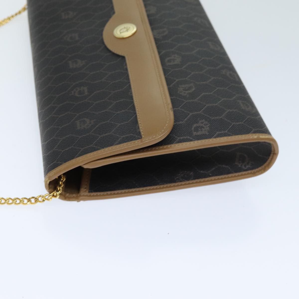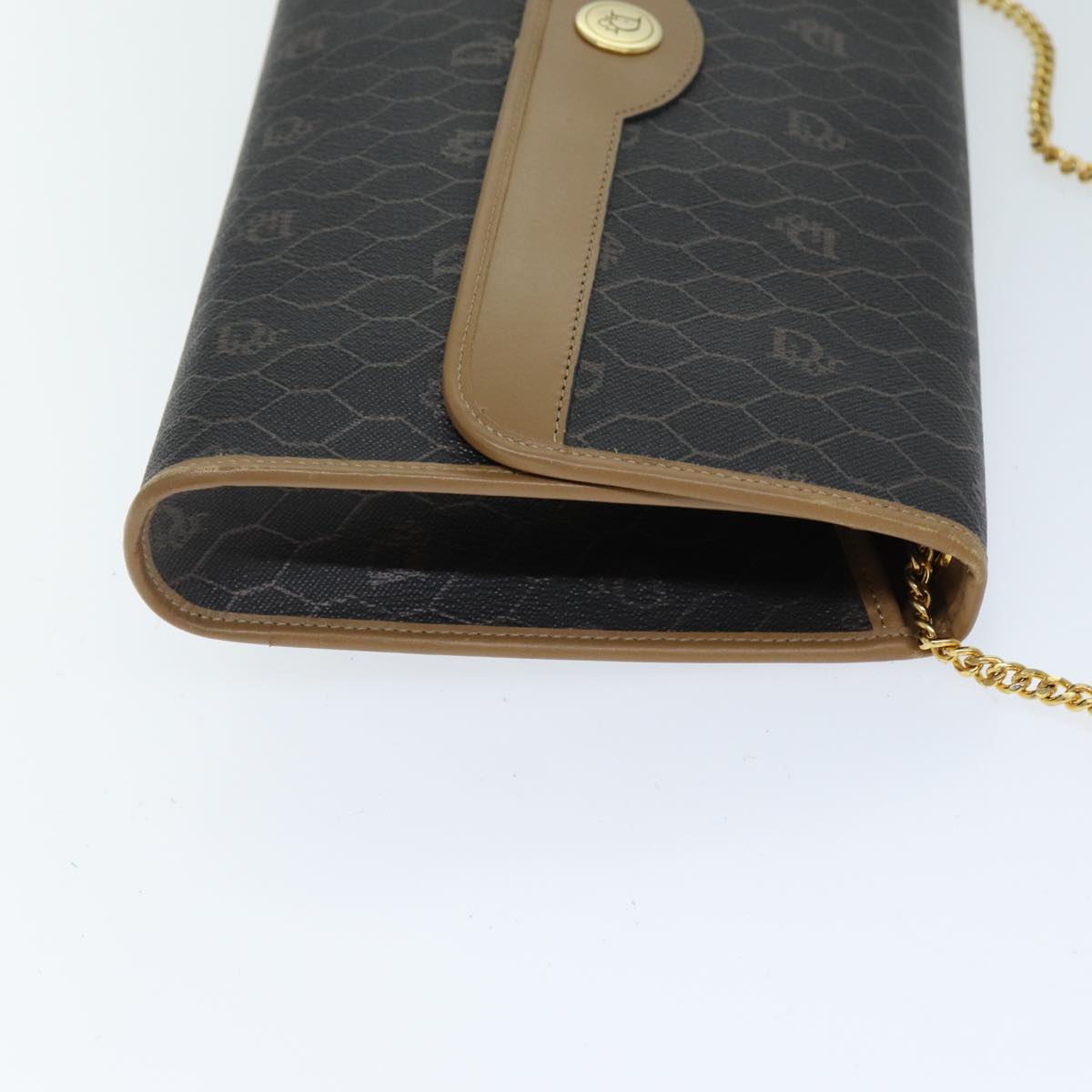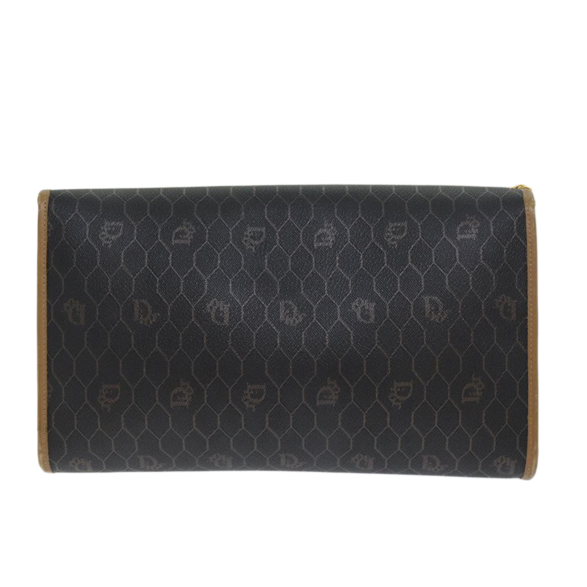 CHRISTIAN DIOR Honeycomb Canvas Chain Bag PVC Leather Black Auth bs14329