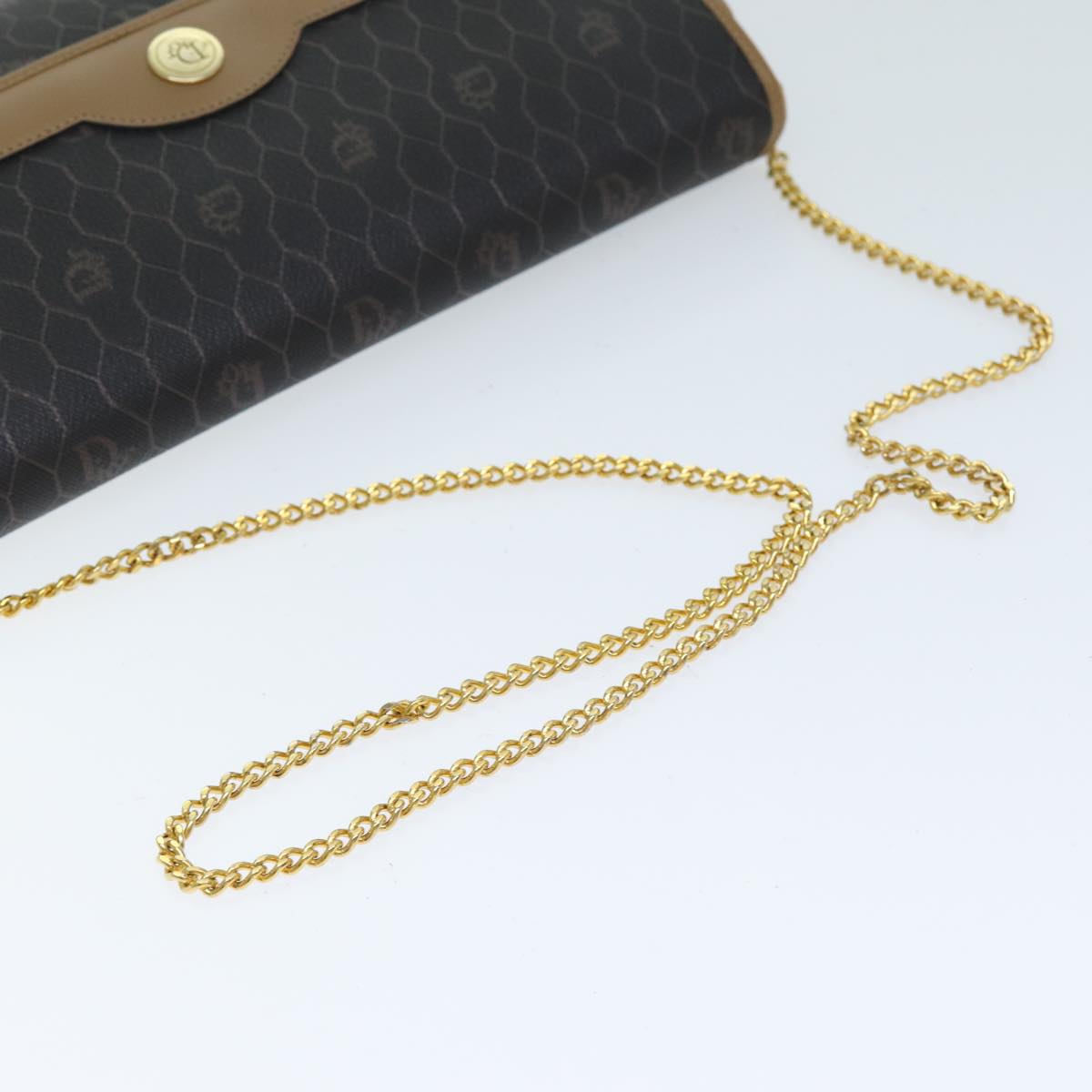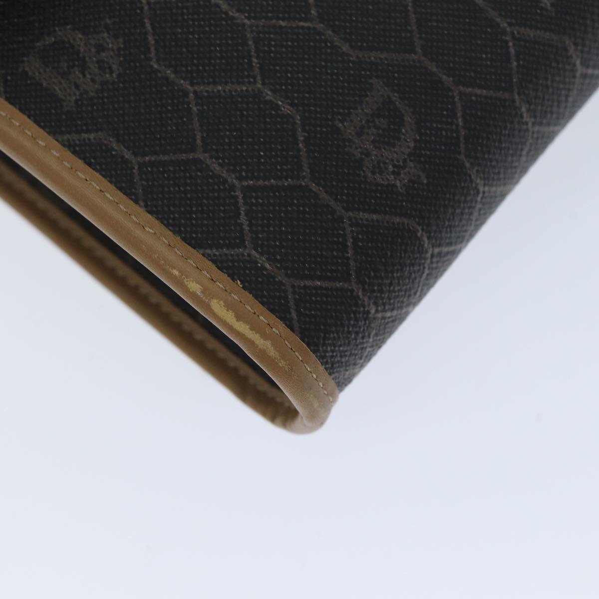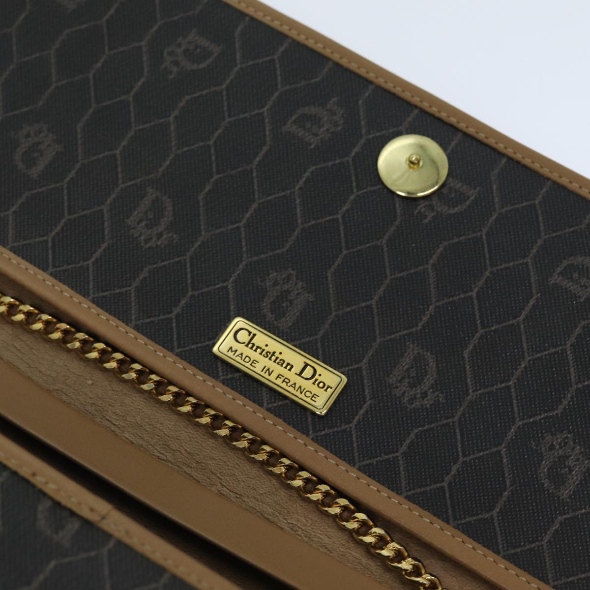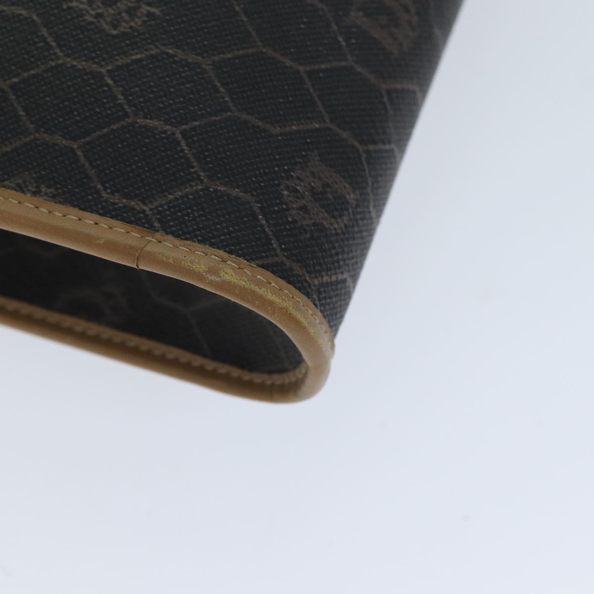 CHRISTIAN DIOR Honeycomb Canvas Chain Bag PVC Leather Black Auth bs14329