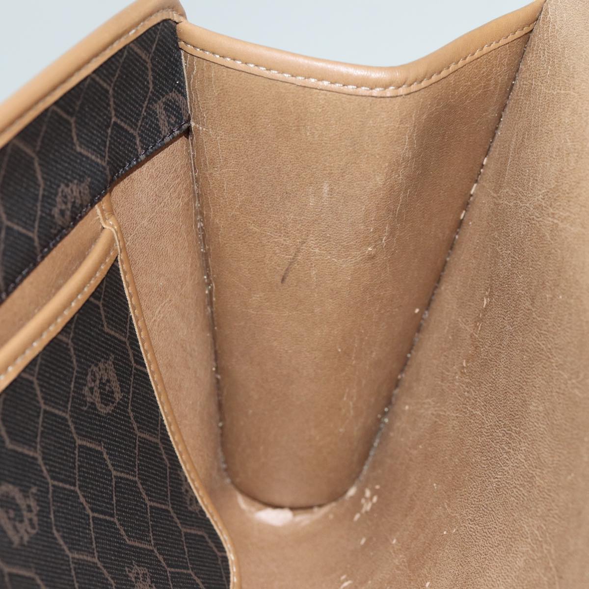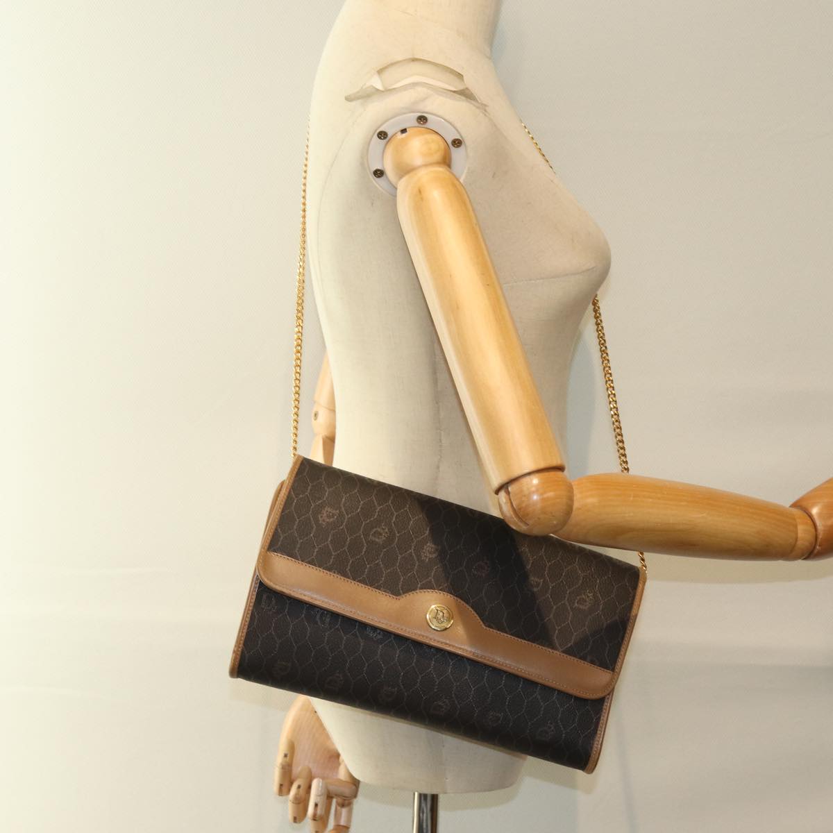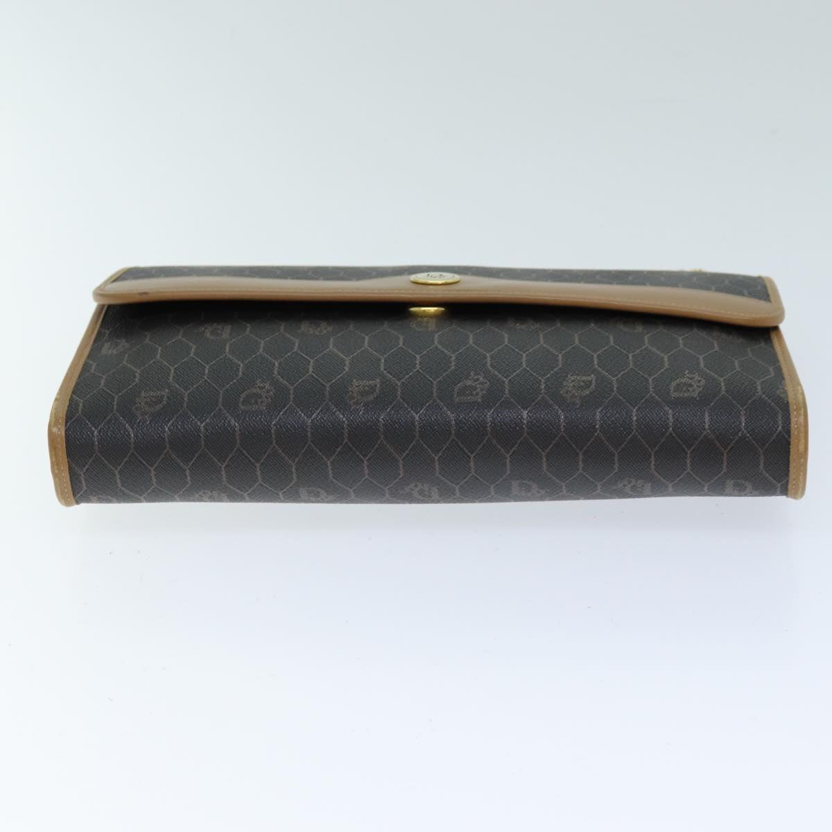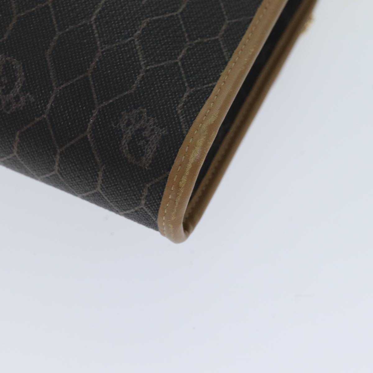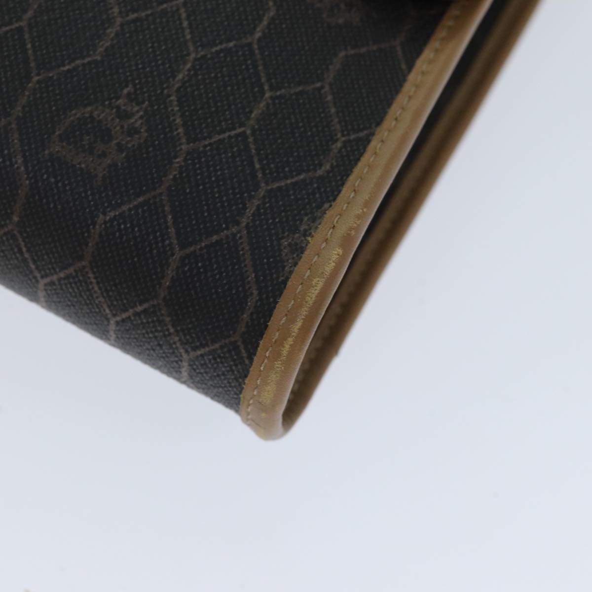 CHRISTIAN DIOR Honeycomb Canvas Chain Bag PVC Leather Black Auth bs14329