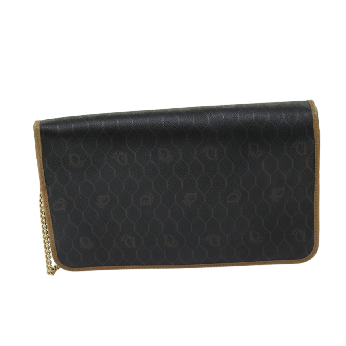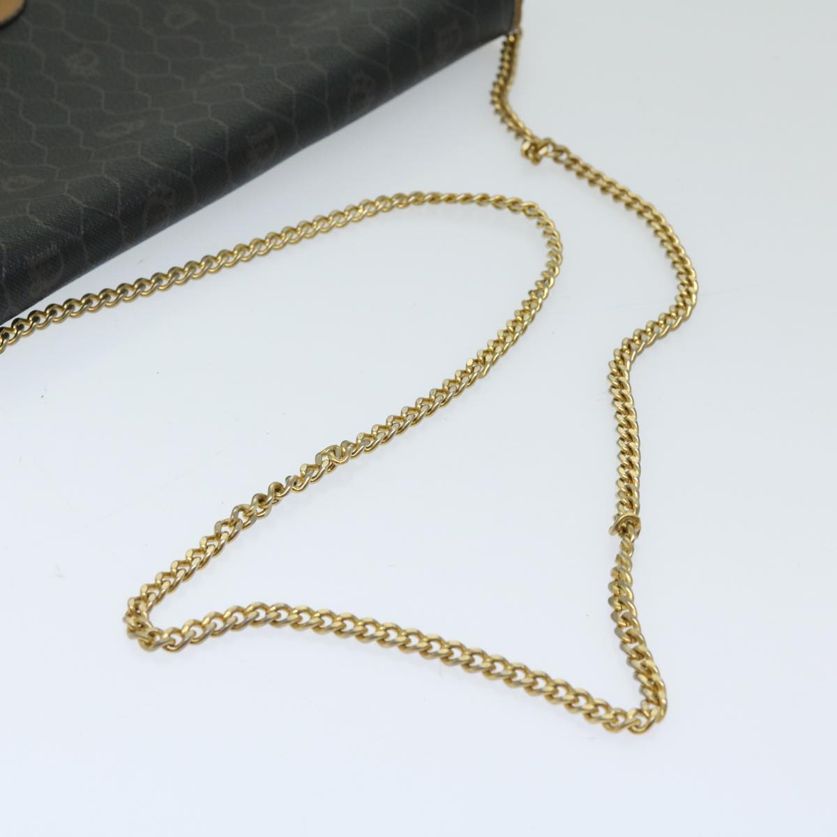 CHRISTIAN DIOR Honeycomb Canvas Chain Shoulder Bag PVC Black Auth ti1598