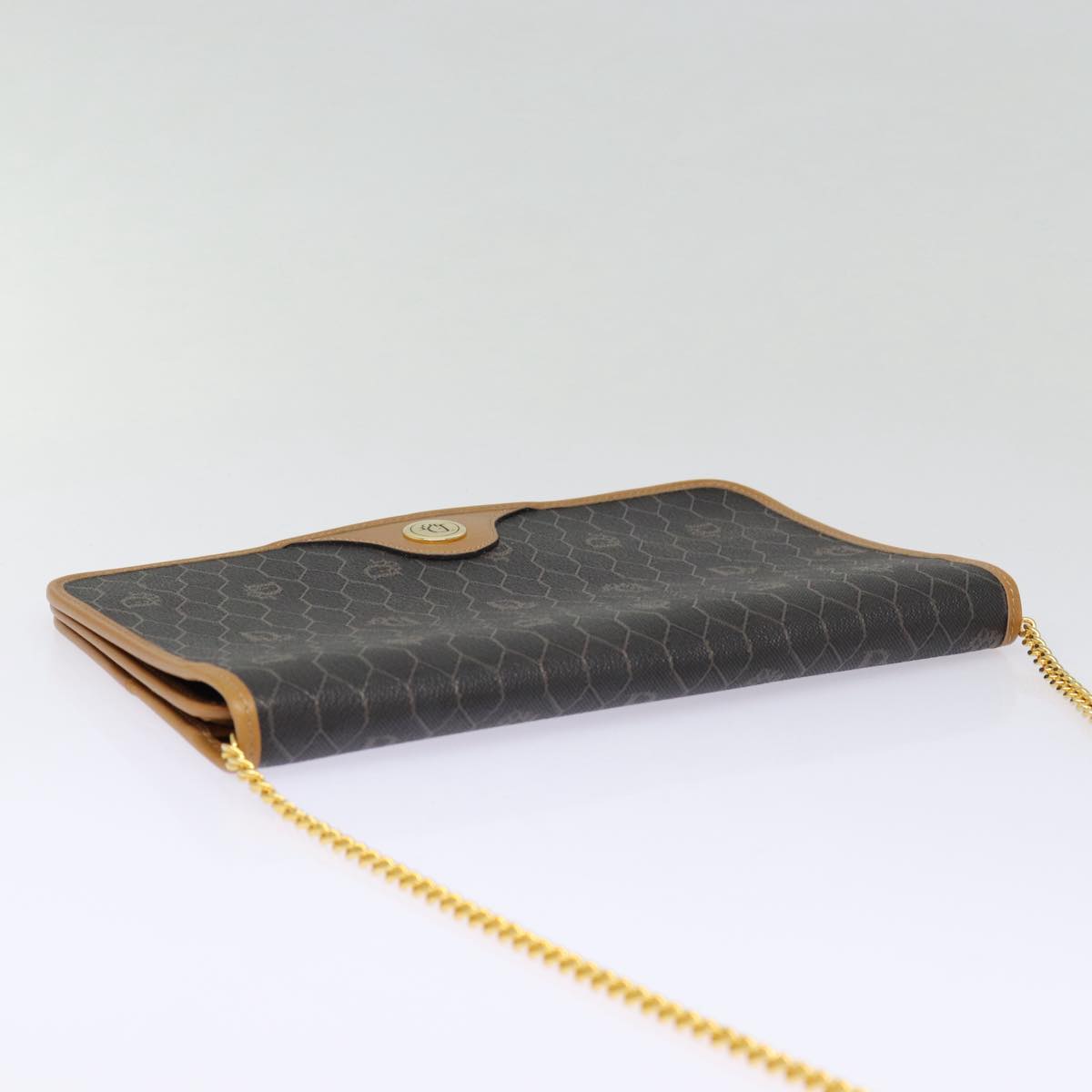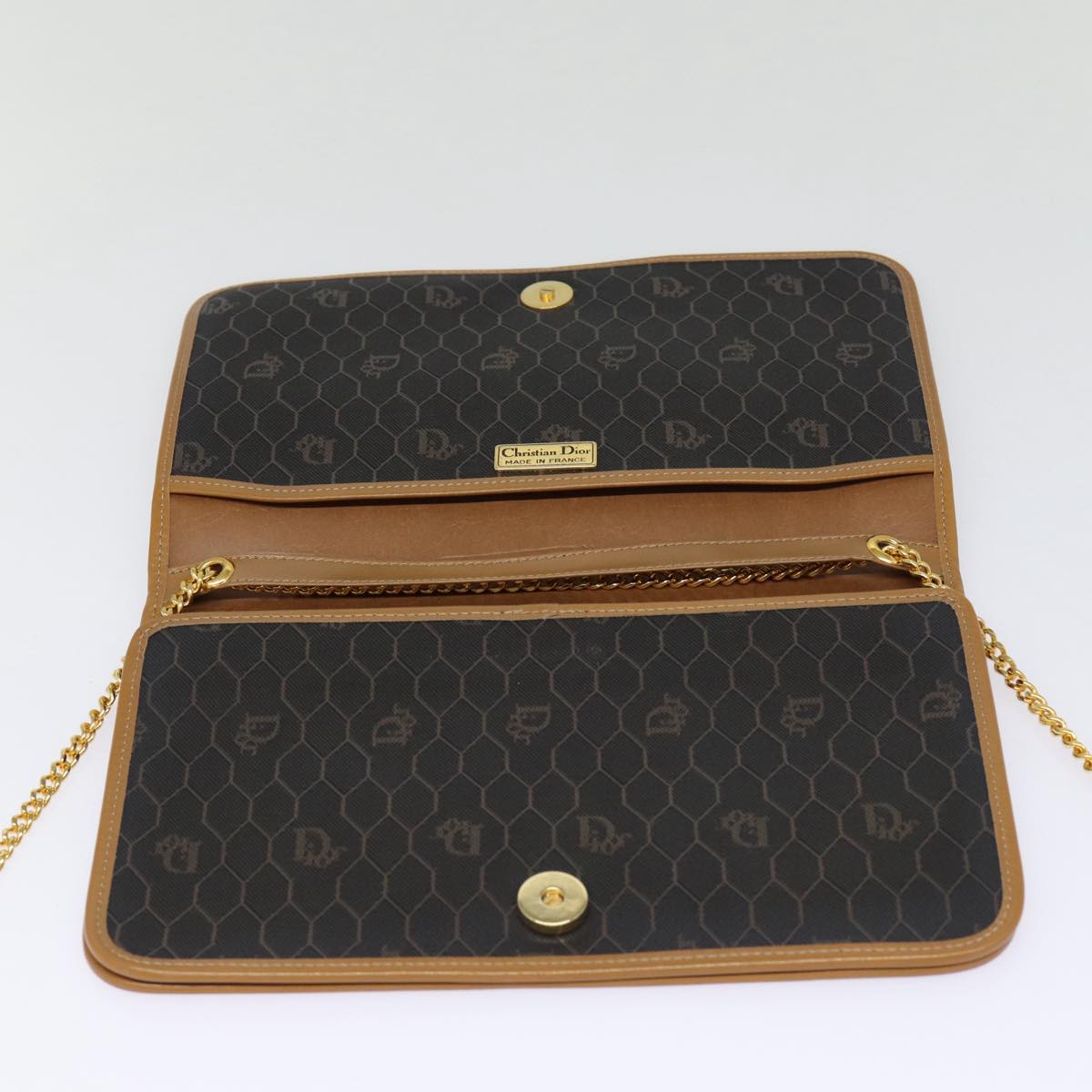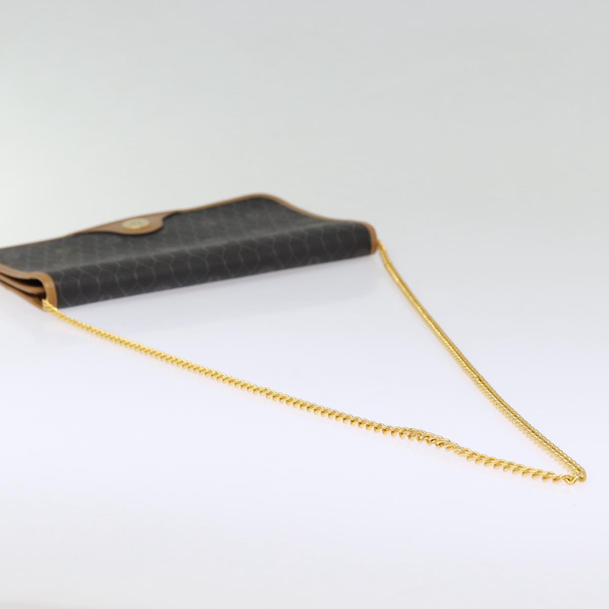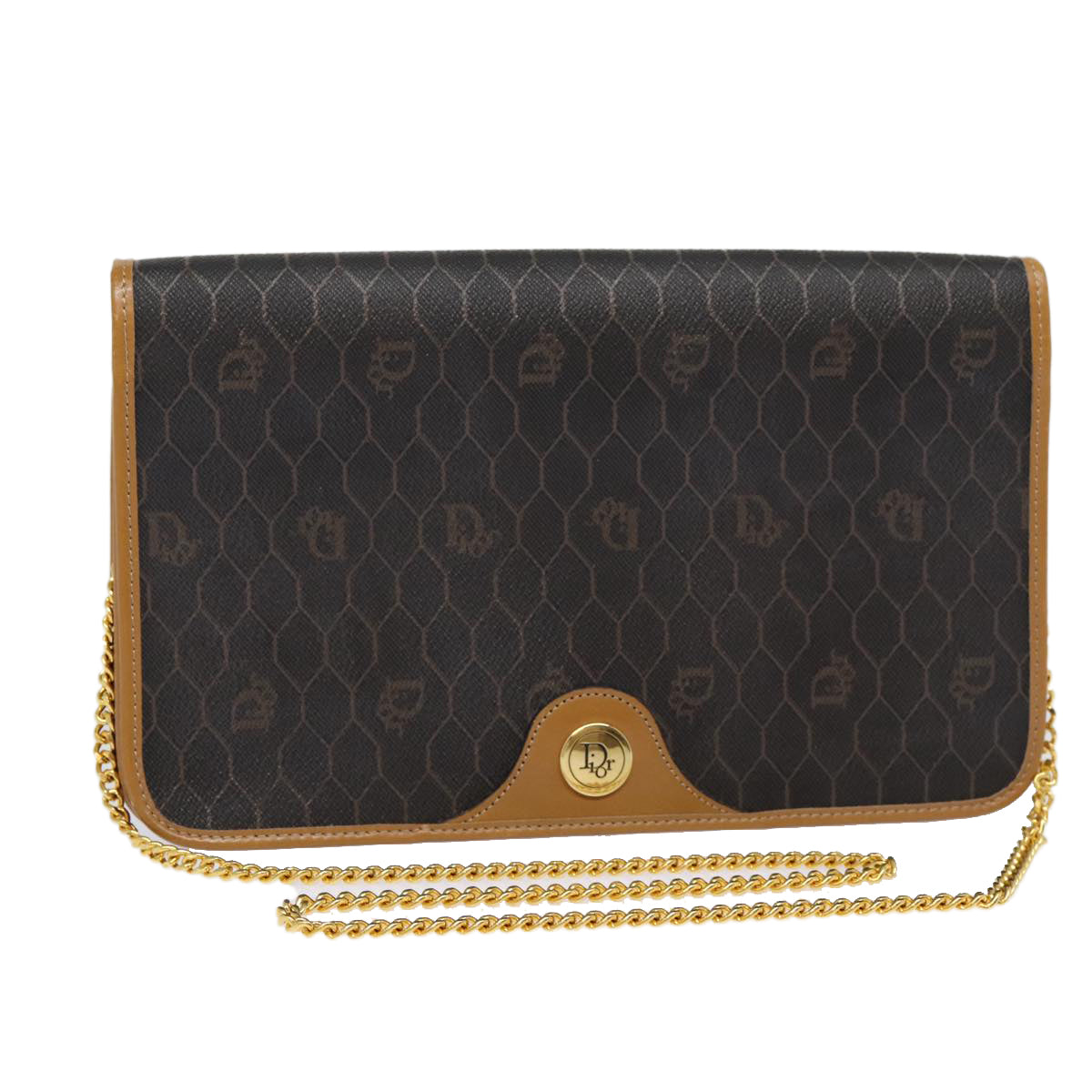 CHRISTIAN DIOR Honeycomb Canvas Chain Shoulder Bag PVC Black Gold Auth 88668