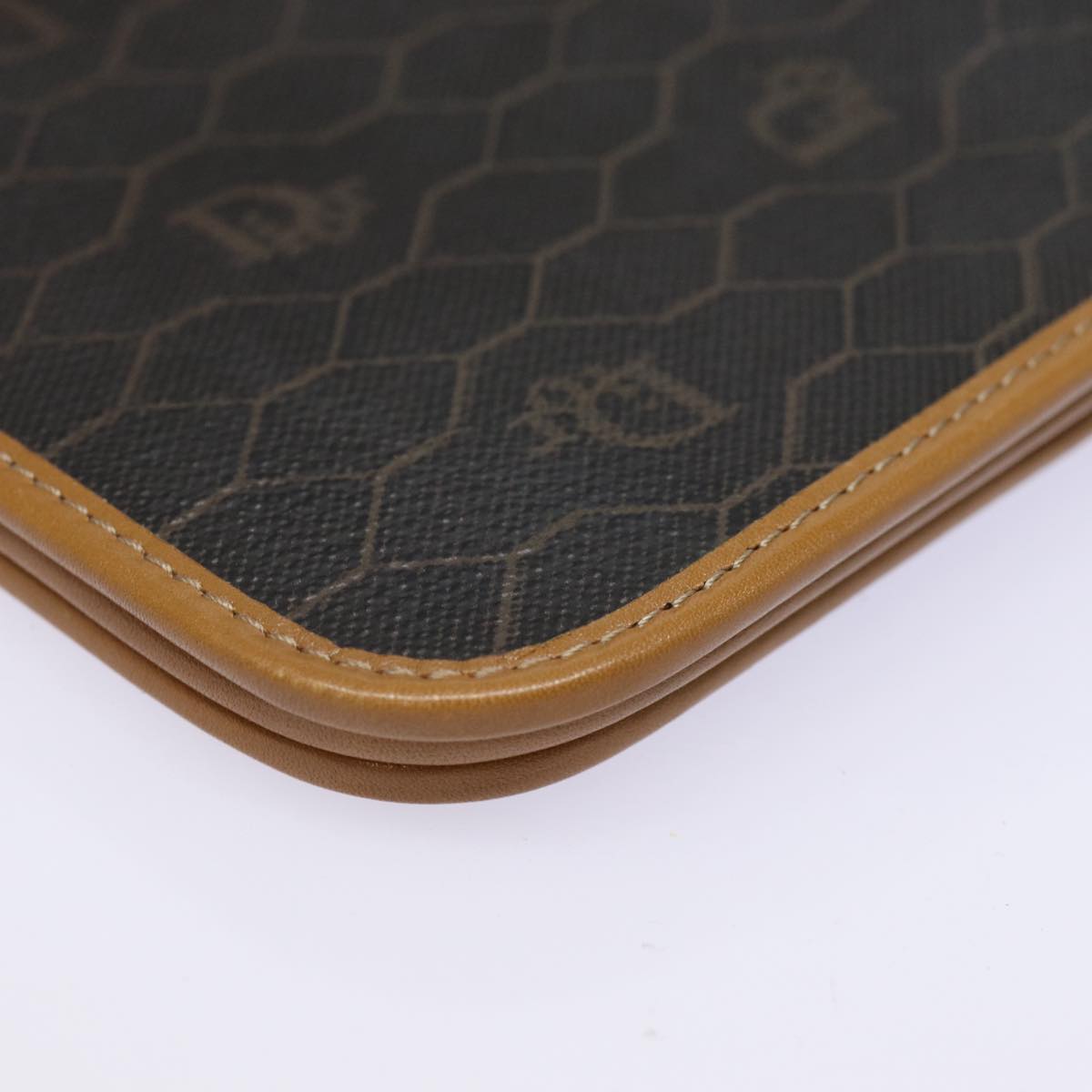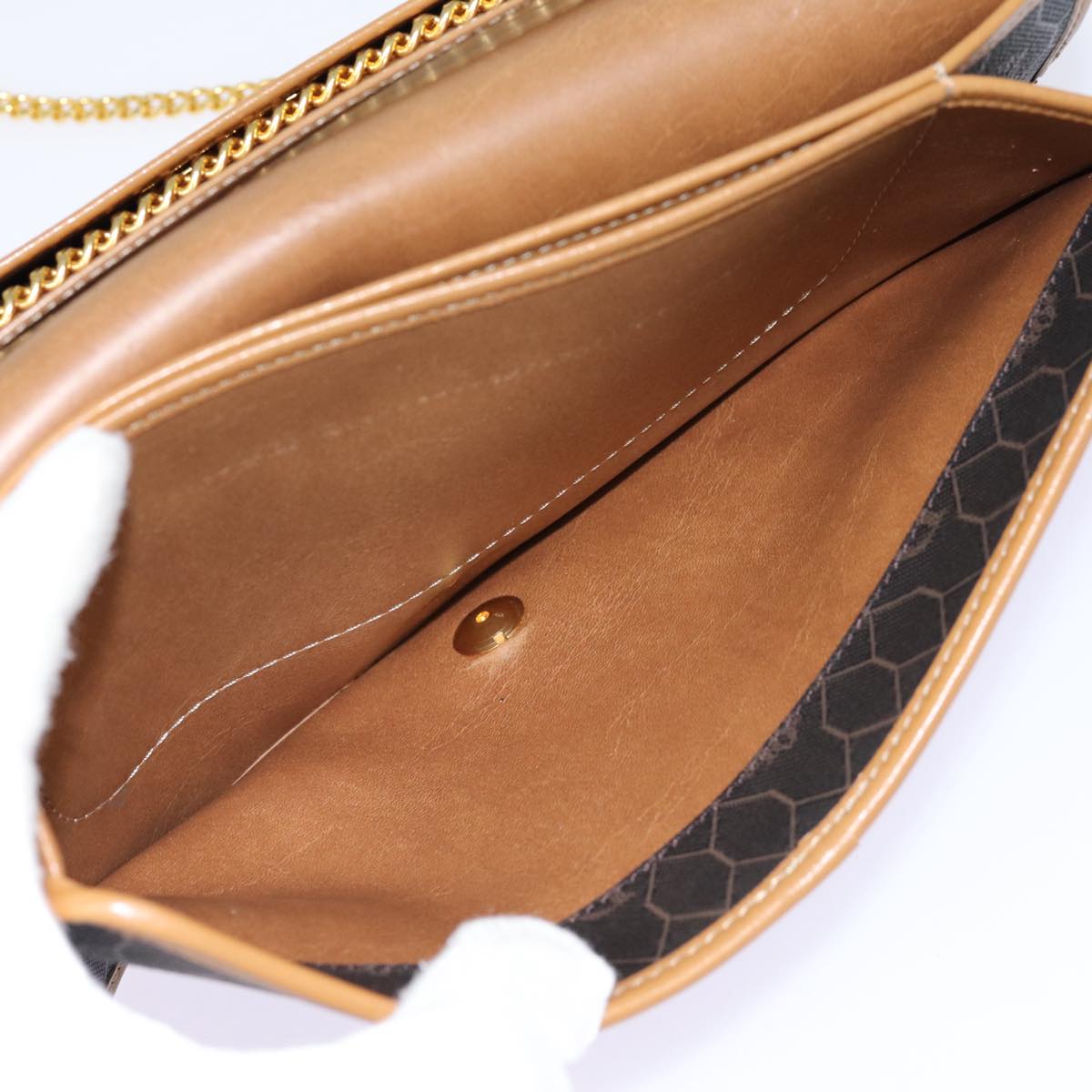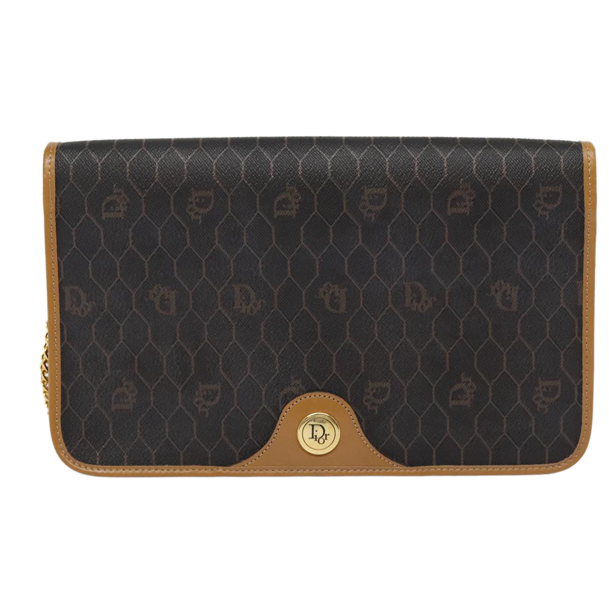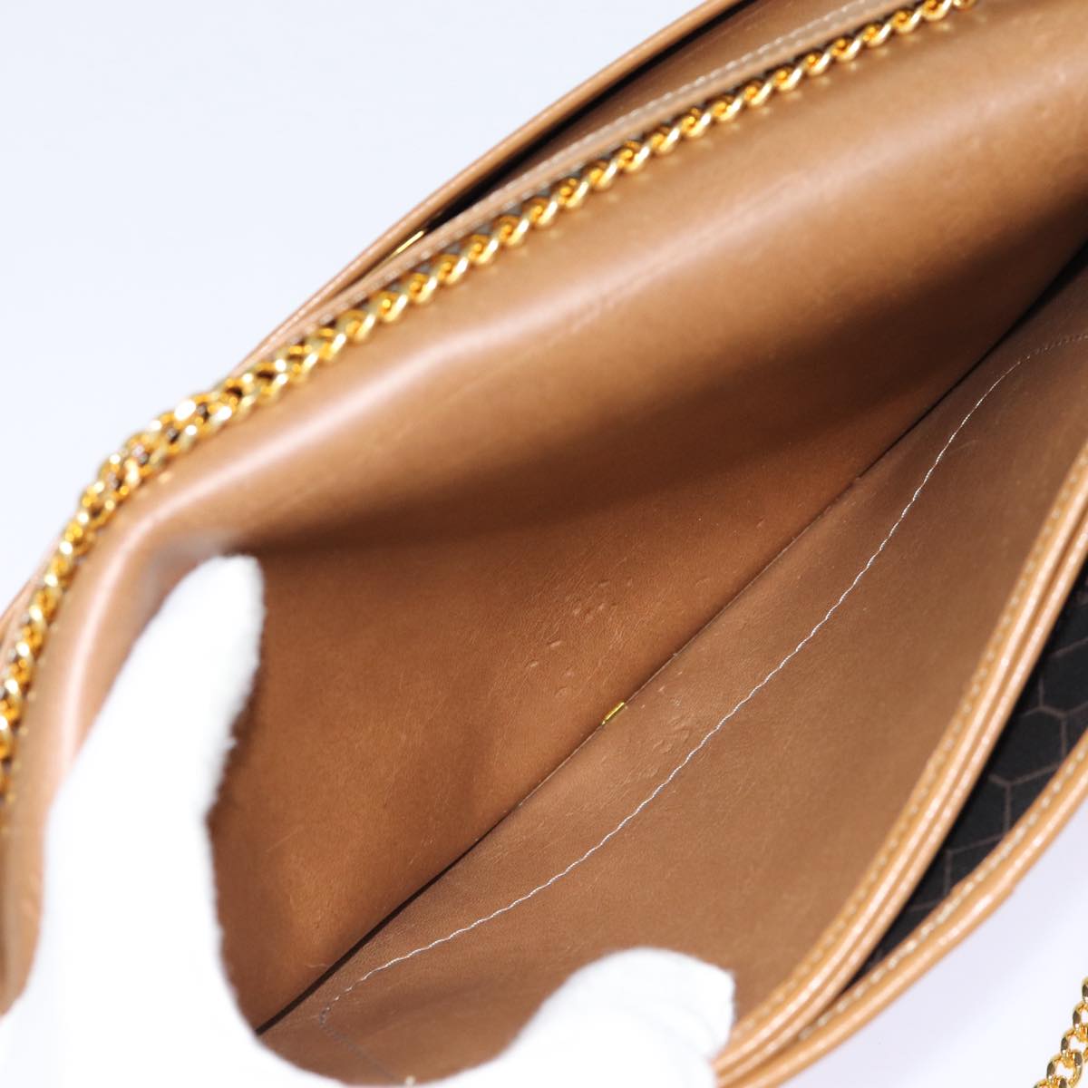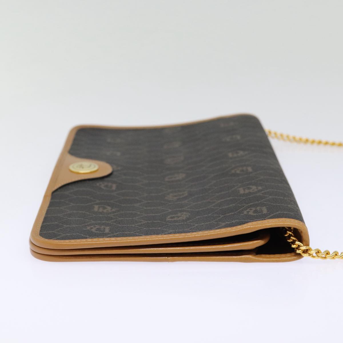 CHRISTIAN DIOR Honeycomb Canvas Chain Shoulder Bag PVC Black Gold Auth 88668
