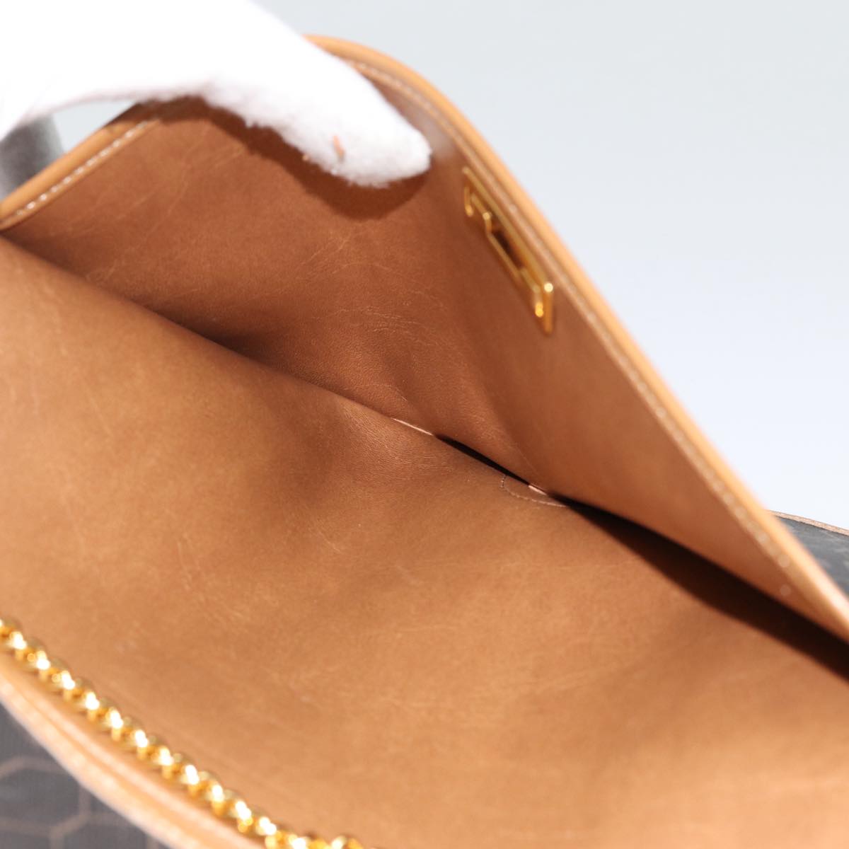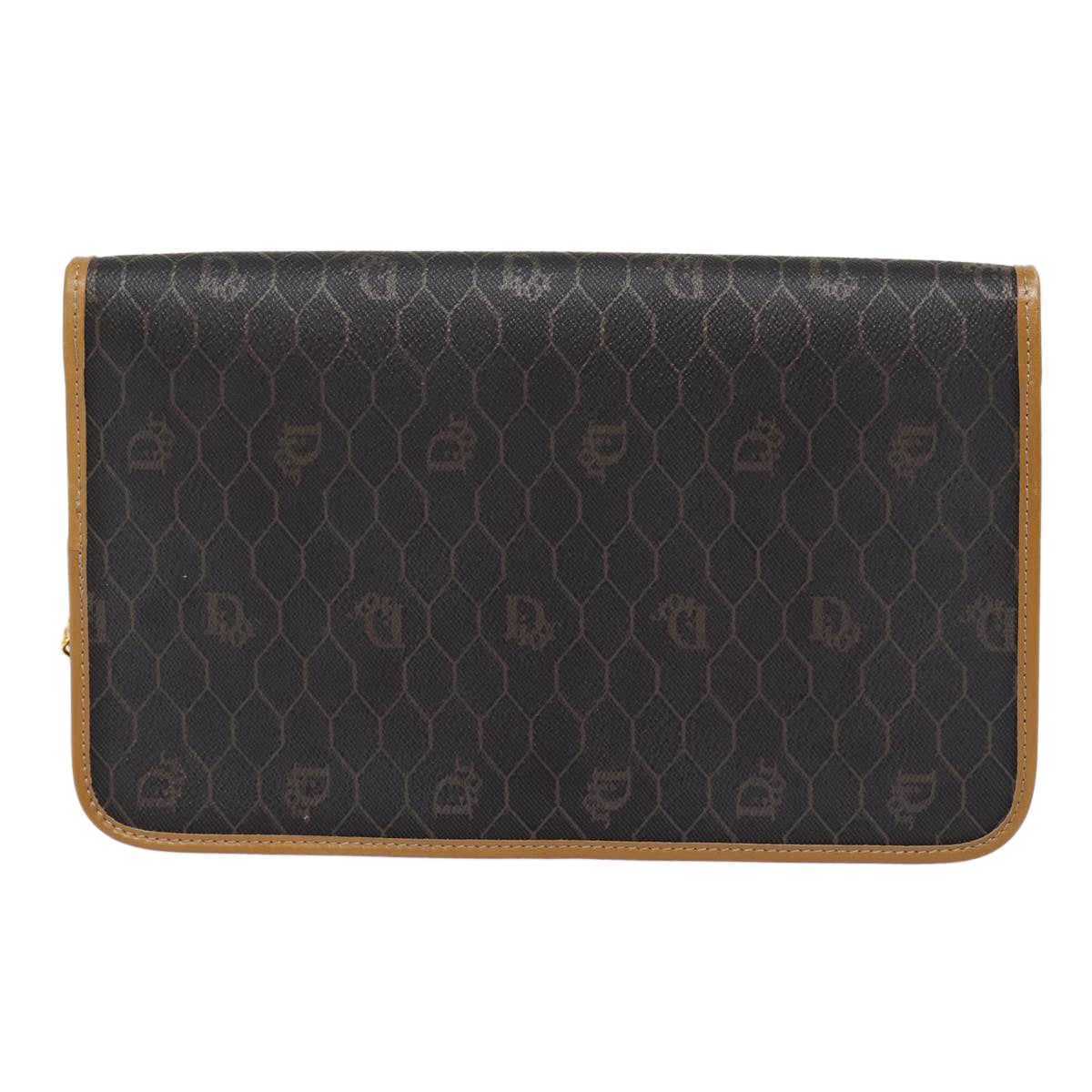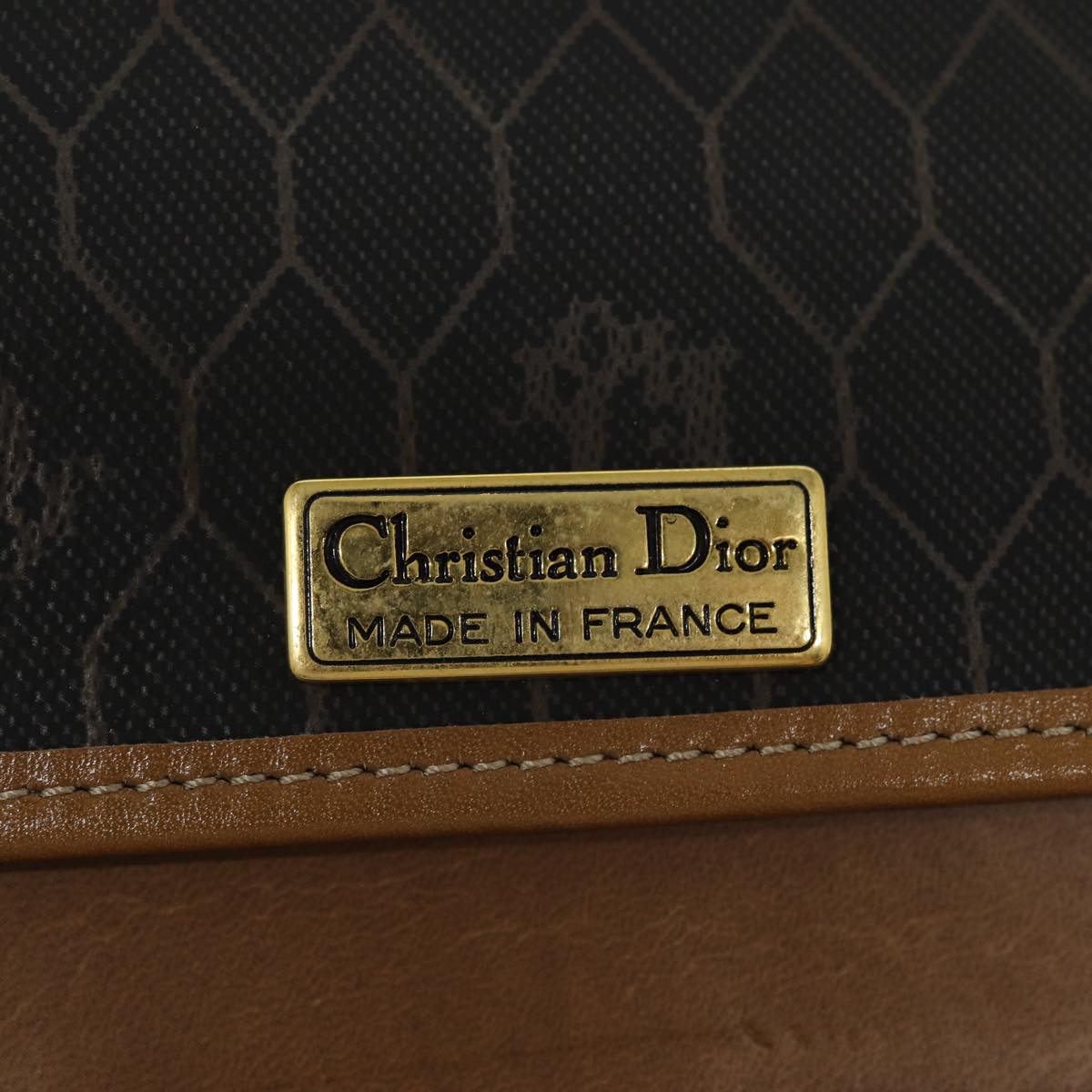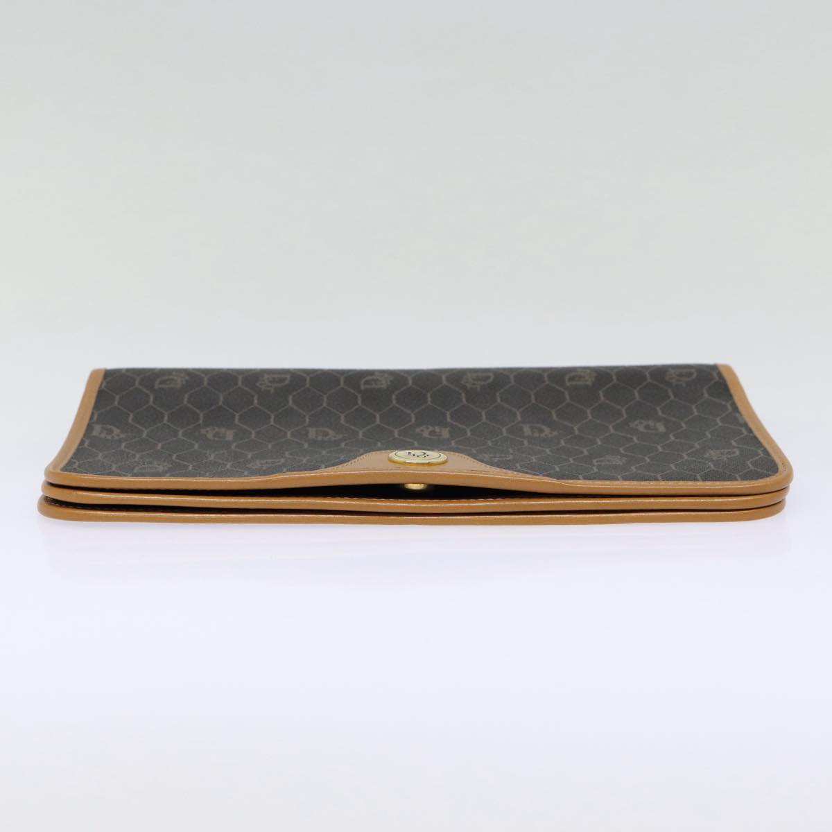 CHRISTIAN DIOR Honeycomb Canvas Chain Shoulder Bag PVC Black Gold Auth 88668
