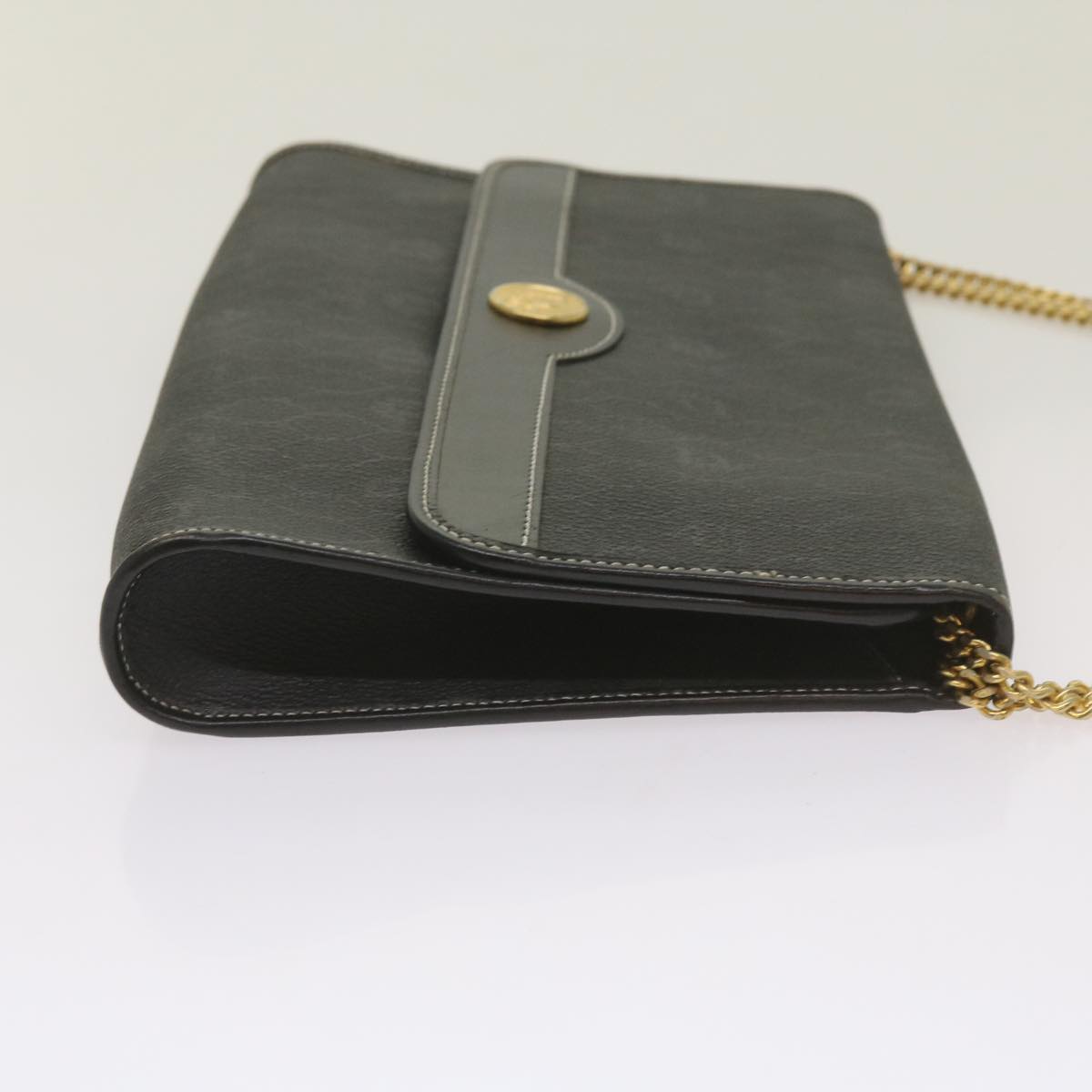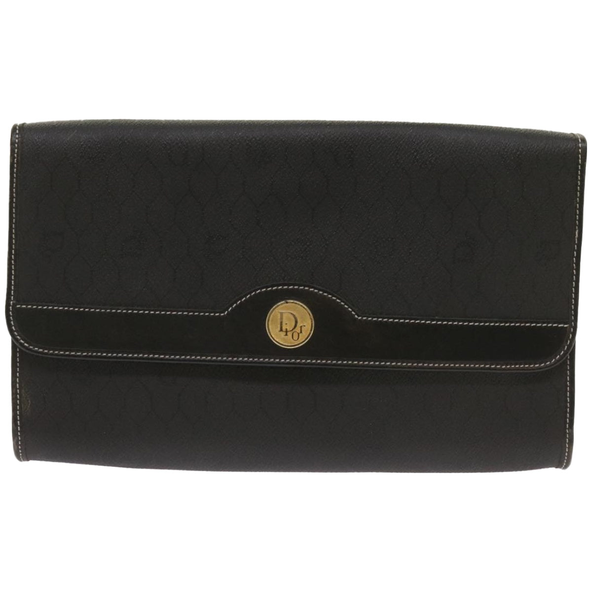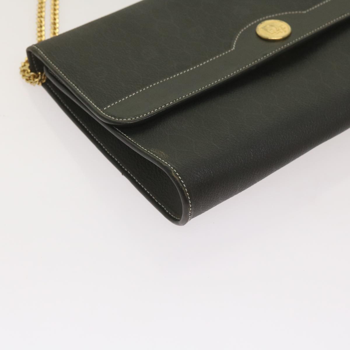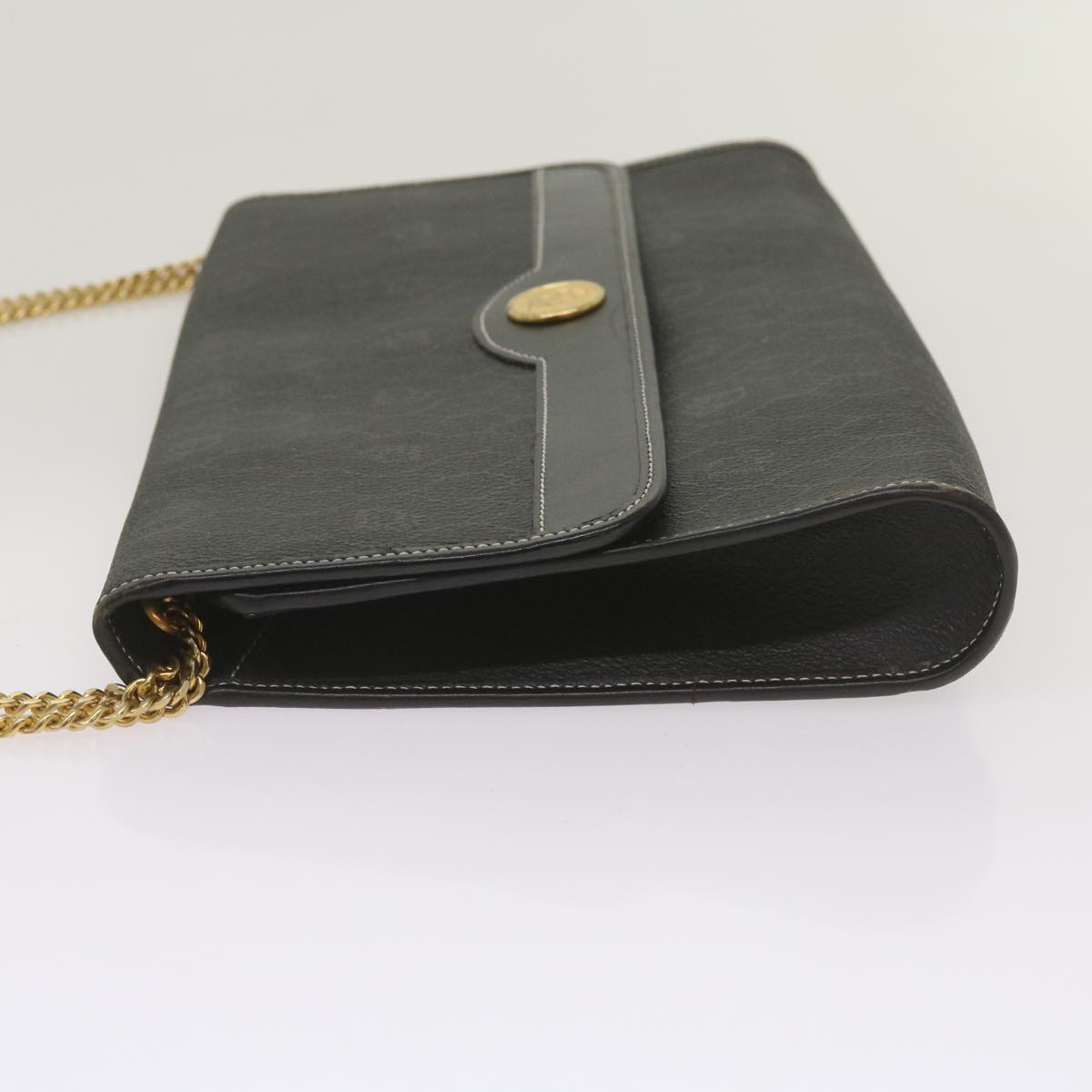 CHRISTIAN DIOR Honeycomb Canvas Chain Shoulder Bag PVC Leather Black Auth ep3566