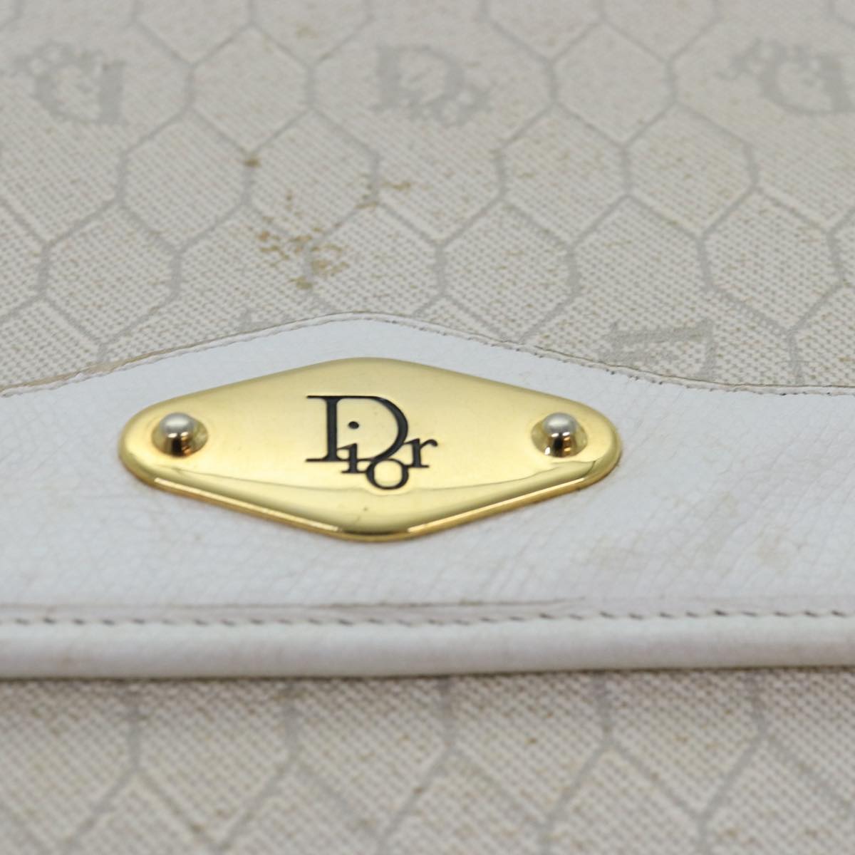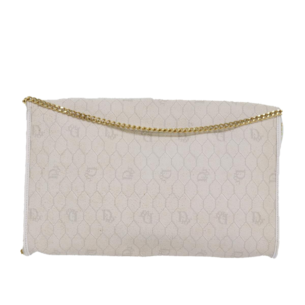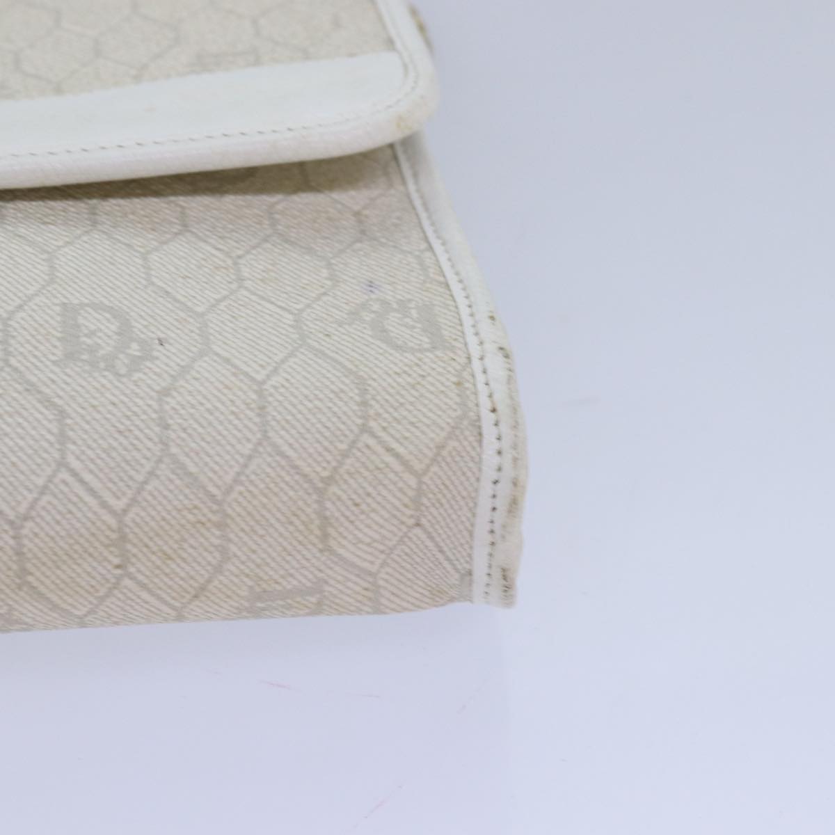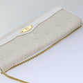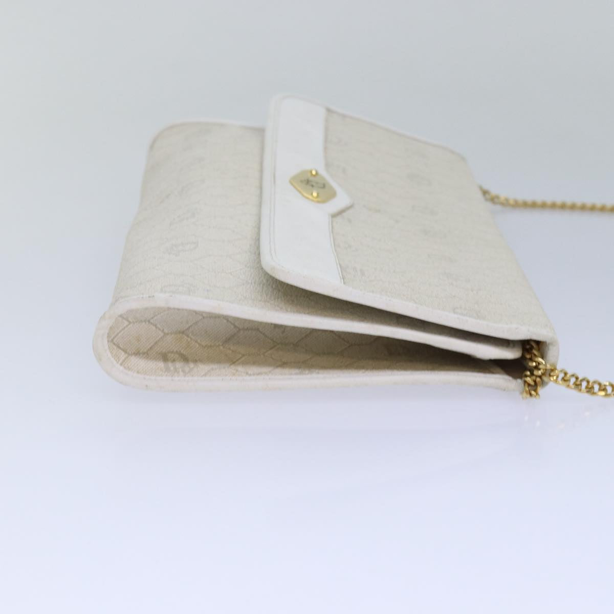 CHRISTIAN DIOR Honeycomb Canvas Chain Shoulder Bag PVC Leather White Auth 81608