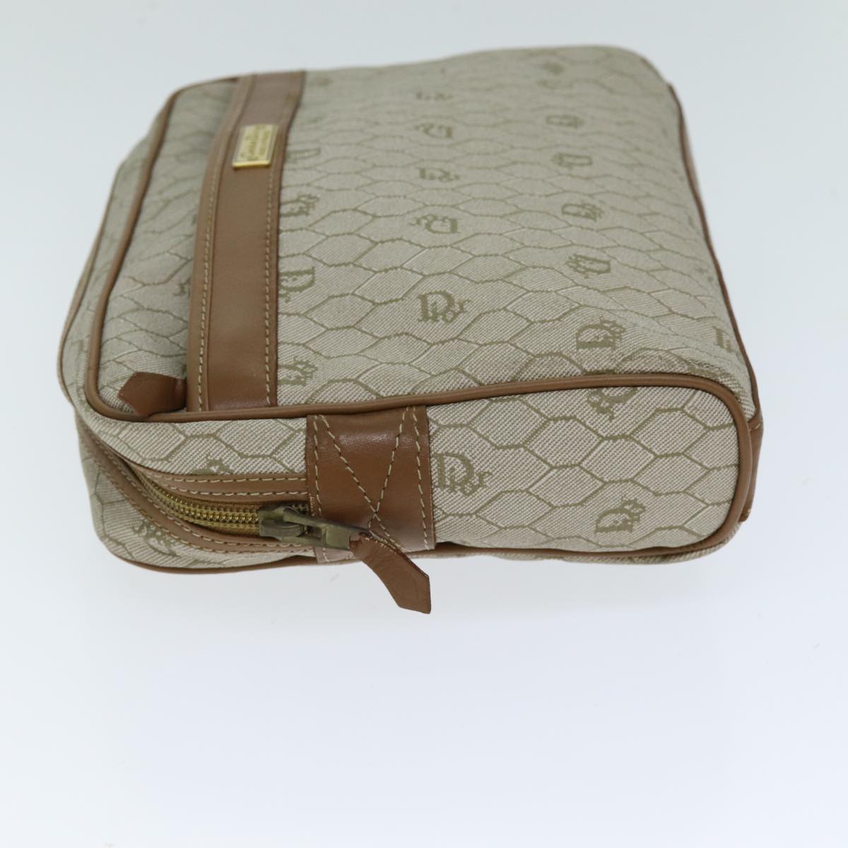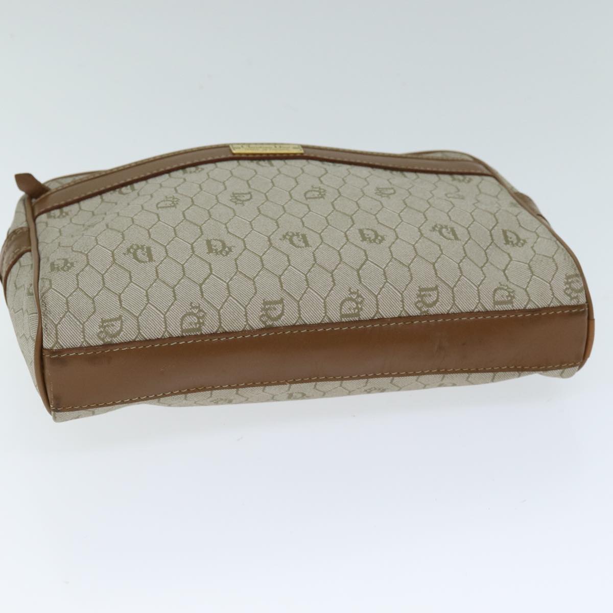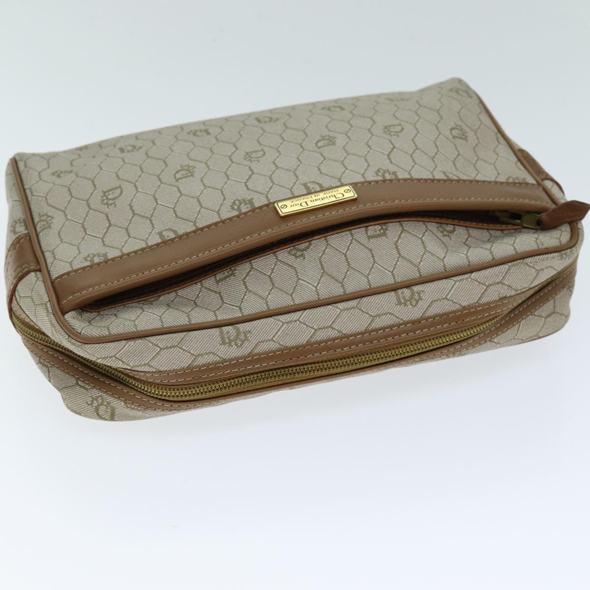 CHRISTIAN DIOR Honeycomb Canvas Clutch Bag PVC Leather Beige Auth bs14478