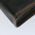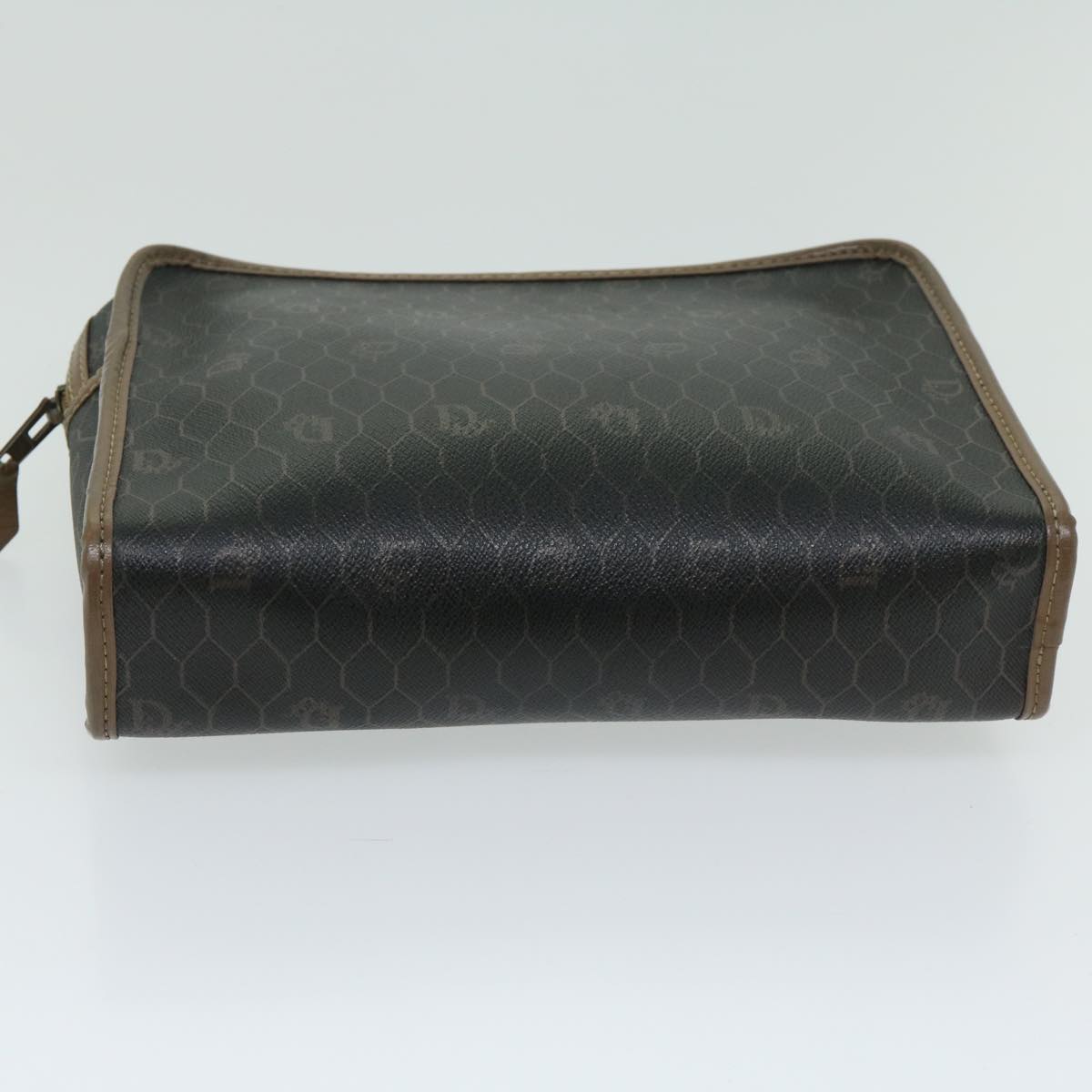 CHRISTIAN DIOR Honeycomb Canvas Clutch Bag PVC Leather Black Auth fm3258