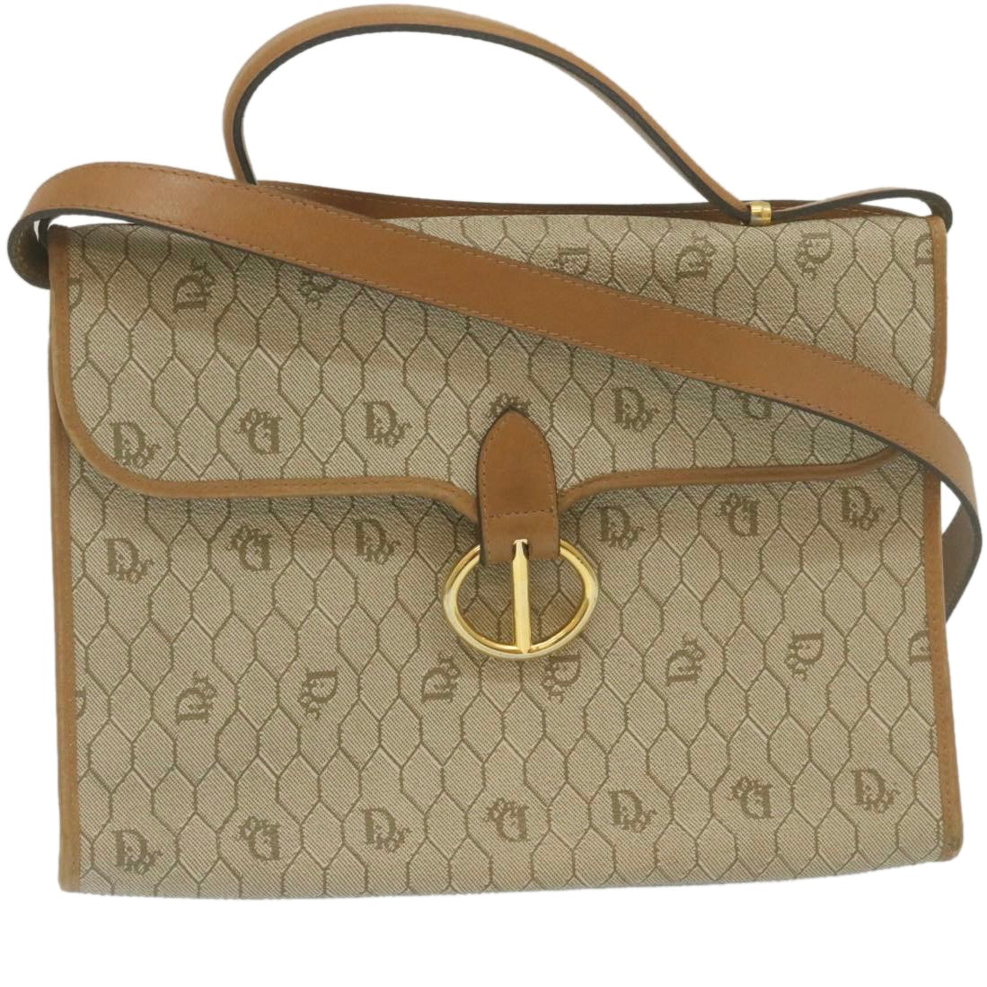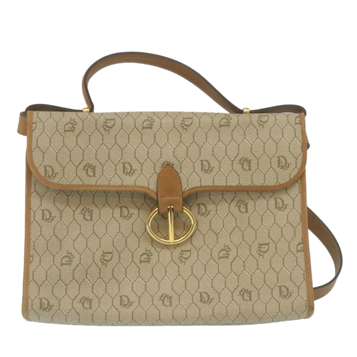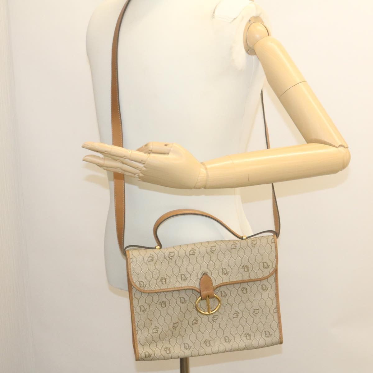CHRISTIAN DIOR Honeycomb Canvas Hand Bag PVC Leather Beige Auth 29371
