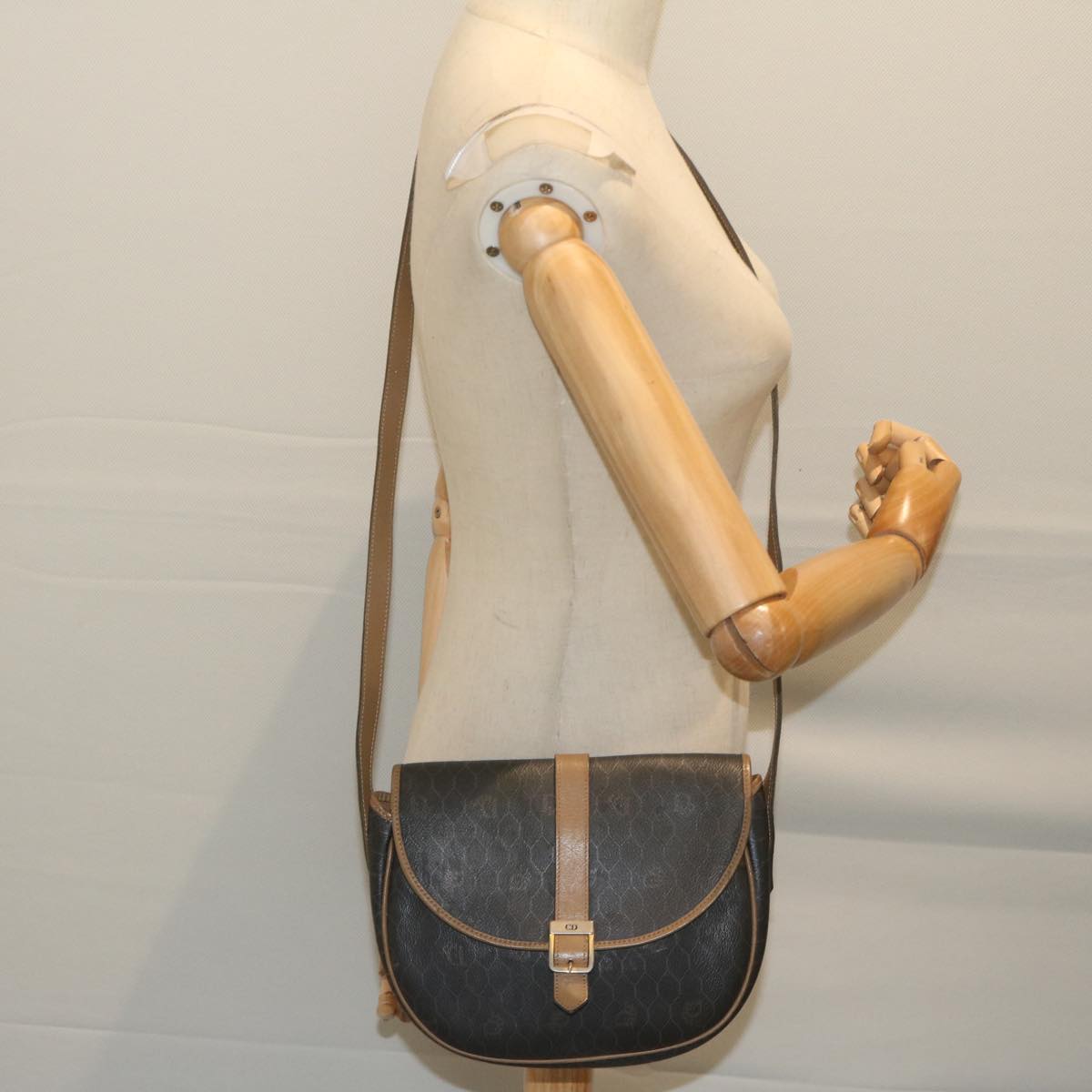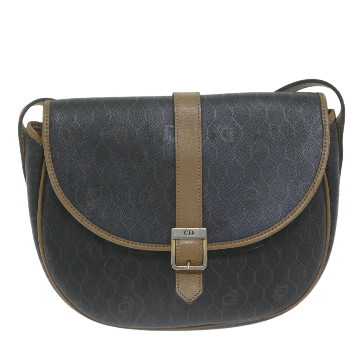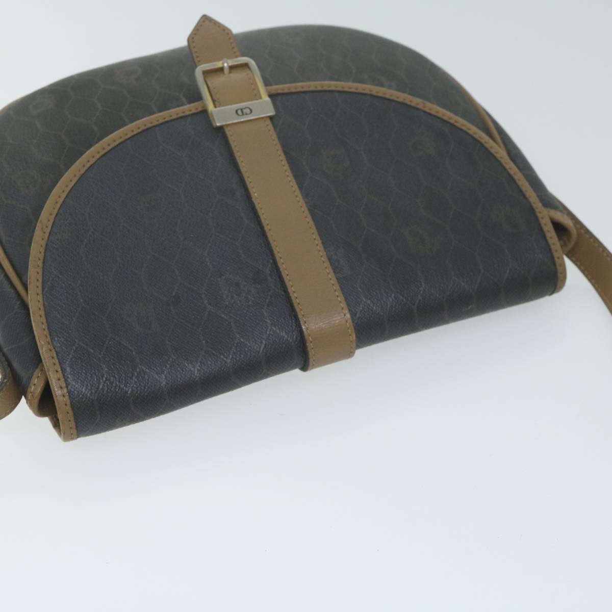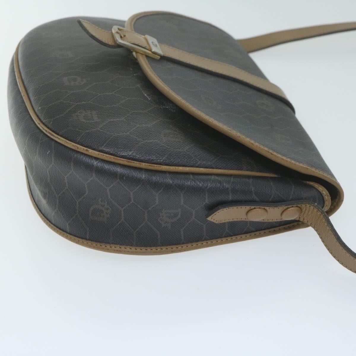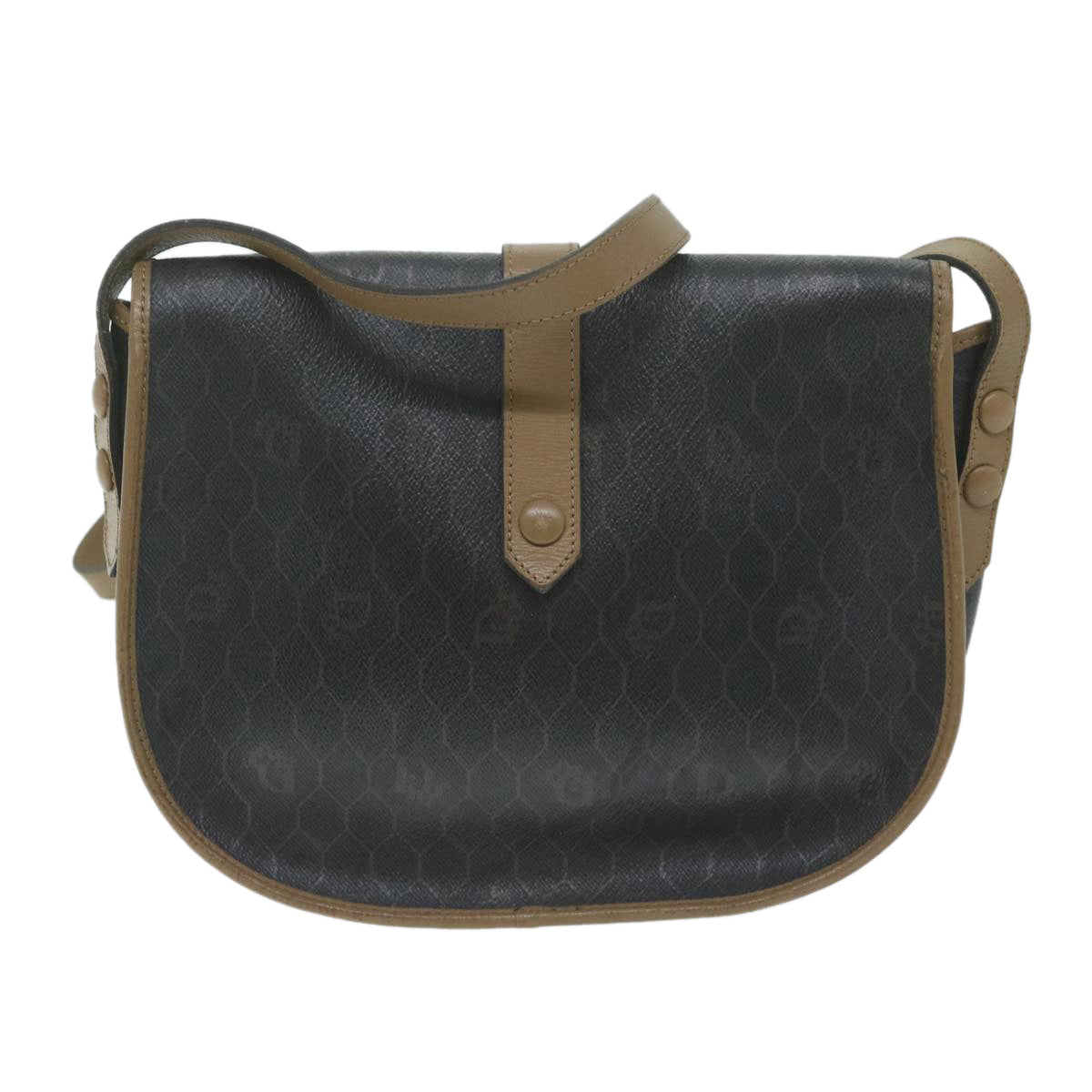 CHRISTIAN DIOR Honeycomb Canvas Shoulder Bag PVC Black Auth bs11484