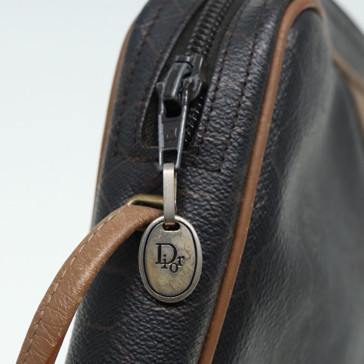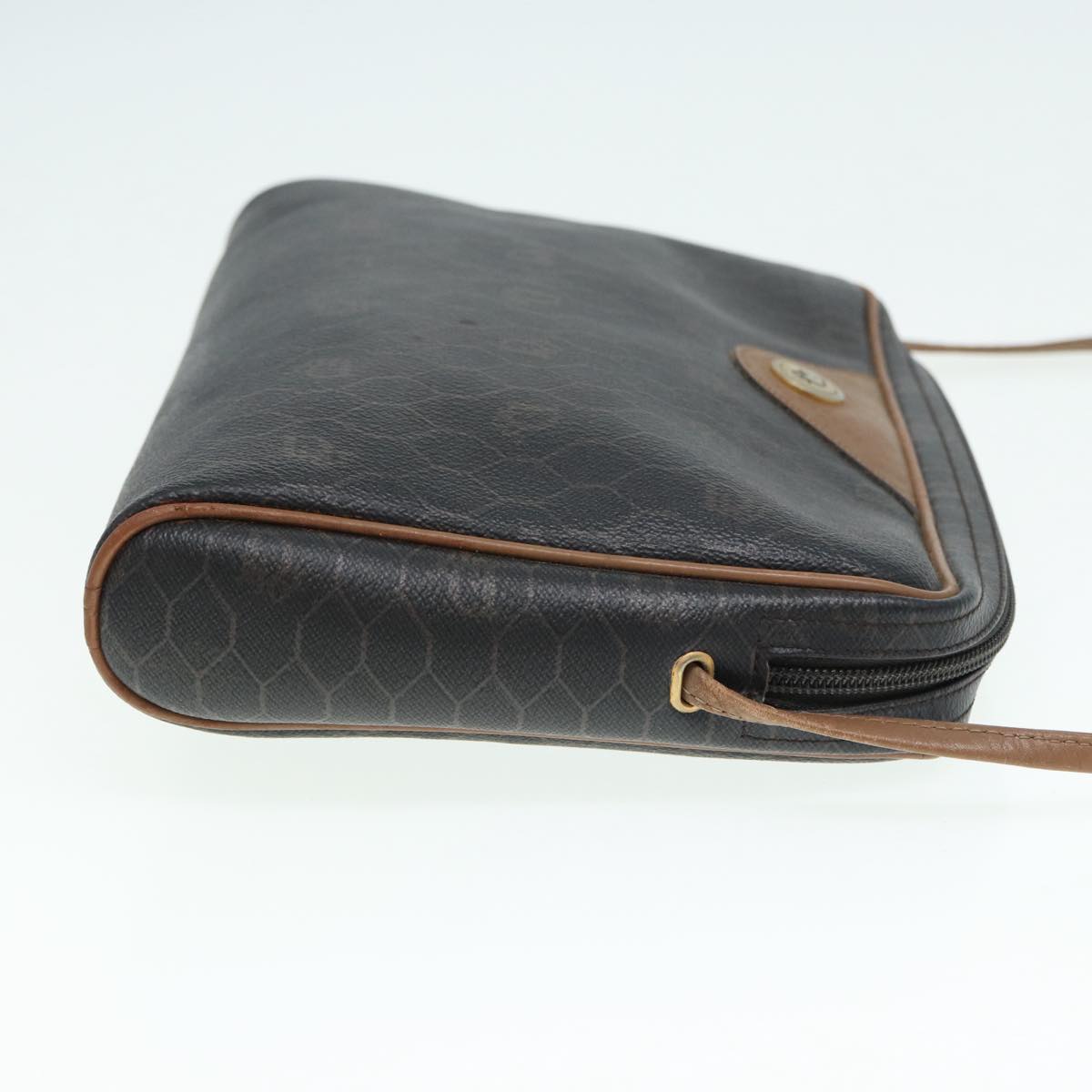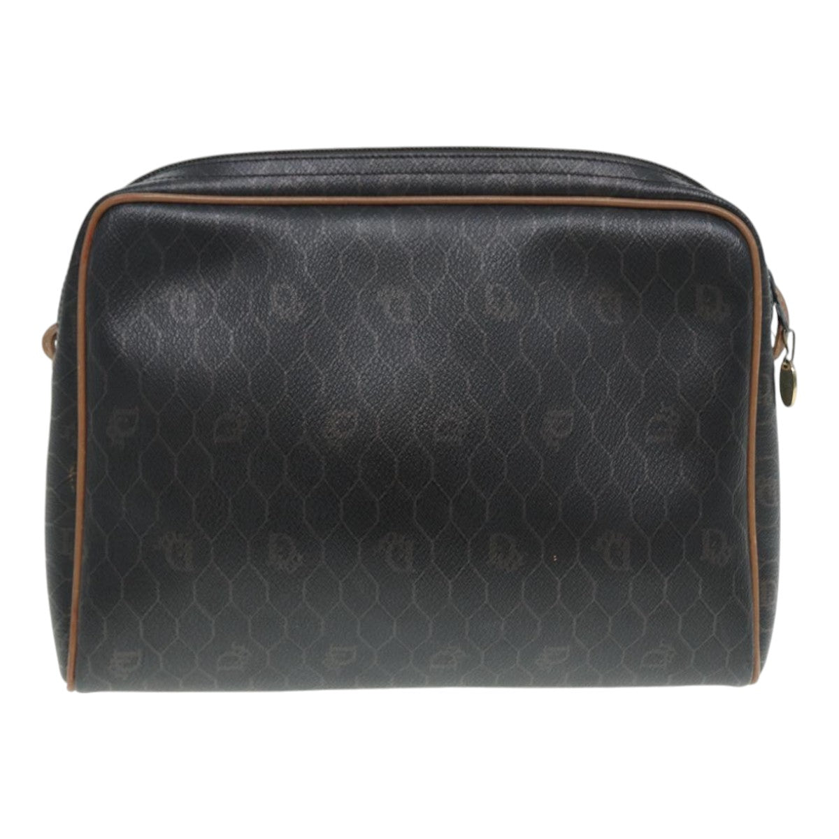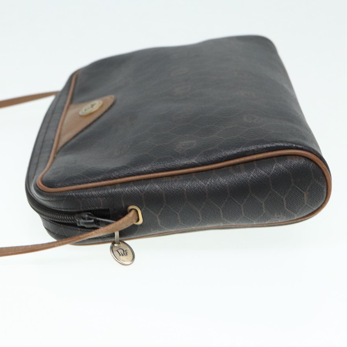 CHRISTIAN DIOR Honeycomb Canvas Shoulder Bag PVC Black Brown gold Auth bs16916
