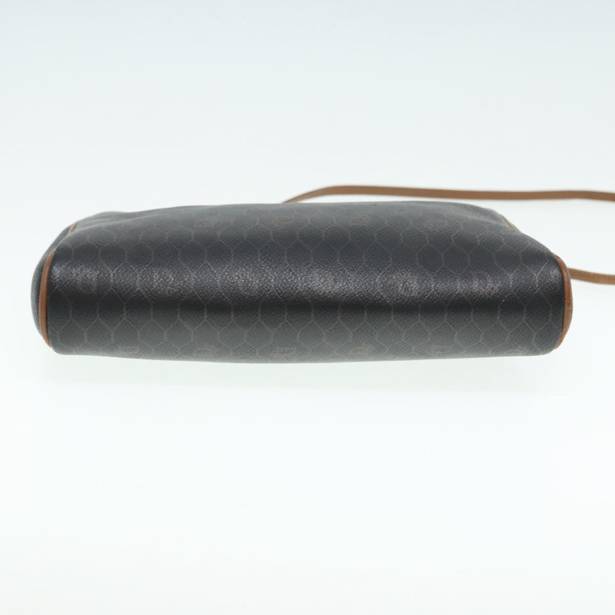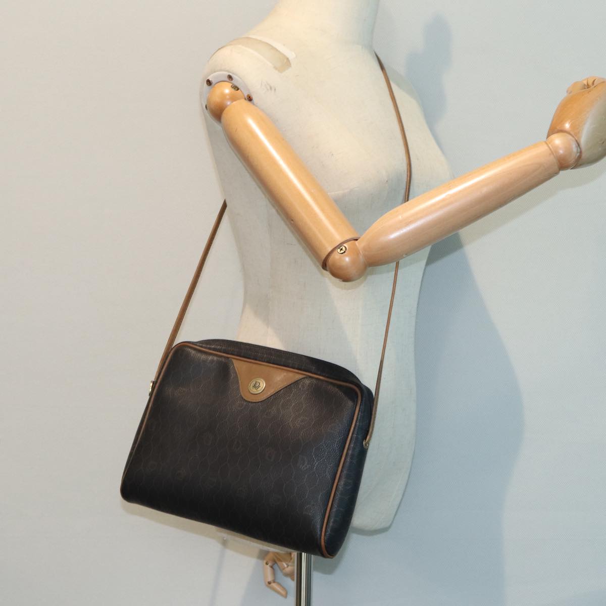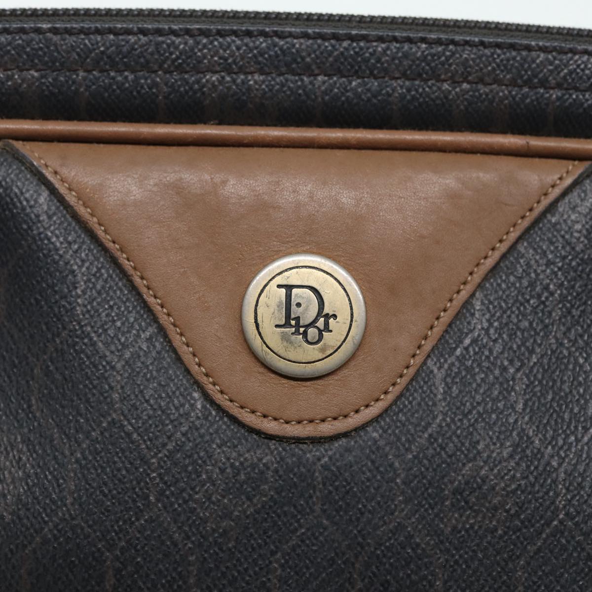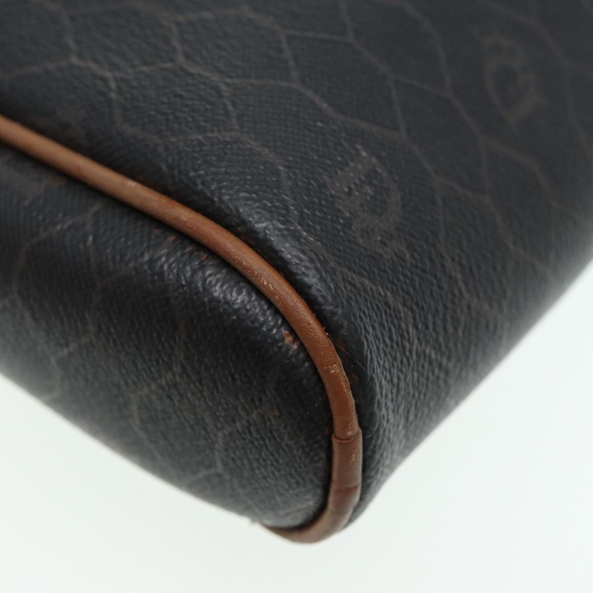 CHRISTIAN DIOR Honeycomb Canvas Shoulder Bag PVC Black Brown gold Auth bs16916