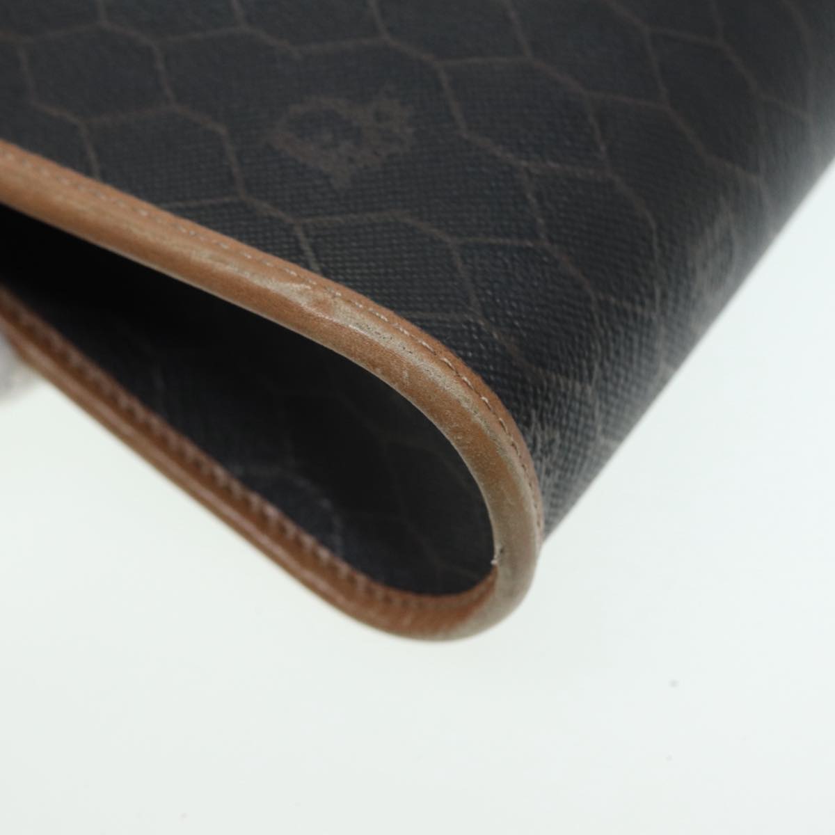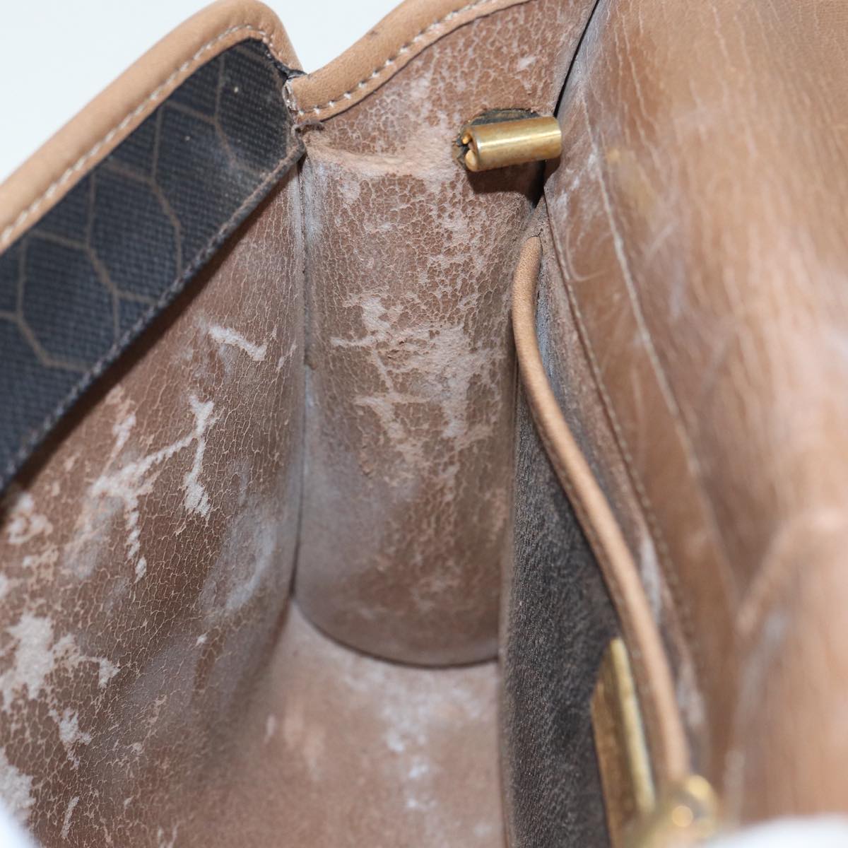 CHRISTIAN DIOR Honeycomb Canvas Shoulder Bag PVC Black Brown gold Auth bs16995