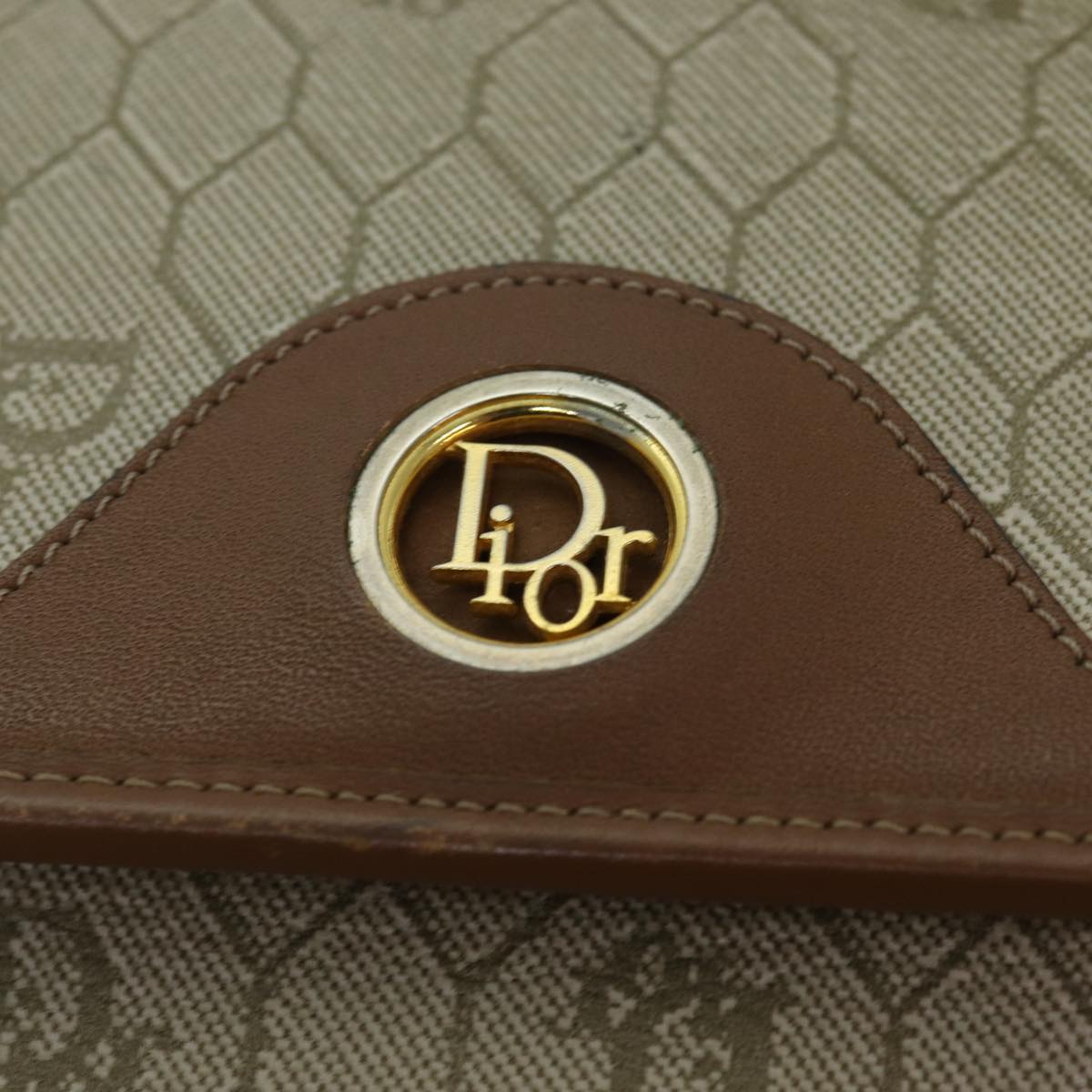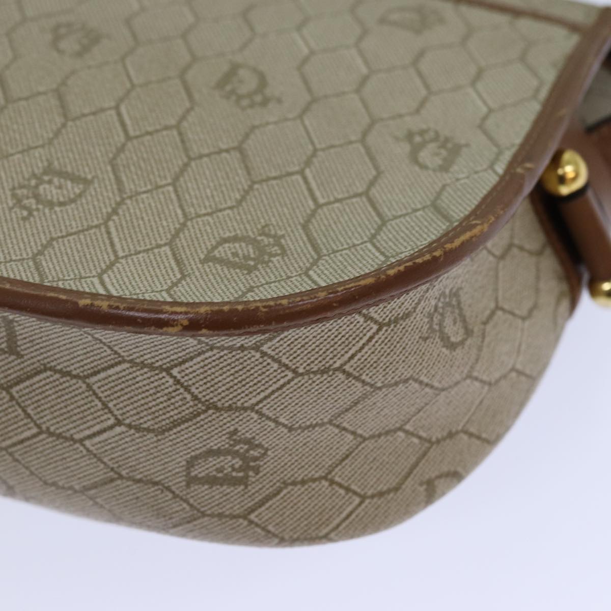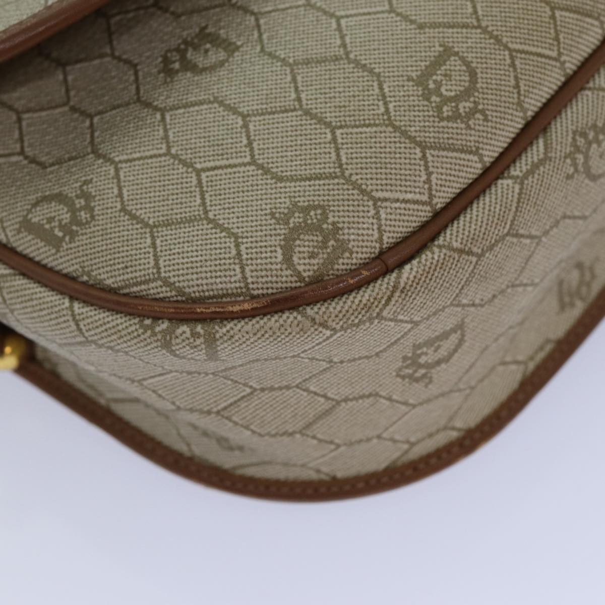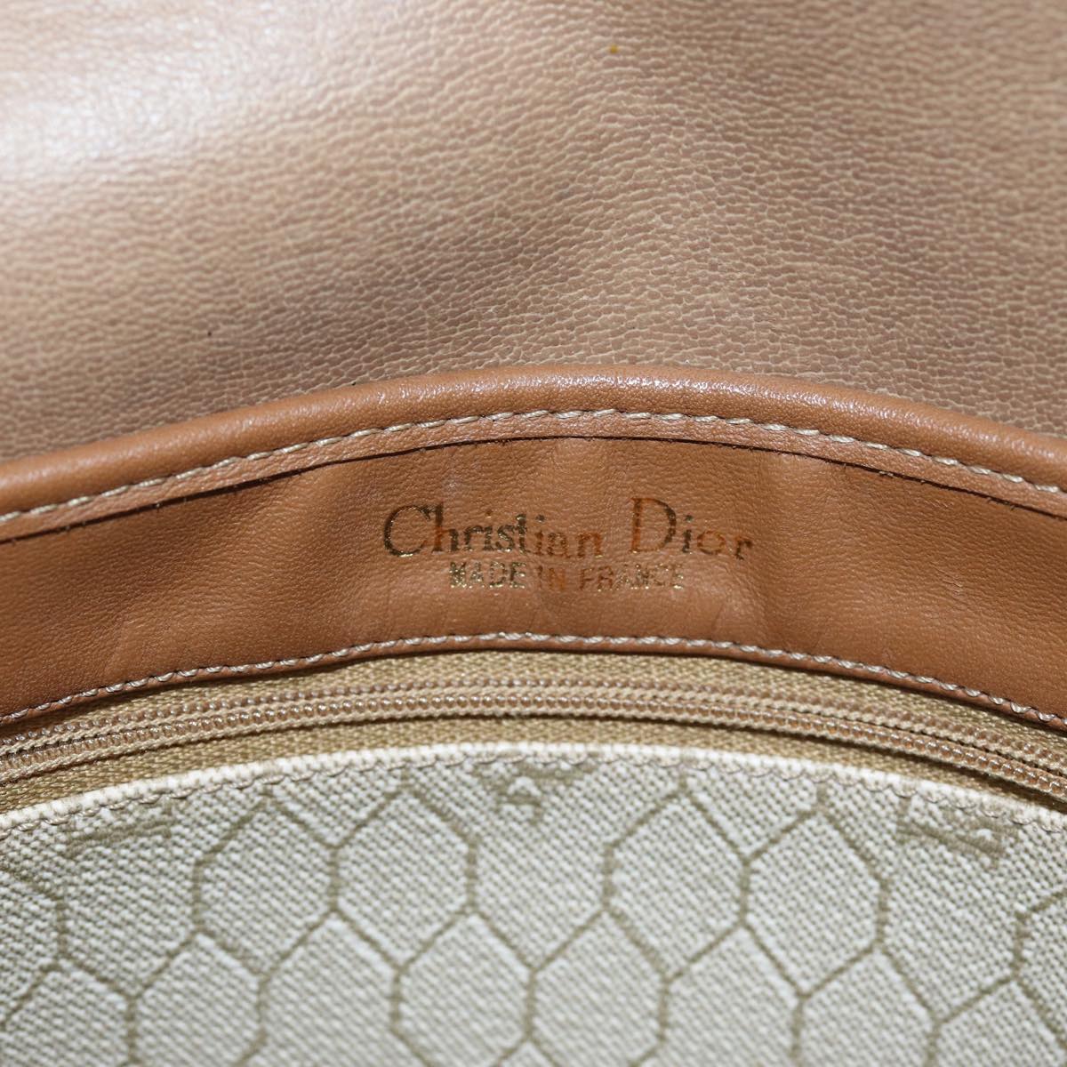 CHRISTIAN DIOR Honeycomb Canvas Shoulder Bag PVC Leather Beige Auth 77935