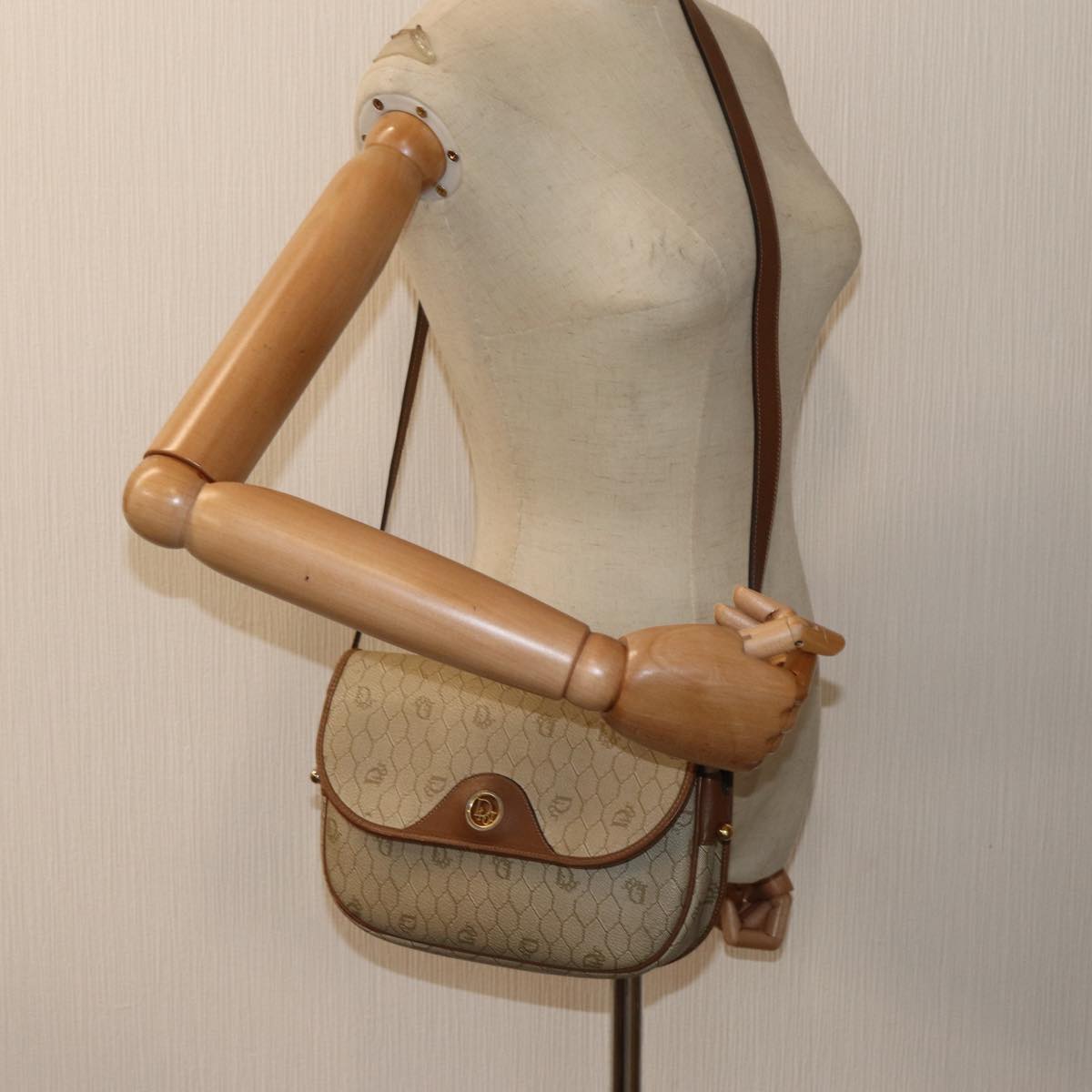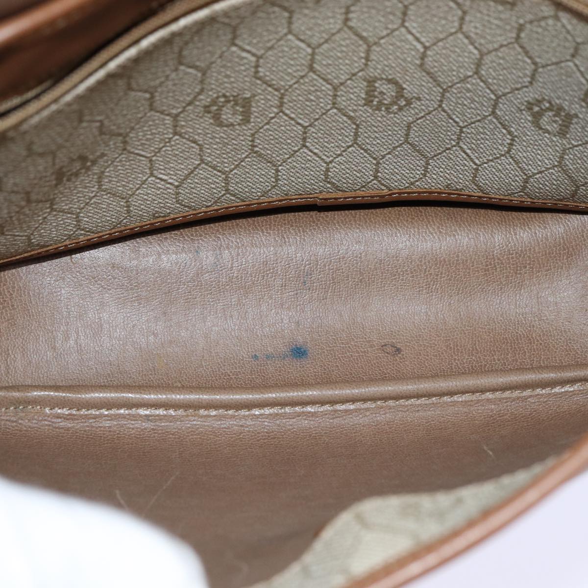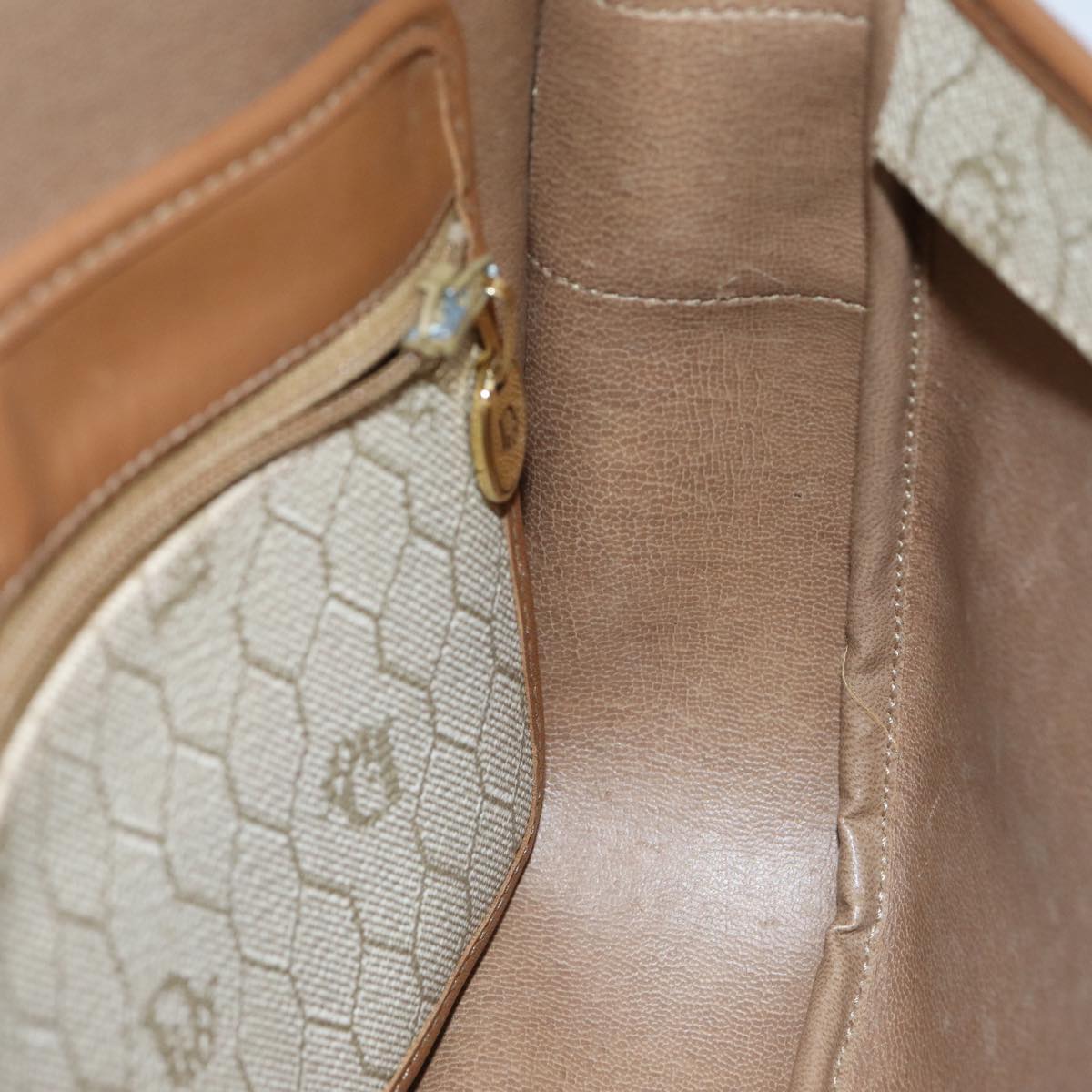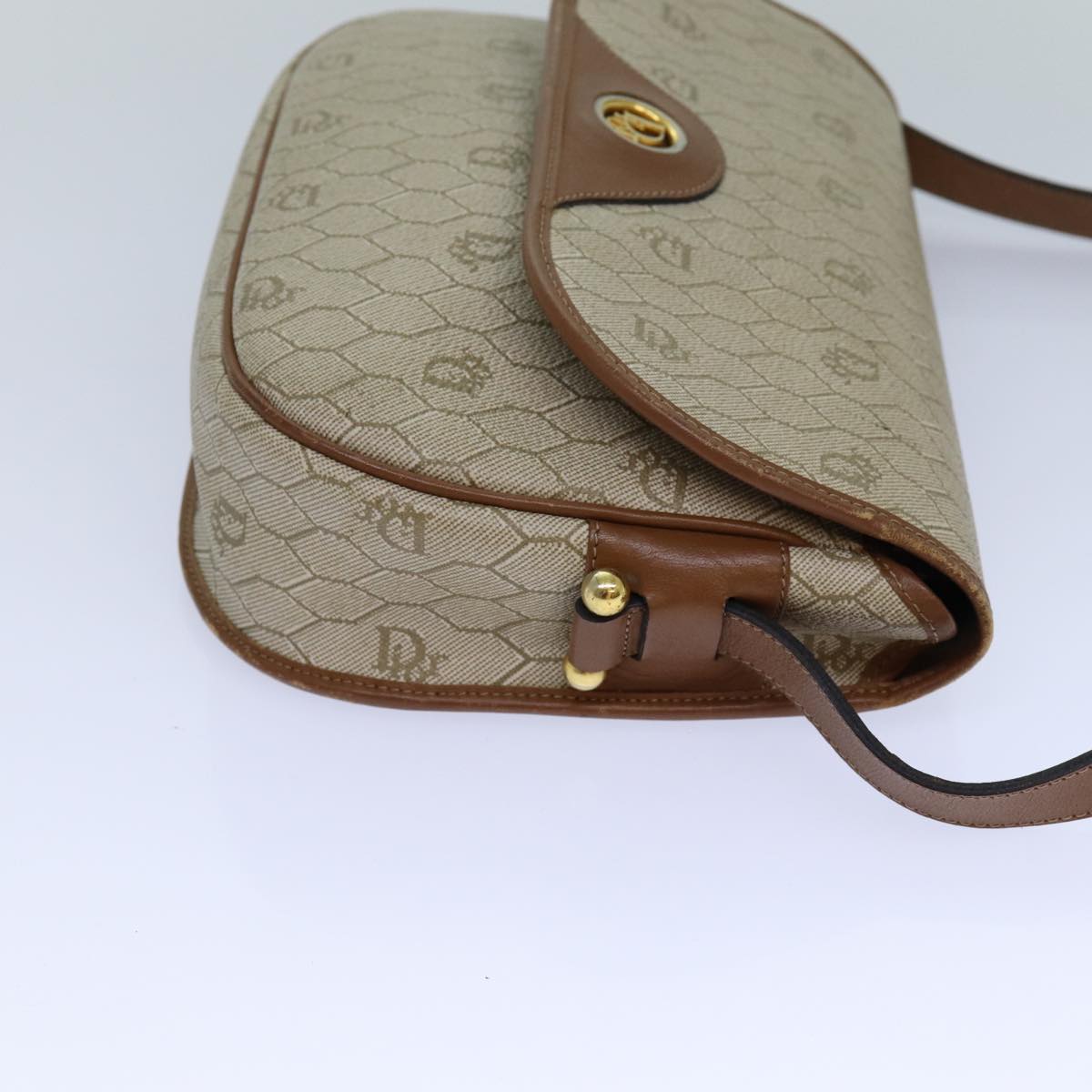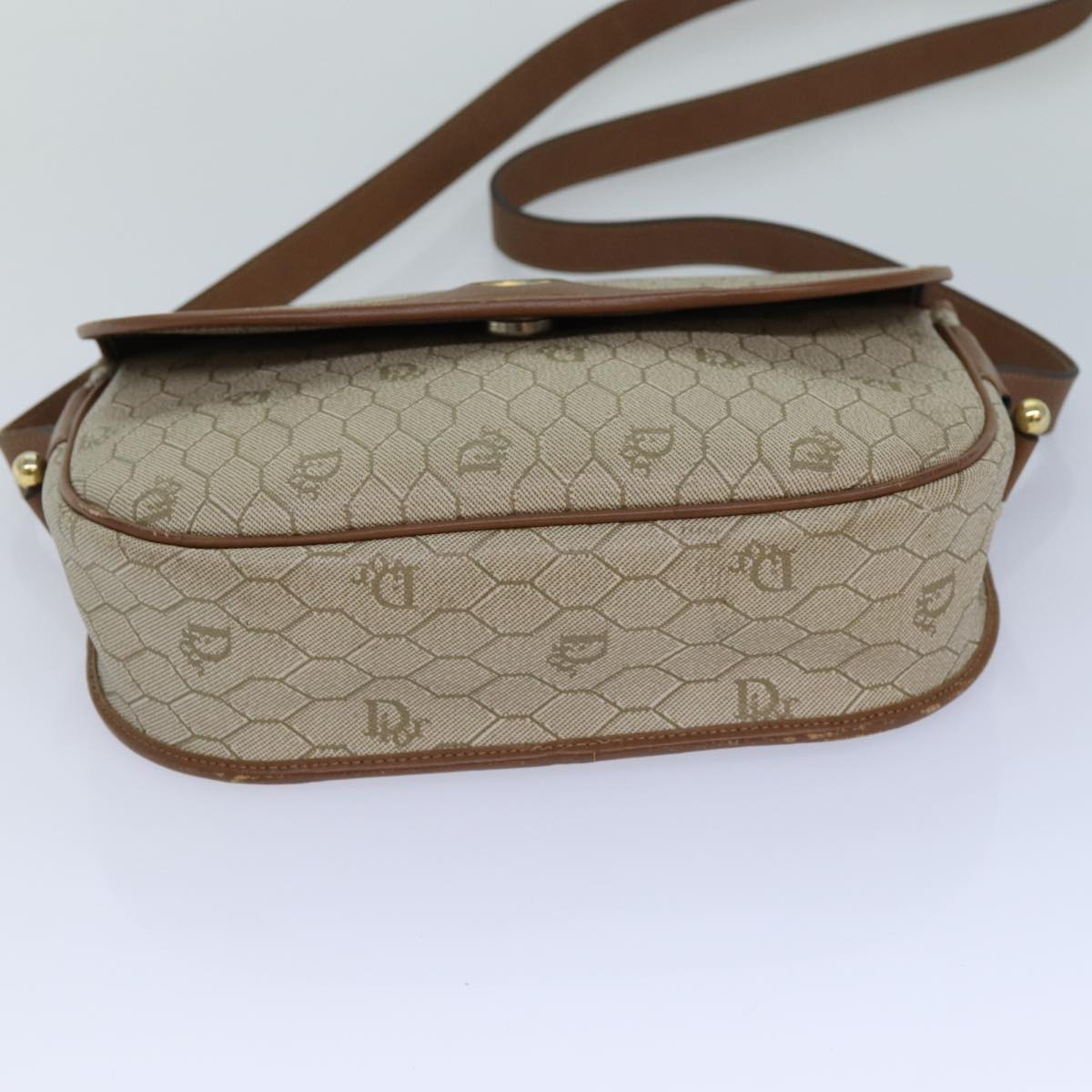 CHRISTIAN DIOR Honeycomb Canvas Shoulder Bag PVC Leather Beige Auth 77935