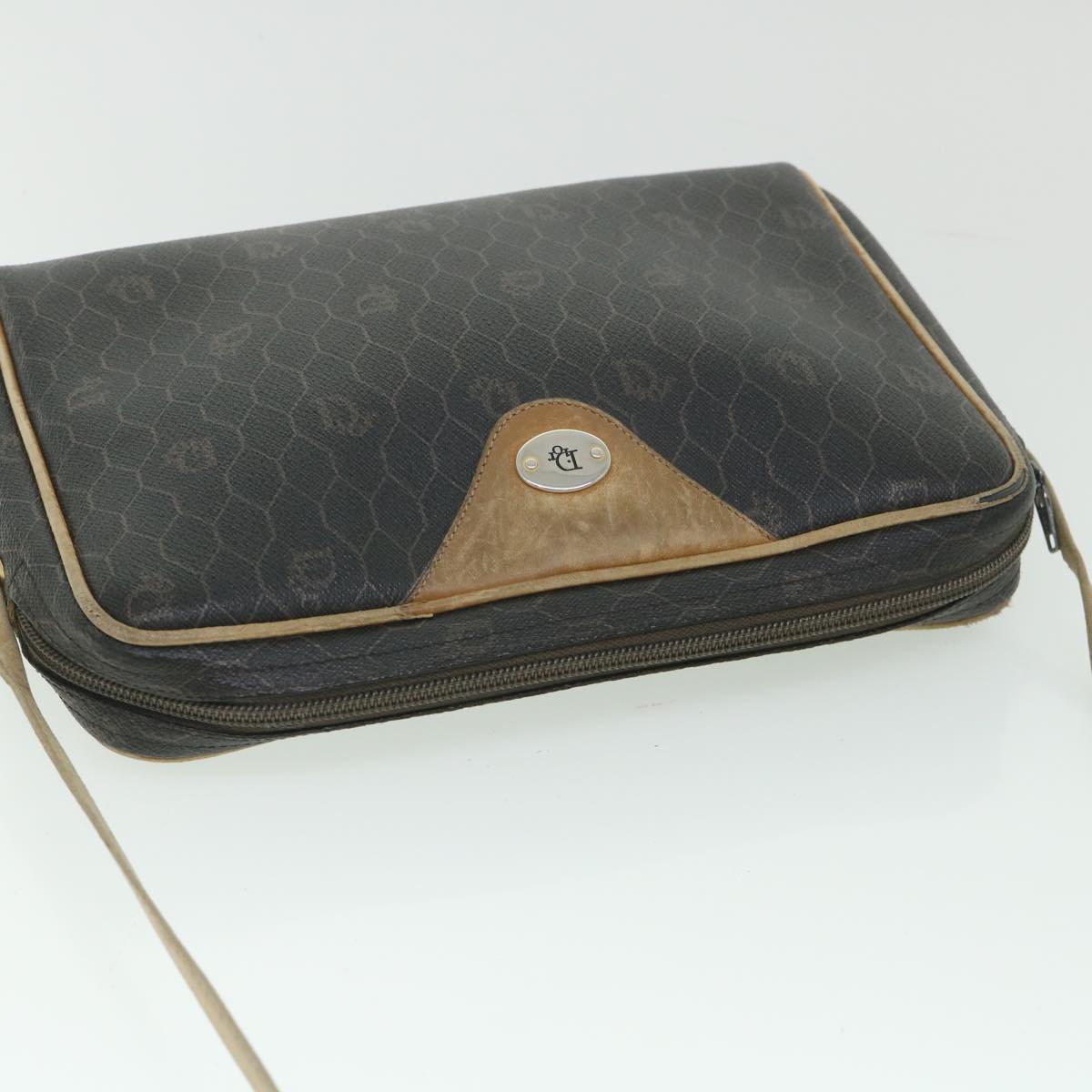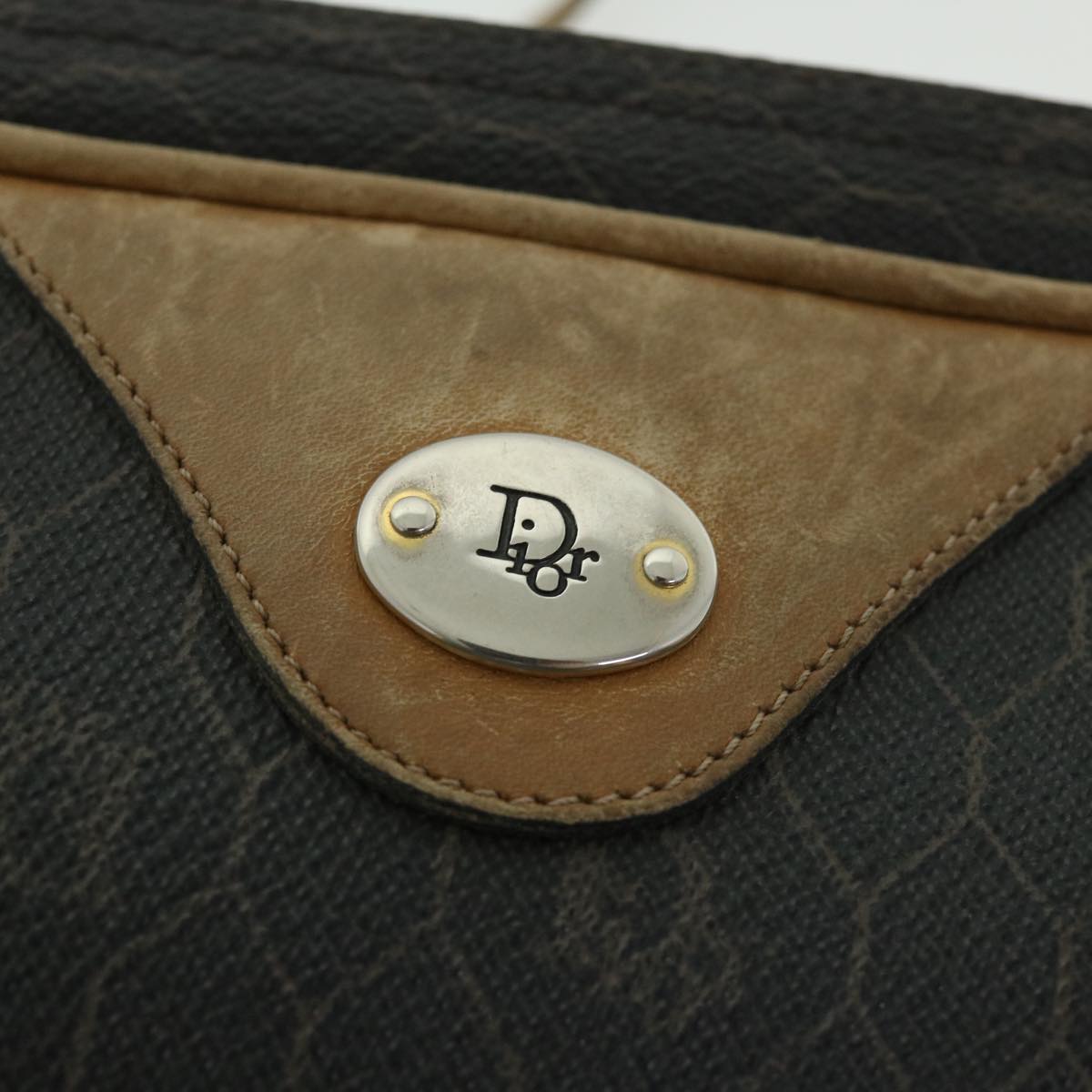 CHRISTIAN DIOR Honeycomb Canvas Shoulder Bag PVC Leather Black Auth 56325