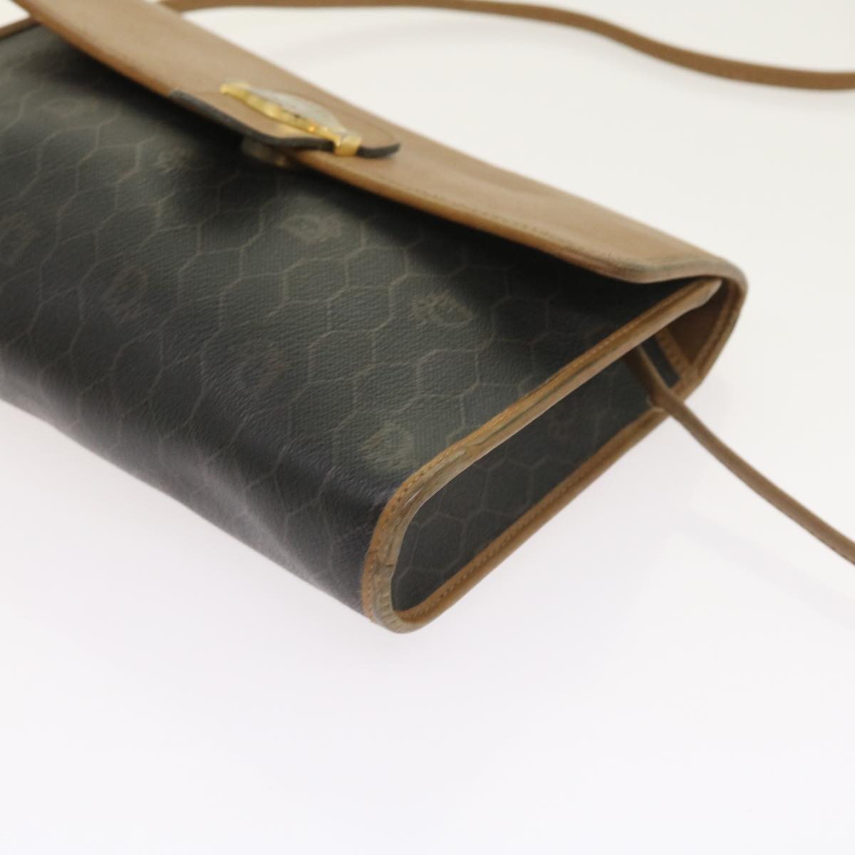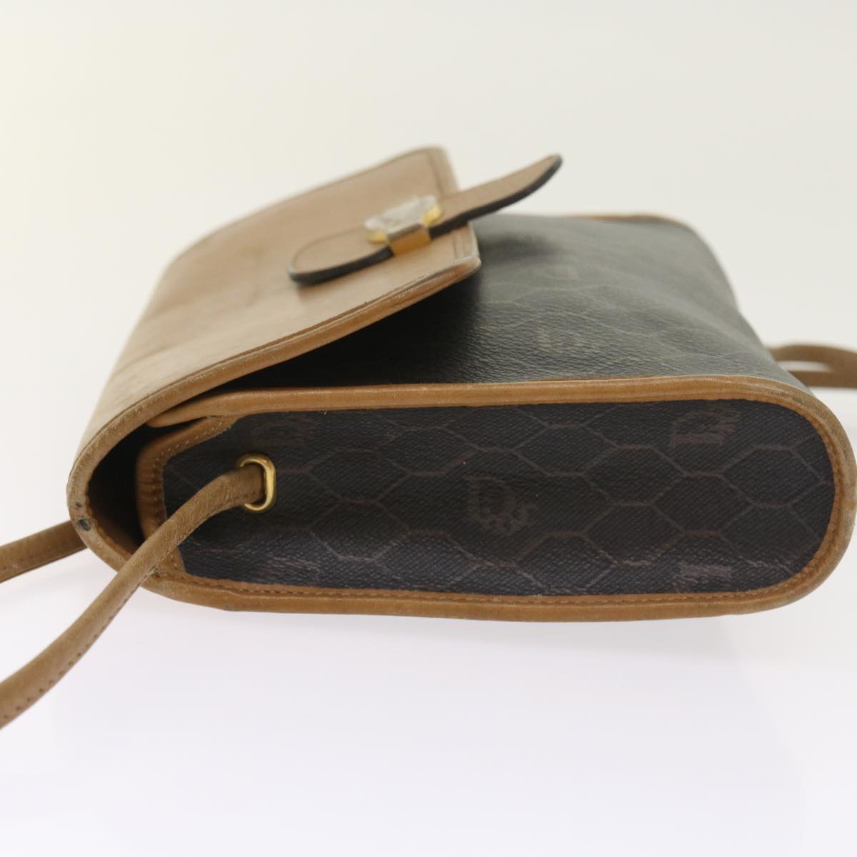 CHRISTIAN DIOR Honeycomb Canvas Shoulder Bag PVC Leather Black Auth am5058