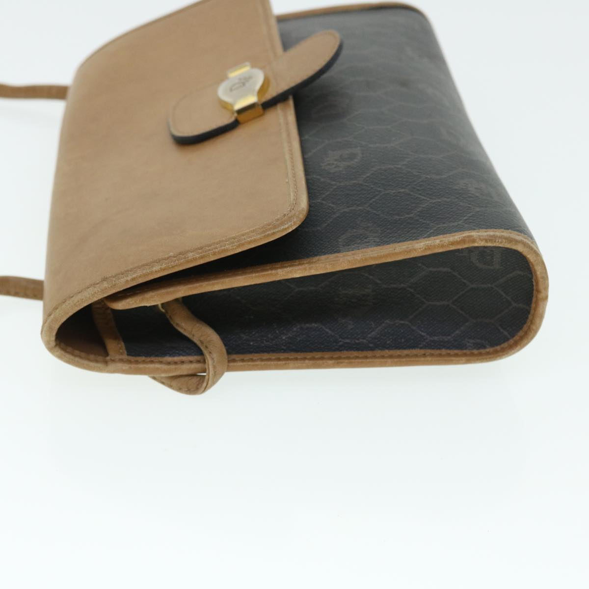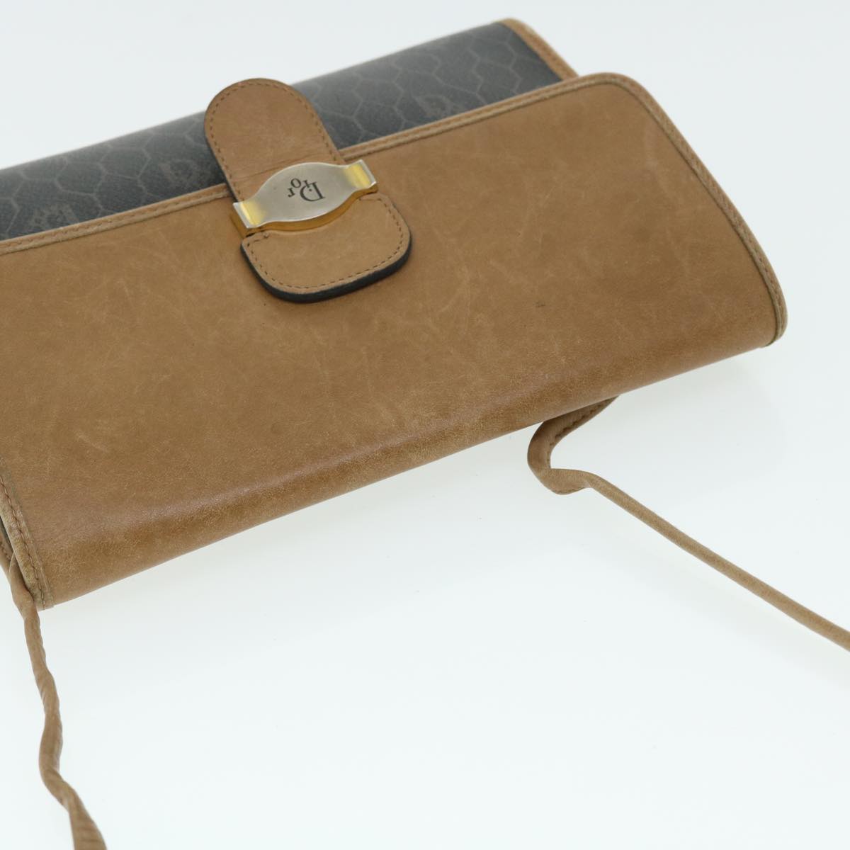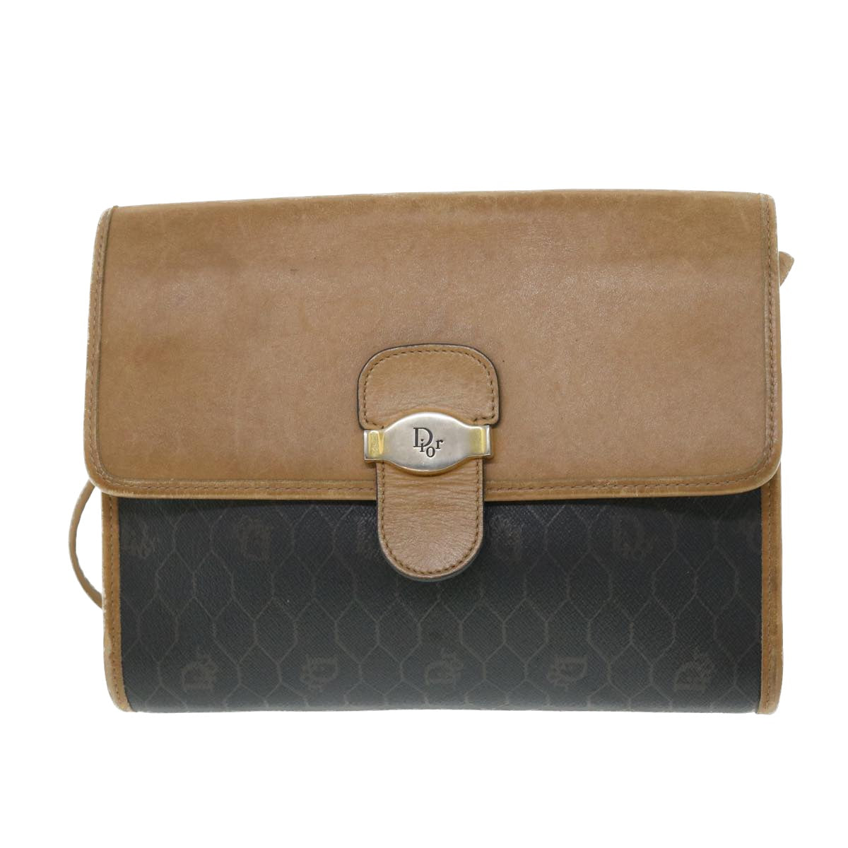 CHRISTIAN DIOR Honeycomb Canvas Shoulder Bag PVC Leather Brown Black Auth bs7613