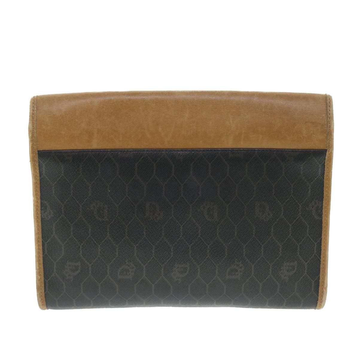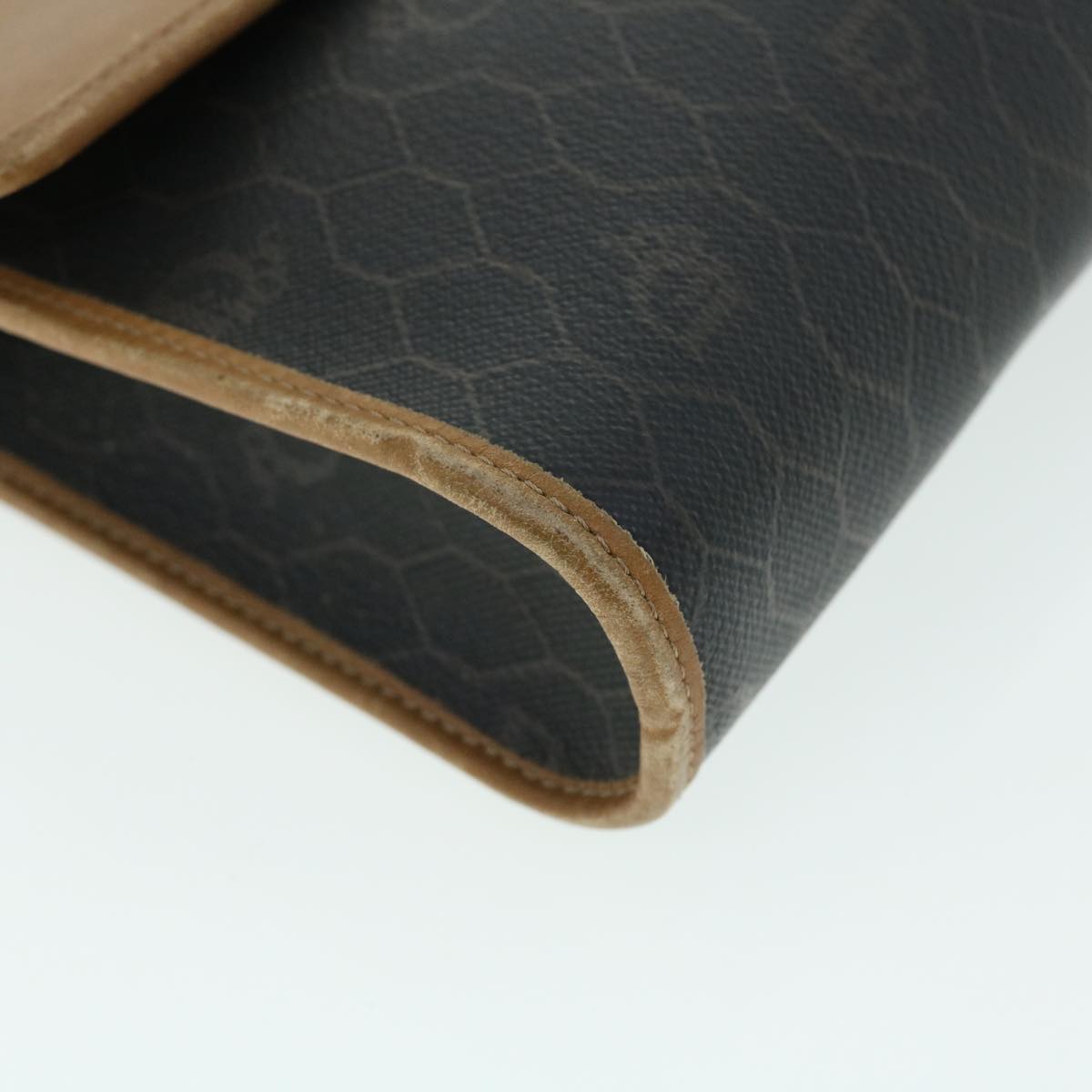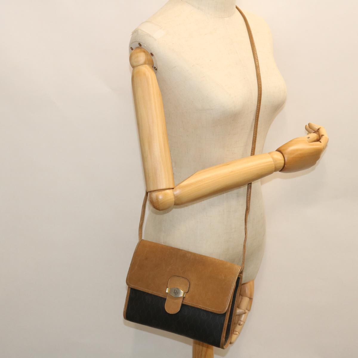 CHRISTIAN DIOR Honeycomb Canvas Shoulder Bag PVC Leather Brown Black Auth bs7613