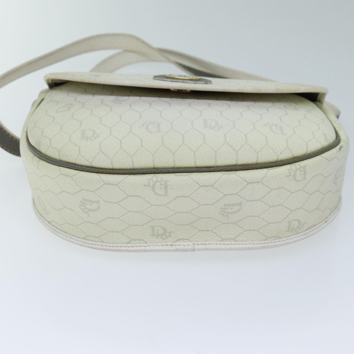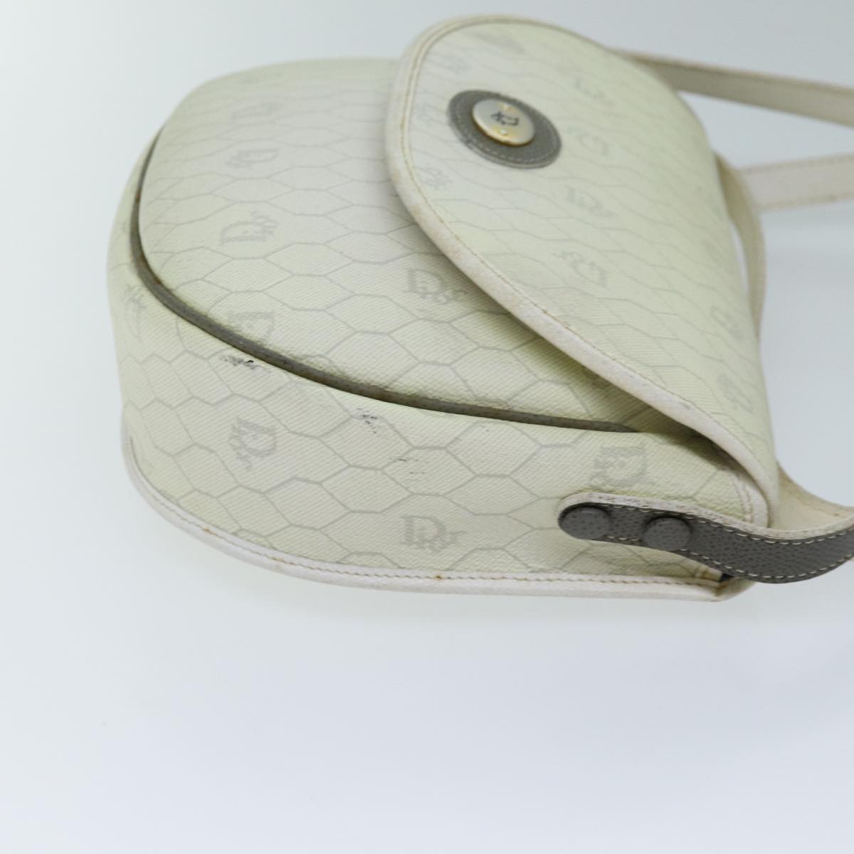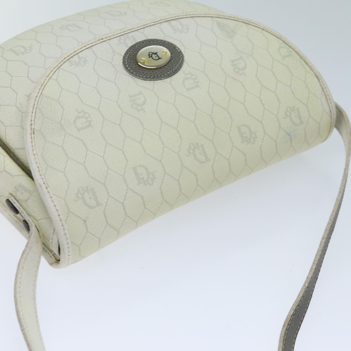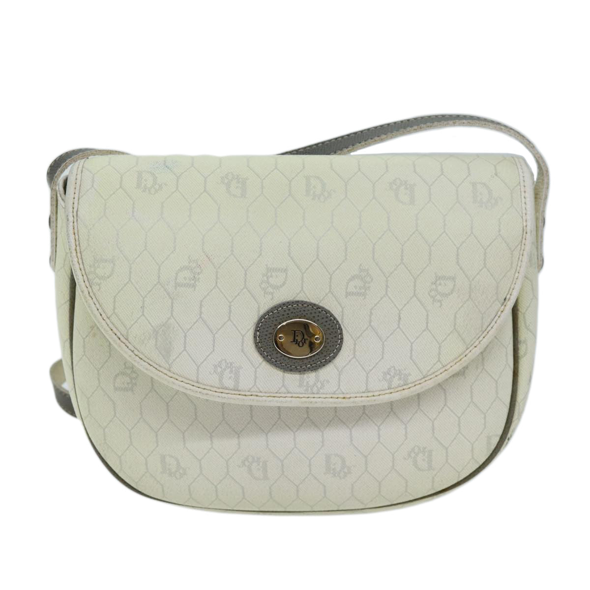 CHRISTIAN DIOR Honeycomb Canvas Shoulder Bag PVC Leather White Auth 73252
