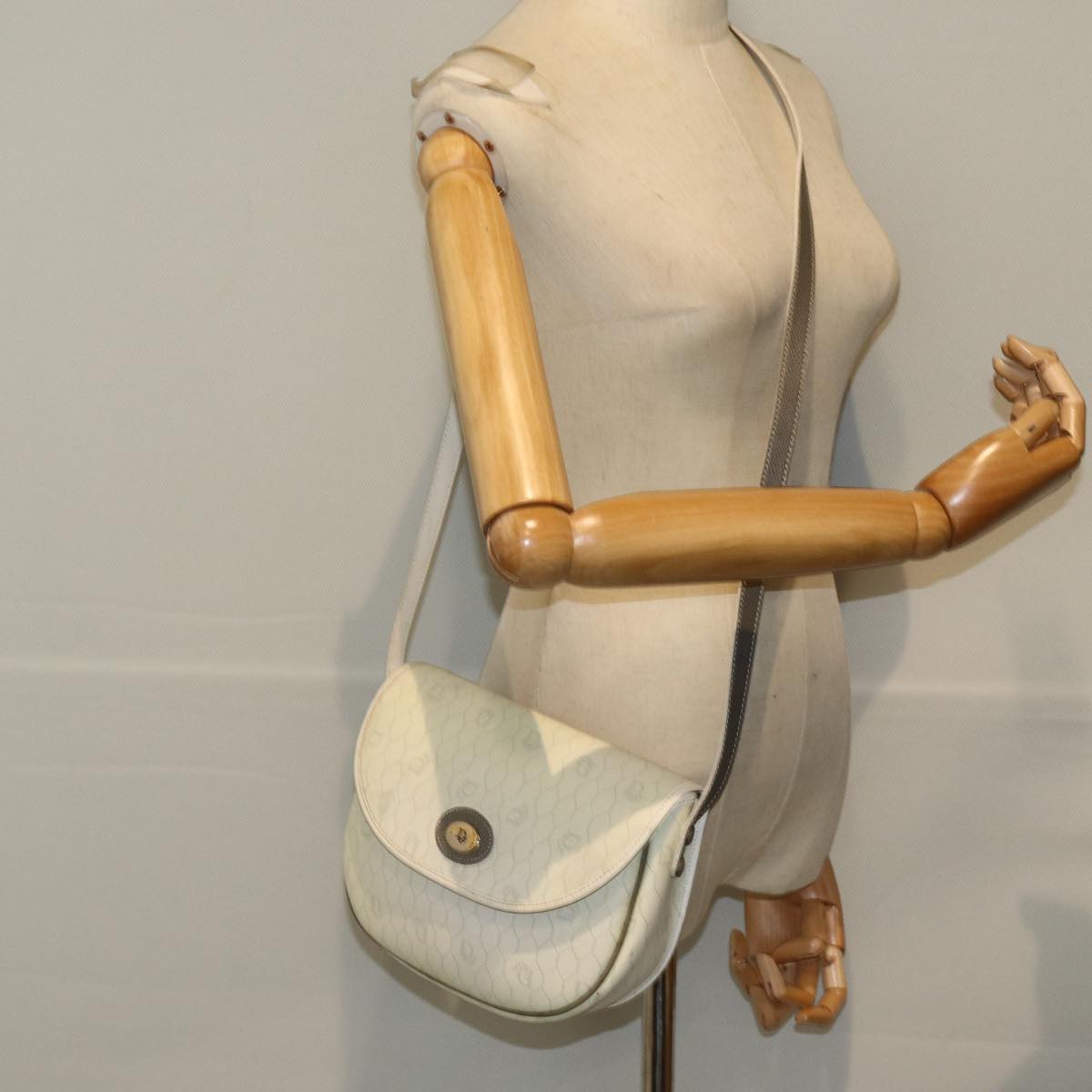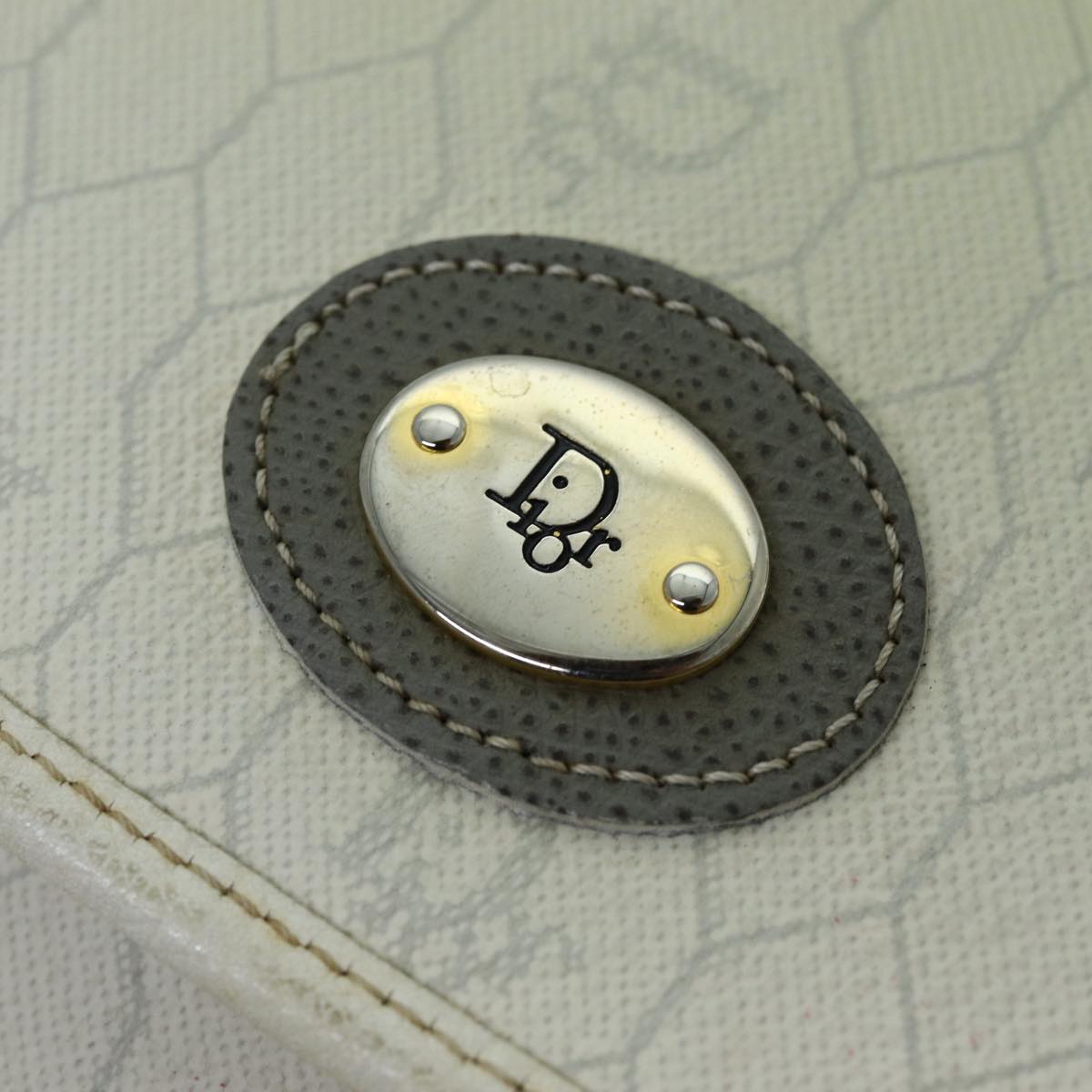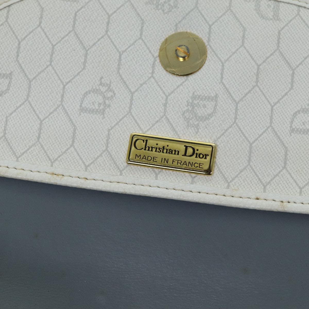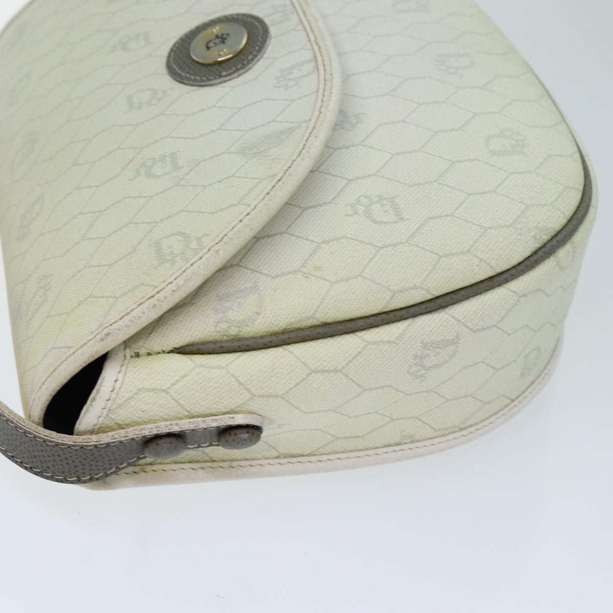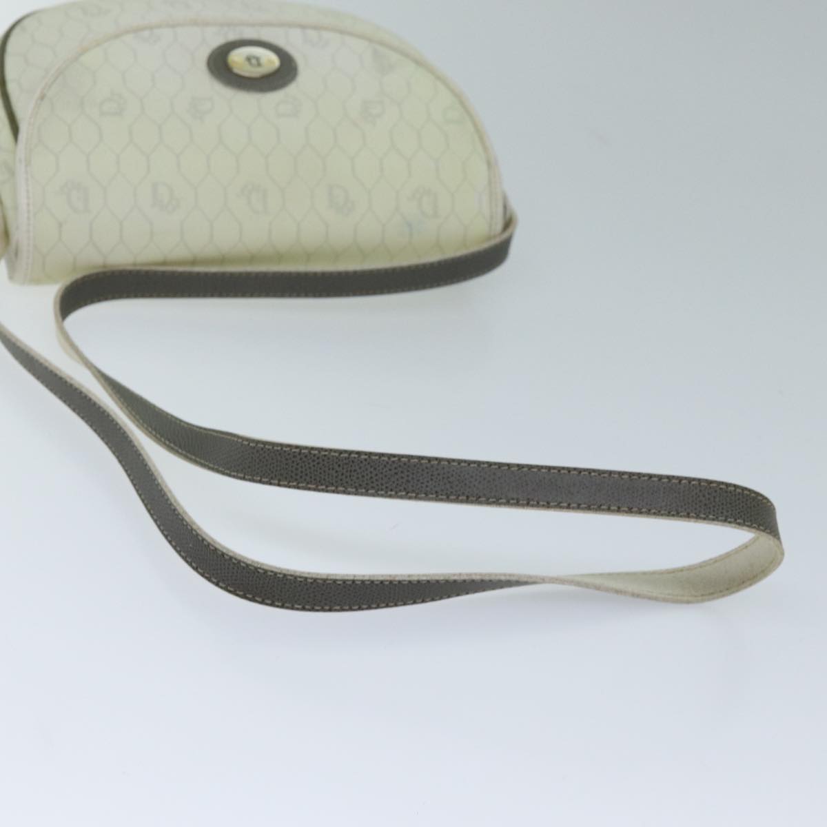 CHRISTIAN DIOR Honeycomb Canvas Shoulder Bag PVC Leather White Auth 73252