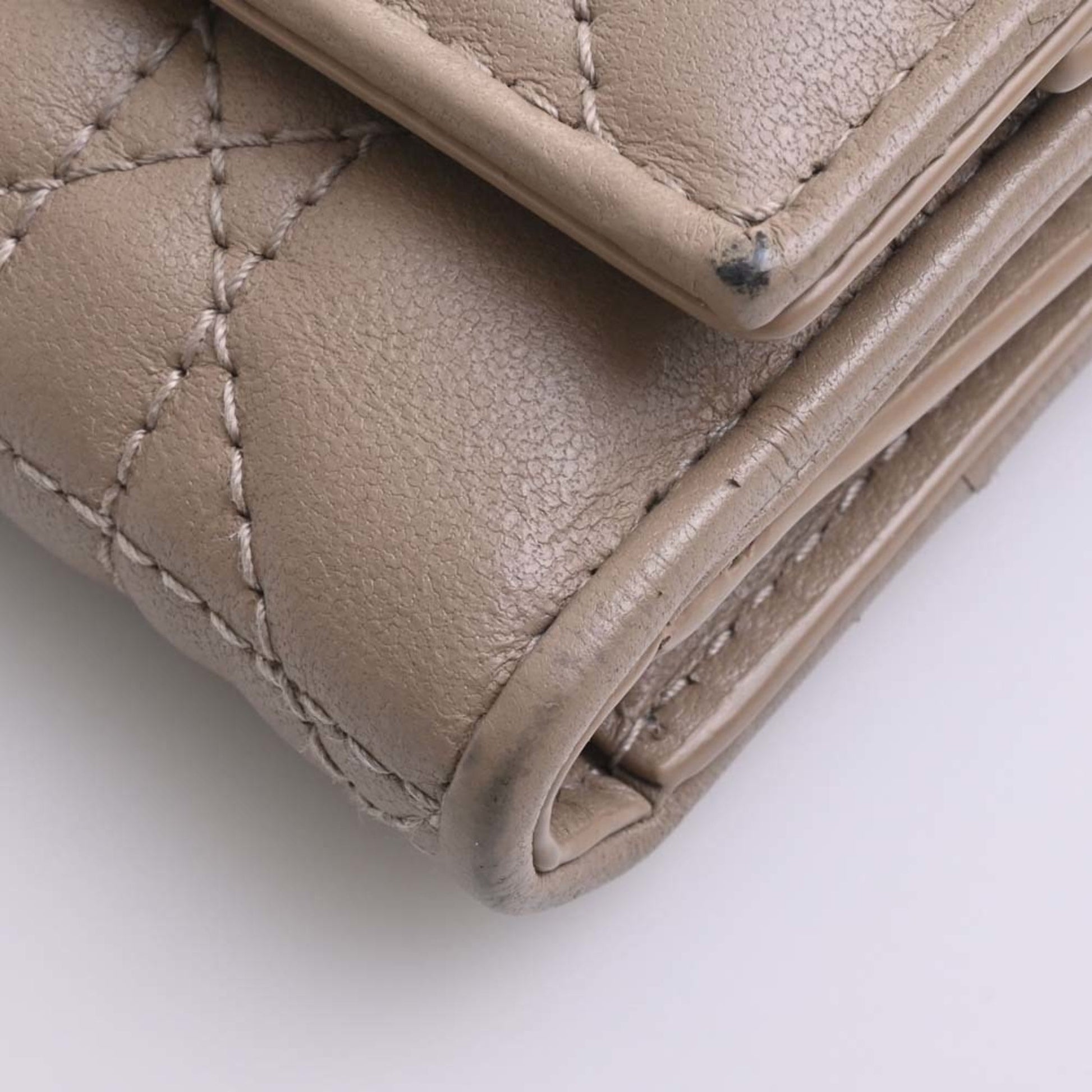 CHRISTIAN DIOR Lady Cannage Leather Lotus Trifold Wallet Beige Ladies