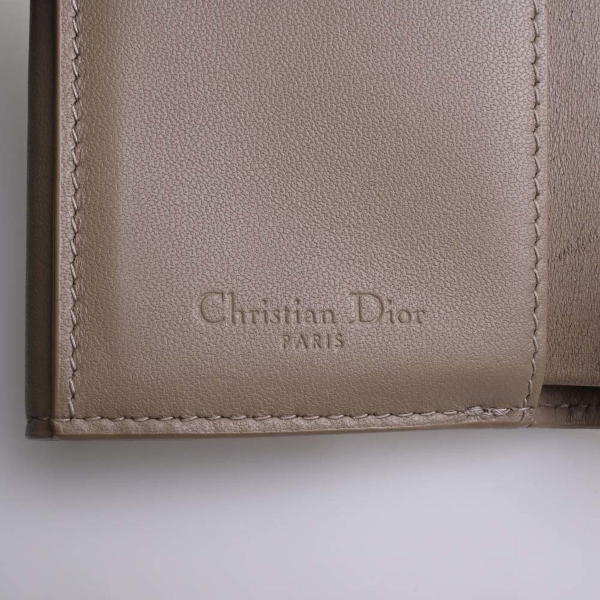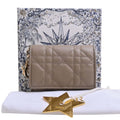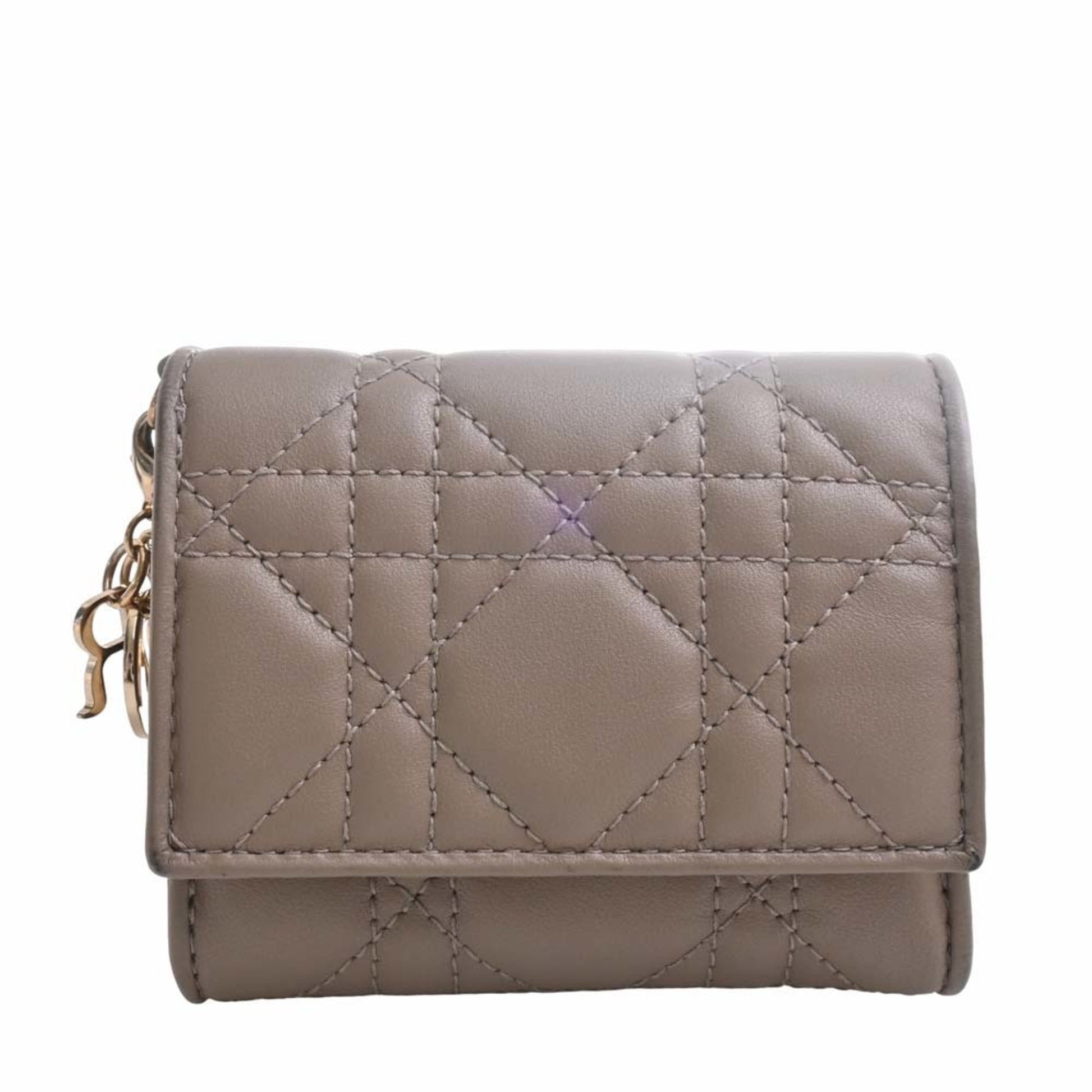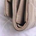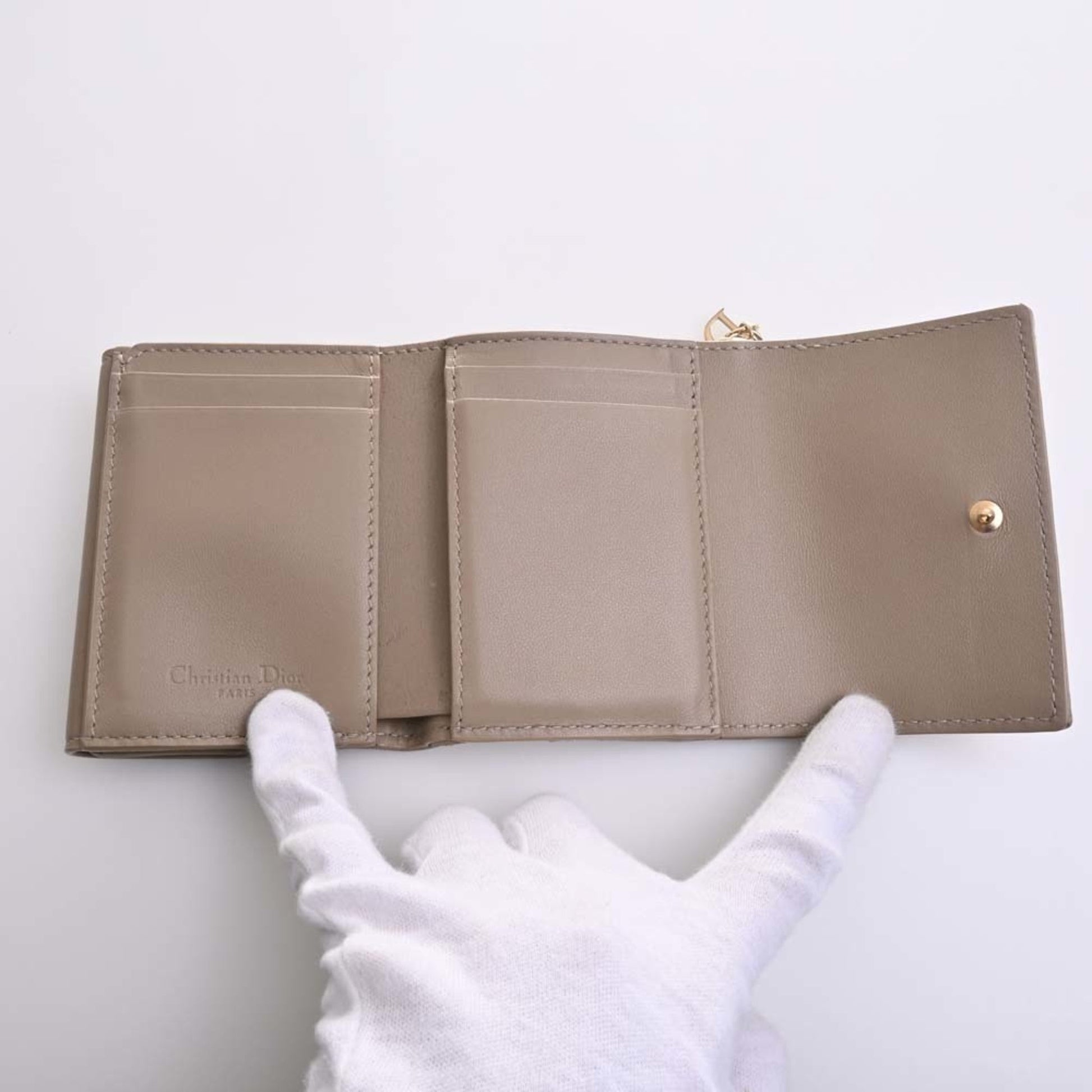 Christian Dior Lady Cannage Leather Lotus Trifold Wallet Beige Ladies