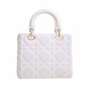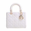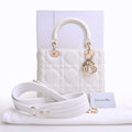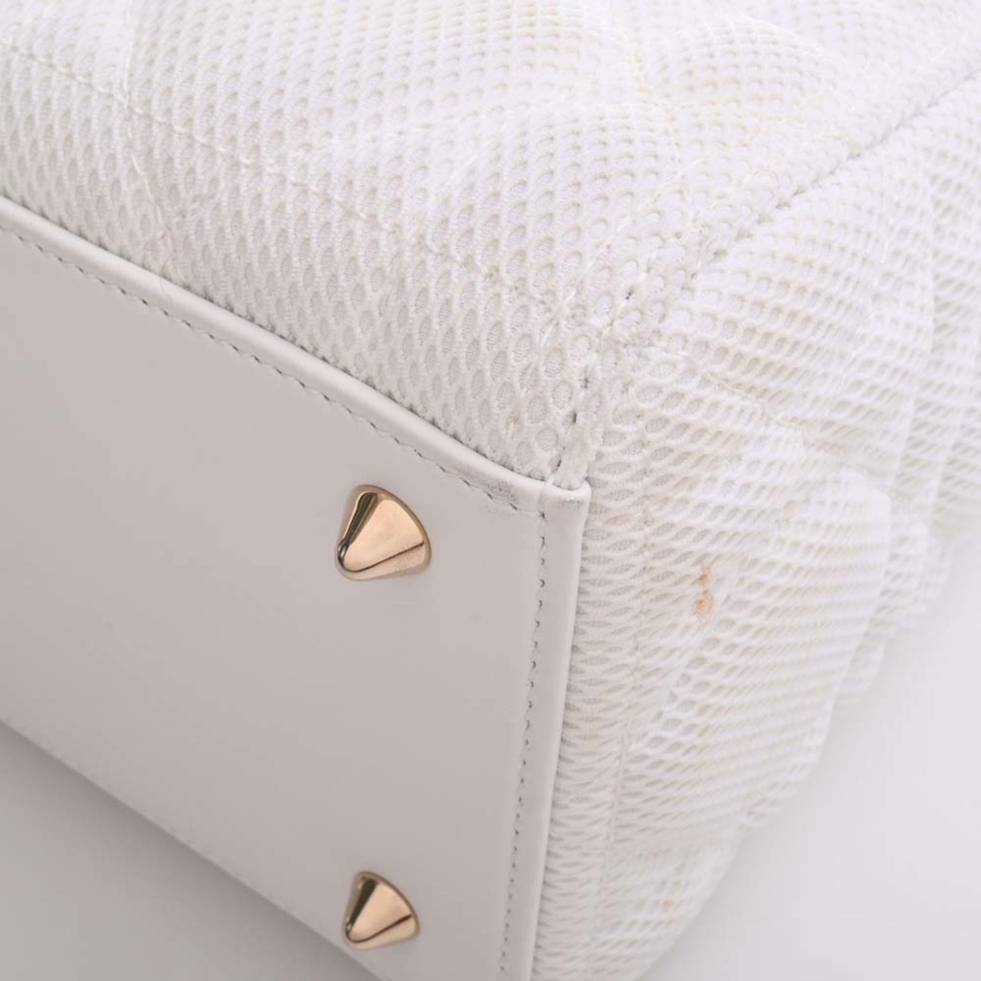 CHRISTIAN DIOR LADY D-LITE Cannage Canvas Leather Medium 2WAY Handbag M0565OTID White Ladies
