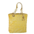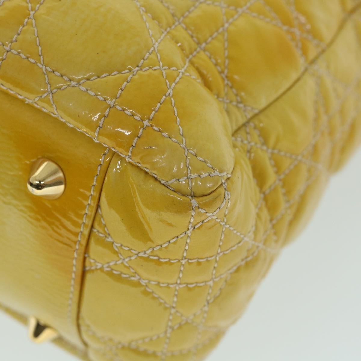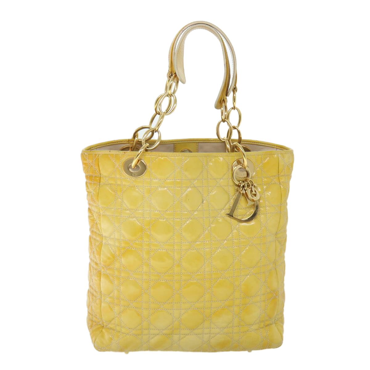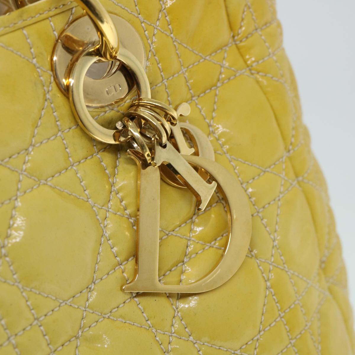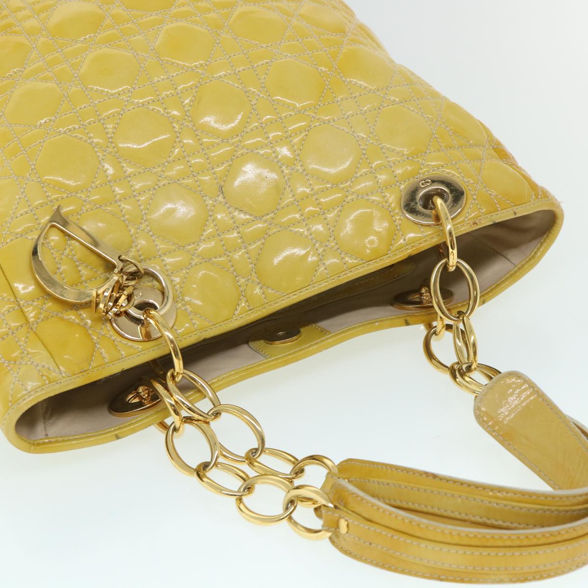 CHRISTIAN DIOR Lady Dior Canage Chain Tote Bag Patent leather Yellow Auth 54827