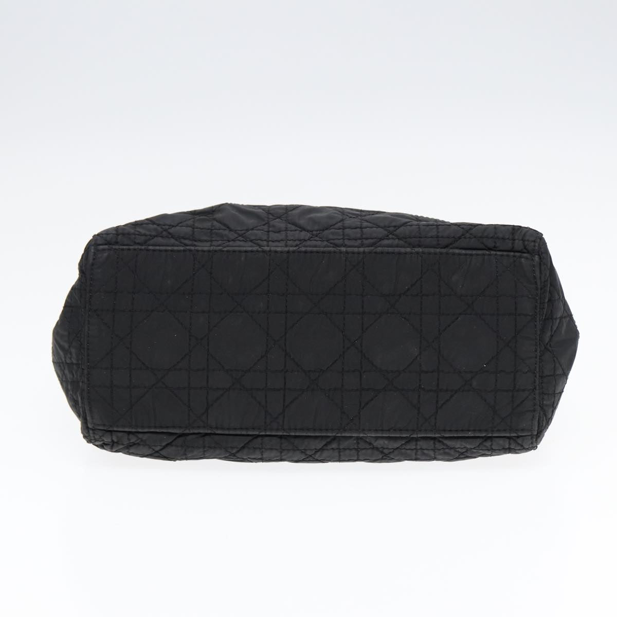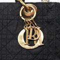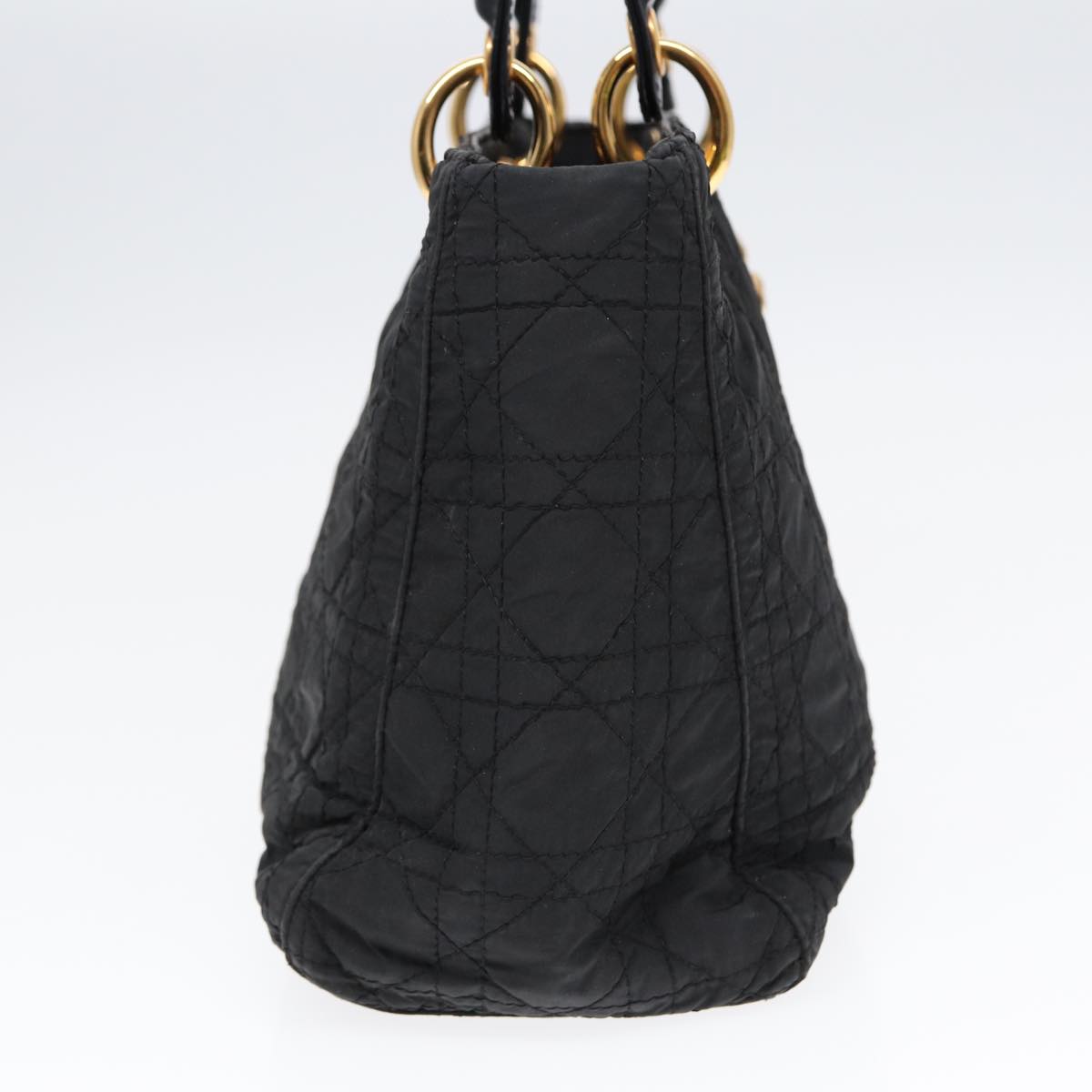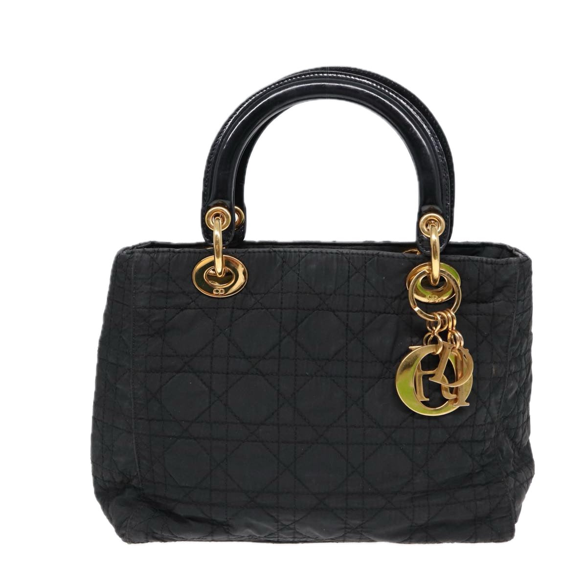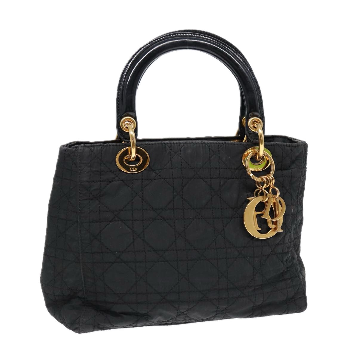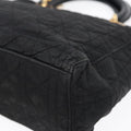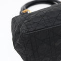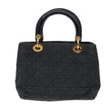 CHRISTIAN DIOR Lady Dior Canage Hand Bag Nylon Black Gold Auth 88569