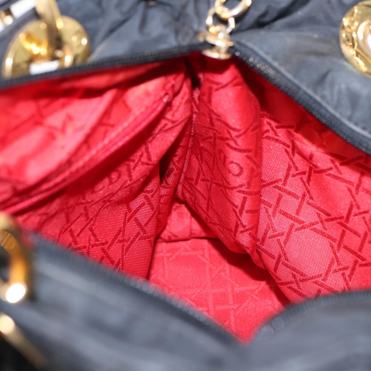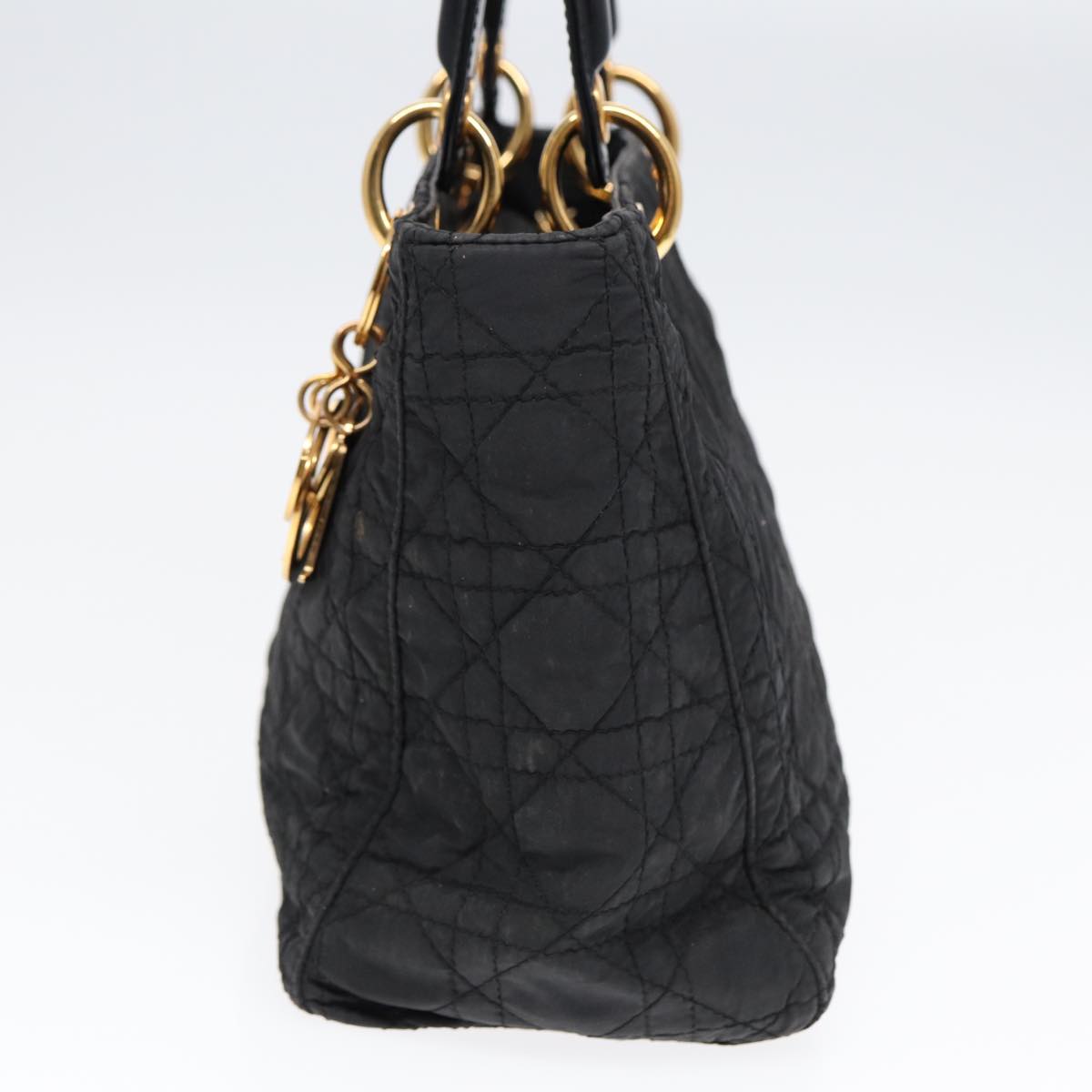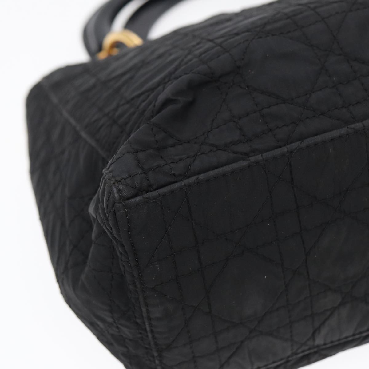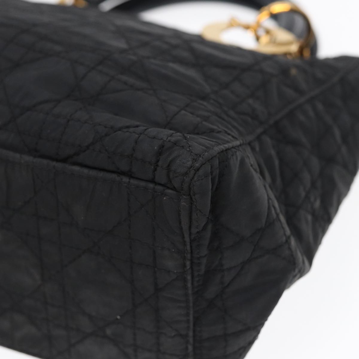 CHRISTIAN DIOR Lady Dior Canage Hand Bag Nylon Black Gold Auth 88569