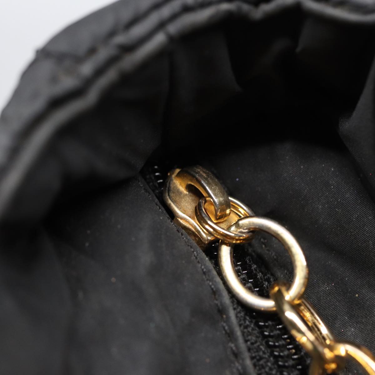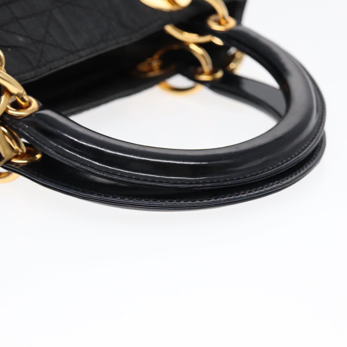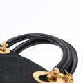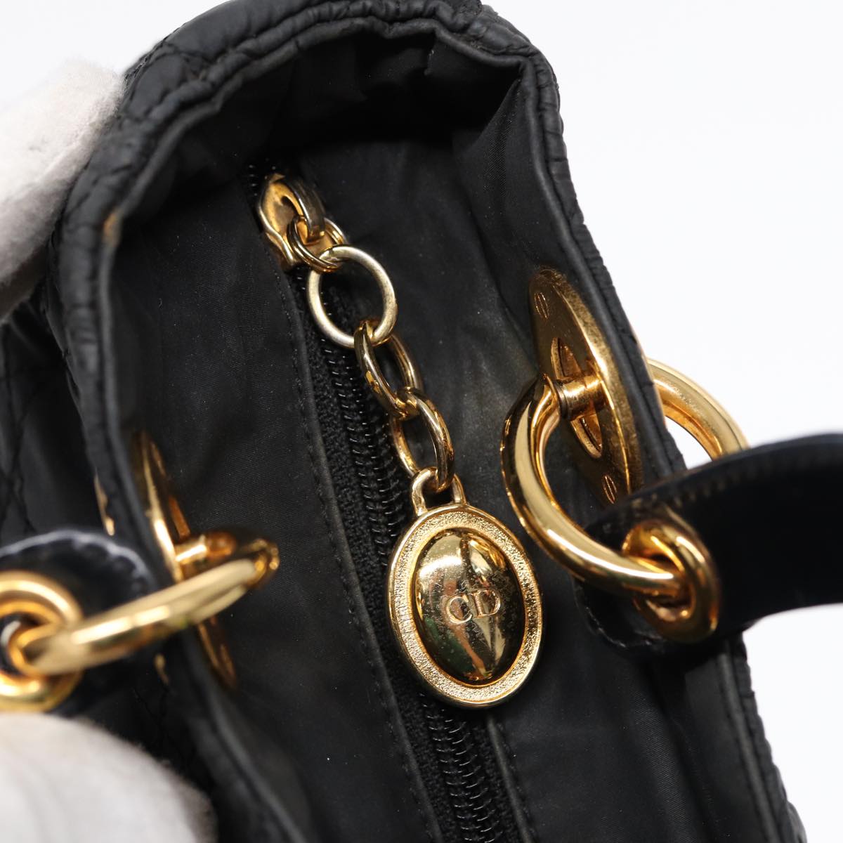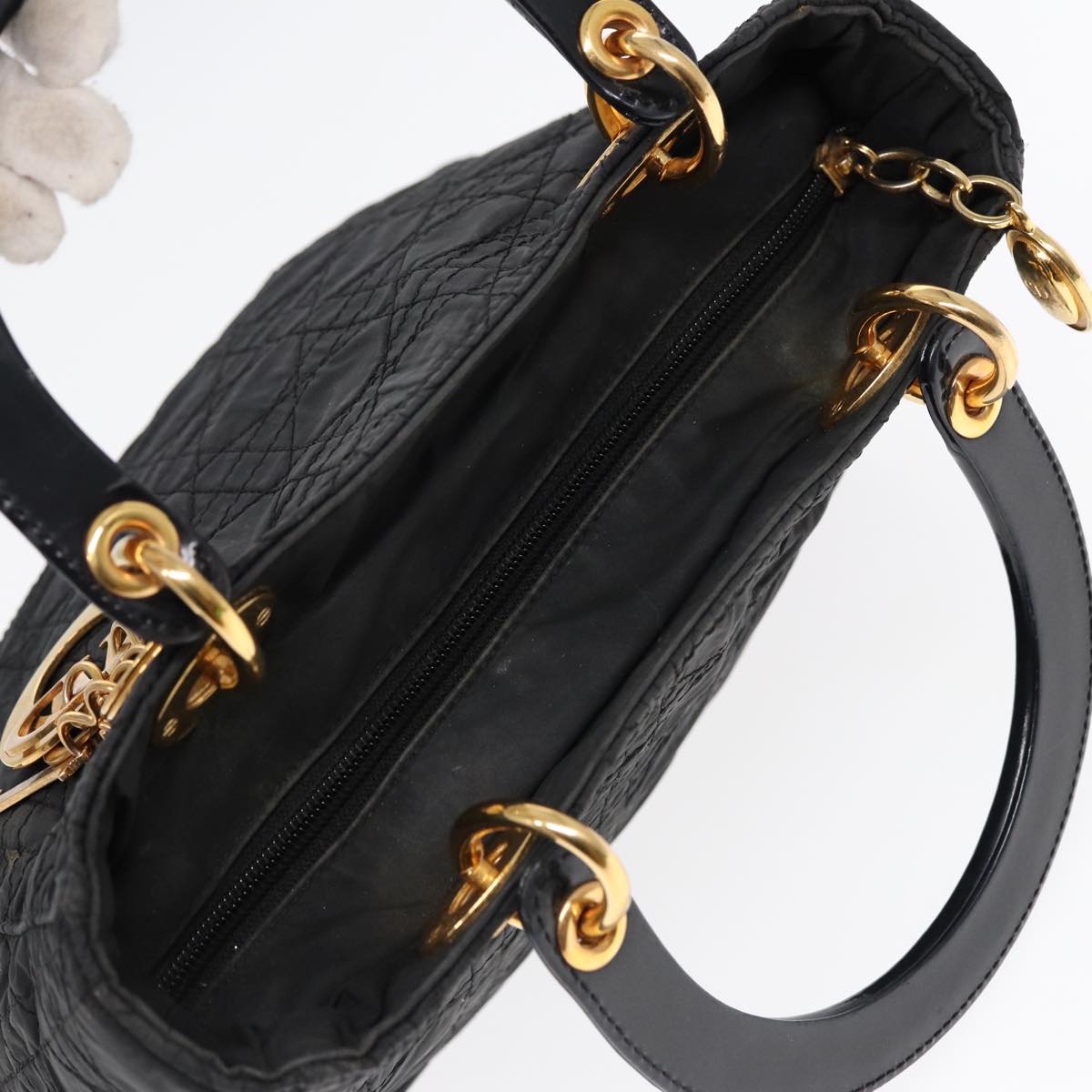 CHRISTIAN DIOR Lady Dior Canage Hand Bag Nylon Black Gold Auth 88569