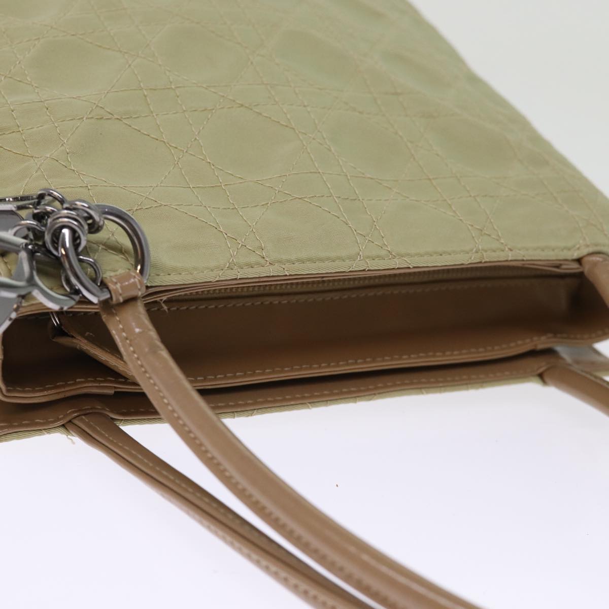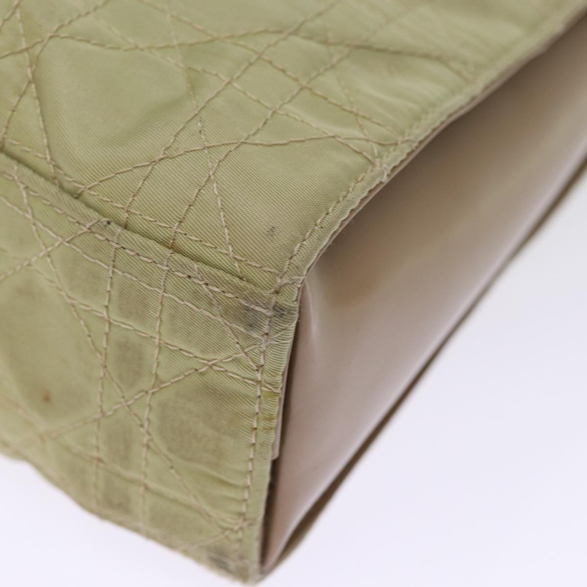 CHRISTIAN DIOR Lady Dior Canage Hand Bag Nylon Leather Beige Auth bs14427
