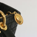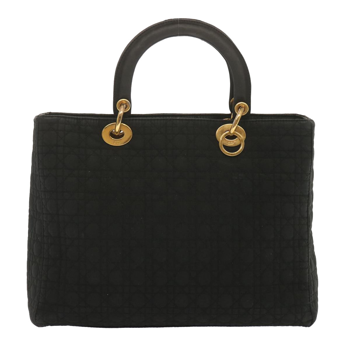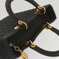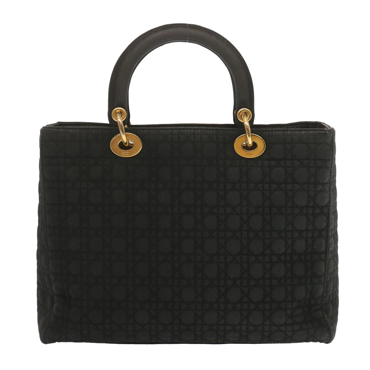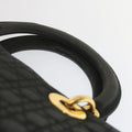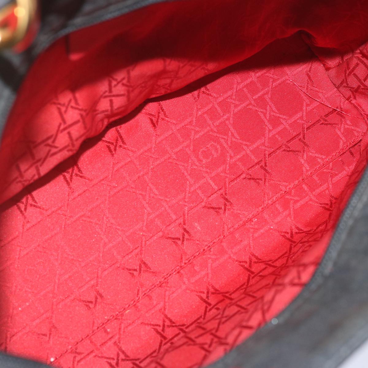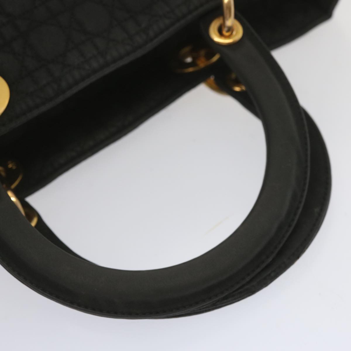 CHRISTIAN DIOR Lady Dior Hand Bag Nylon Black Auth ep3697