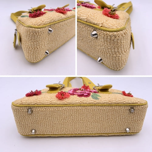 CHRISTIAN DIOR Limited Edition Yellow Raffia Flower Handbag