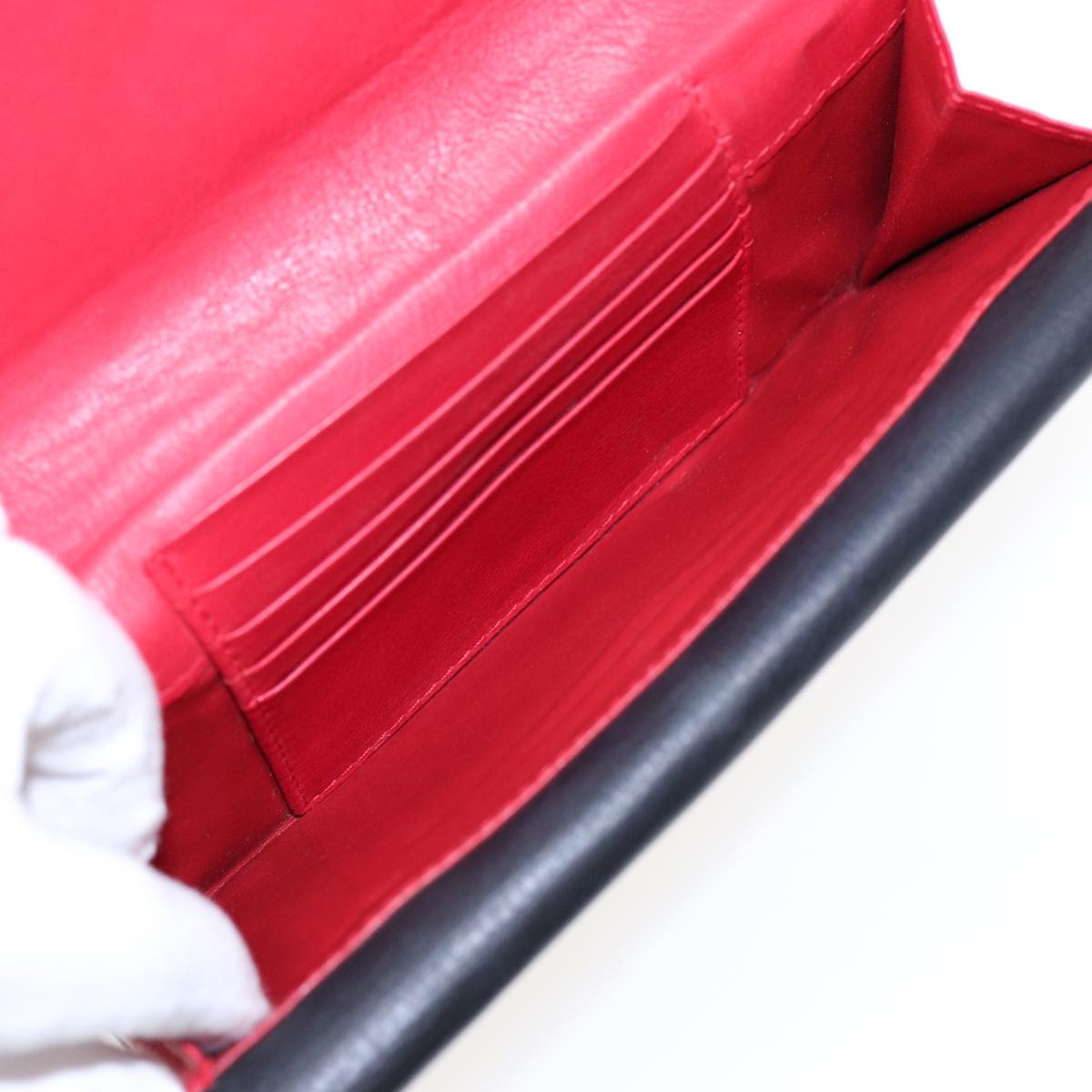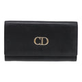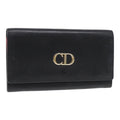 CHRISTIAN DIOR Long Wallet Leather Black Gold Auth bs17142
