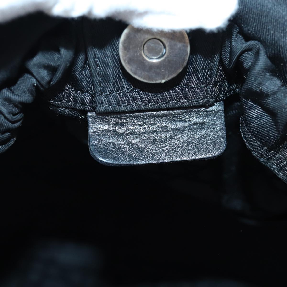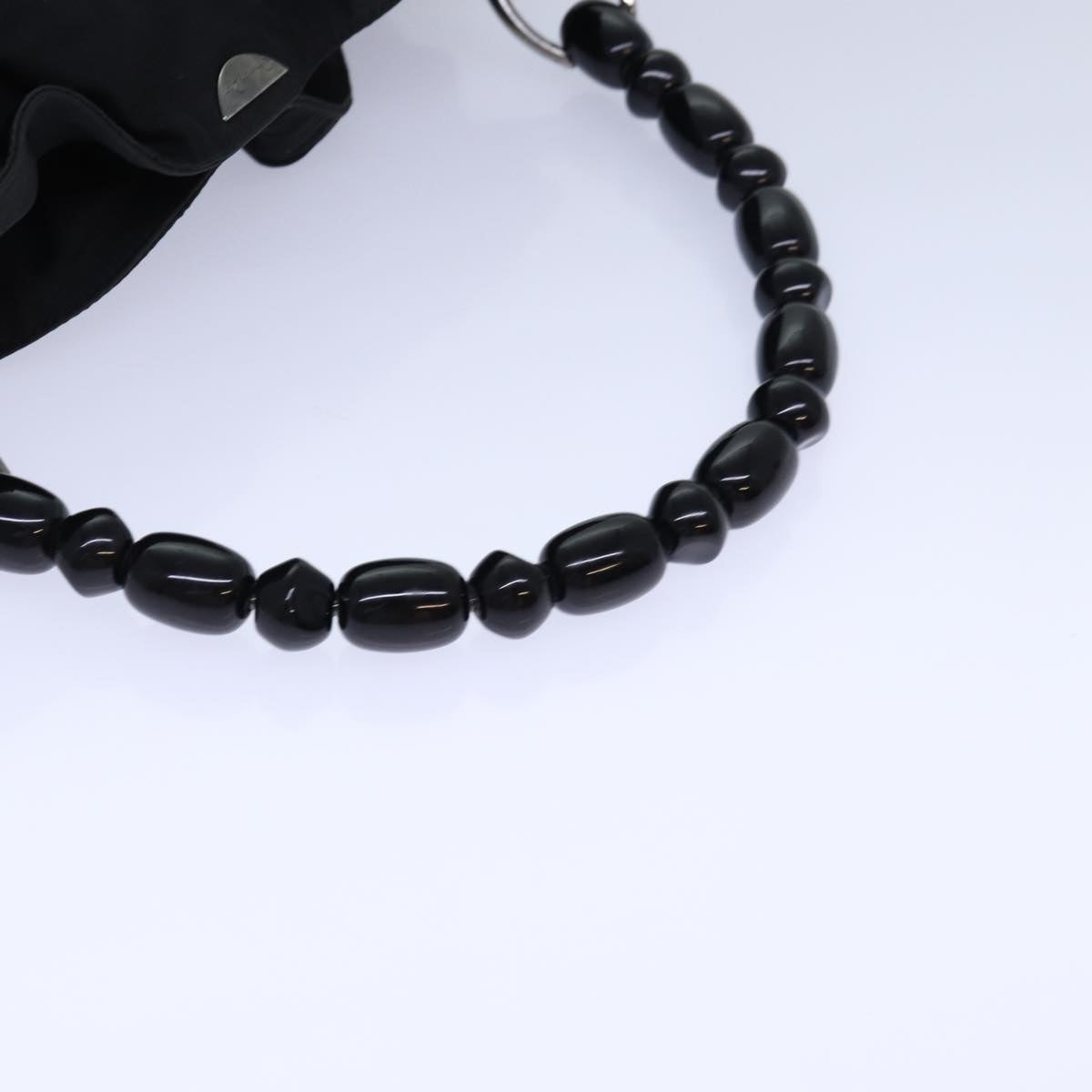 CHRISTIAN DIOR Maris Pearl Hand Bag Nylon Black Silver Auth am6778