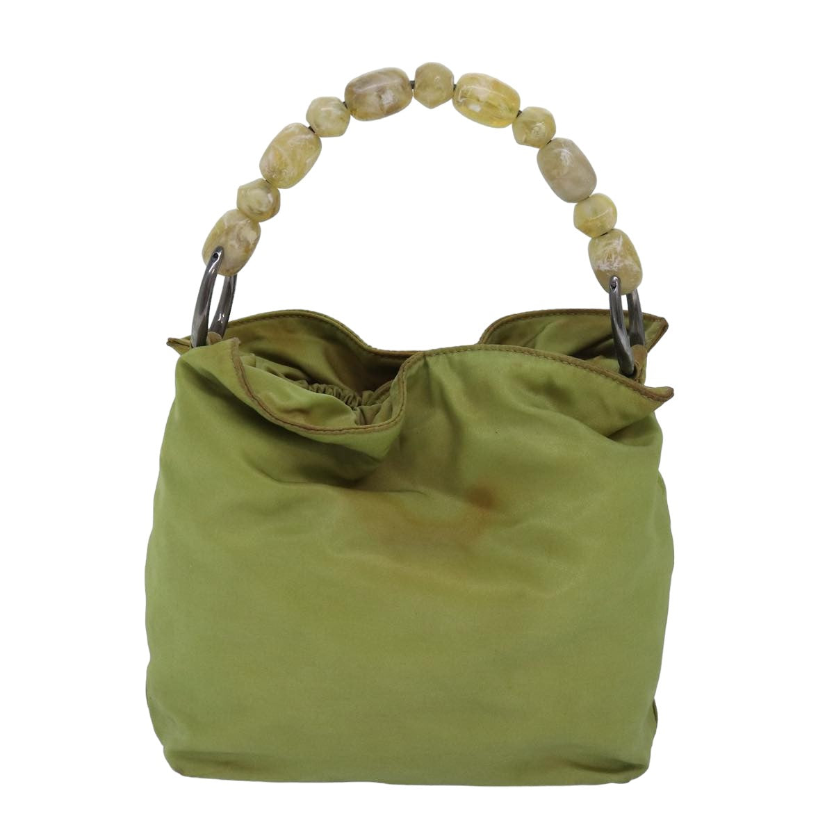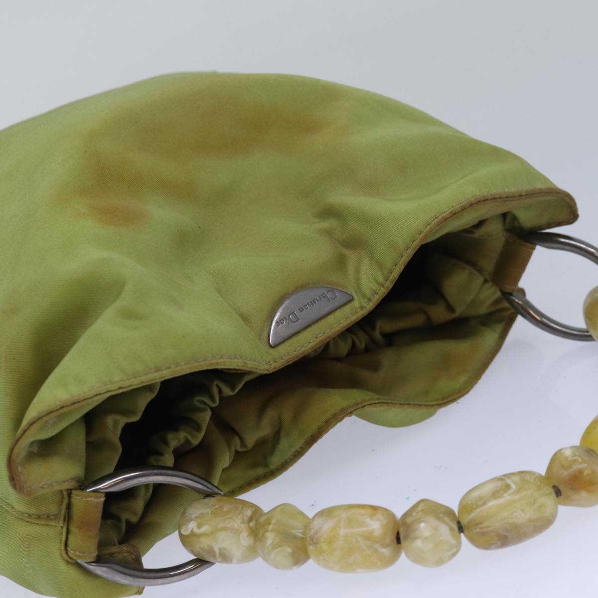 CHRISTIAN DIOR Maris Pearl Hand Bag Nylon Green Auth 79559