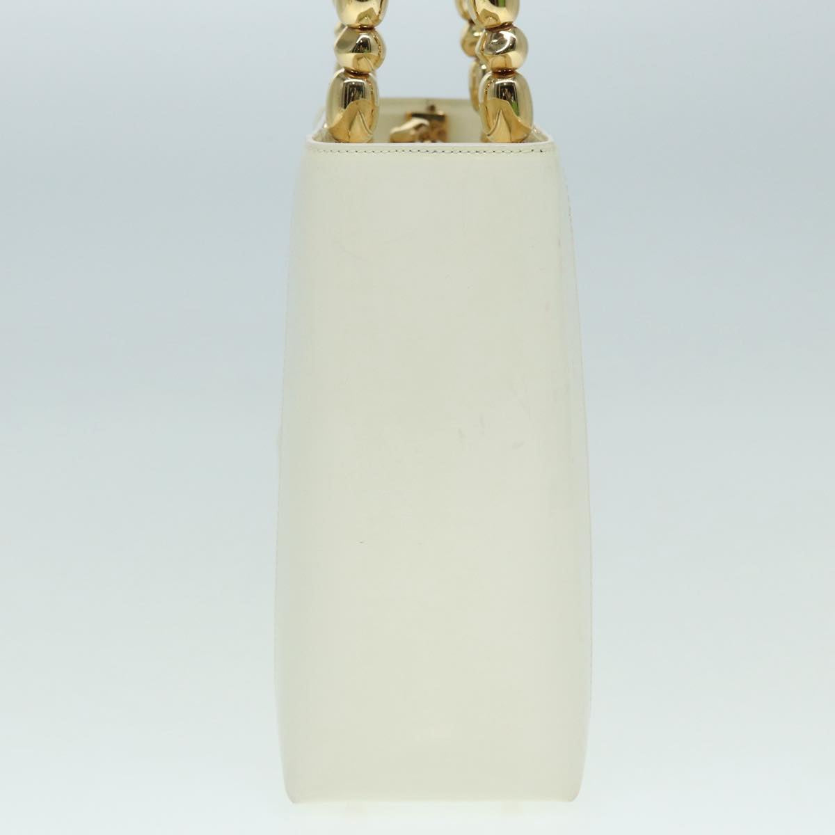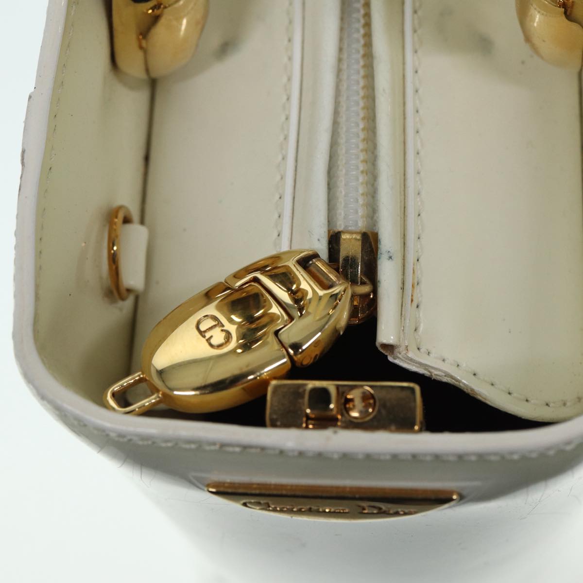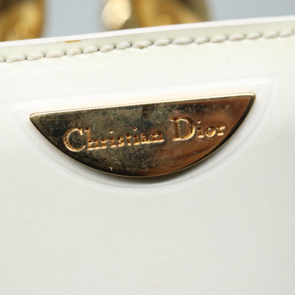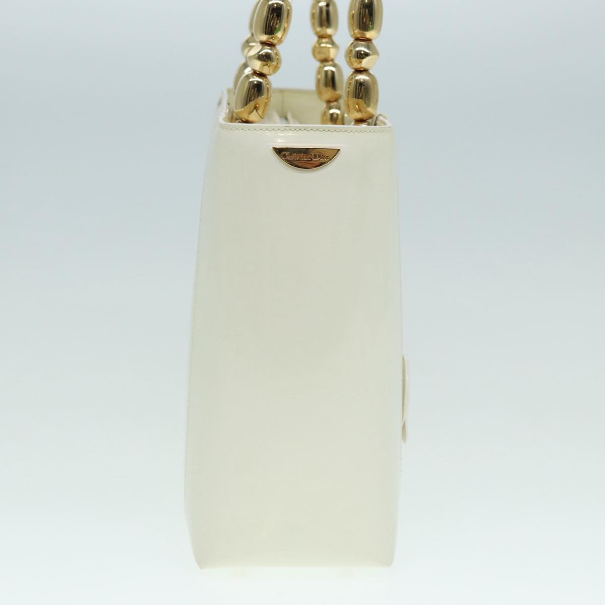 CHRISTIAN DIOR Maris Pearl Tote Bag Patent leather White Gold Auth bs17655